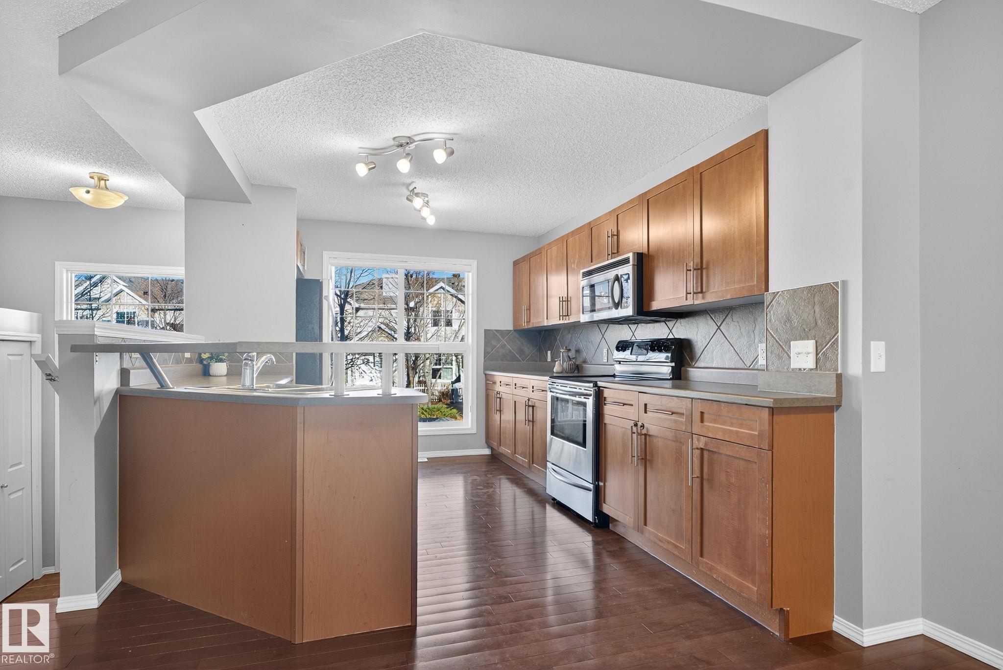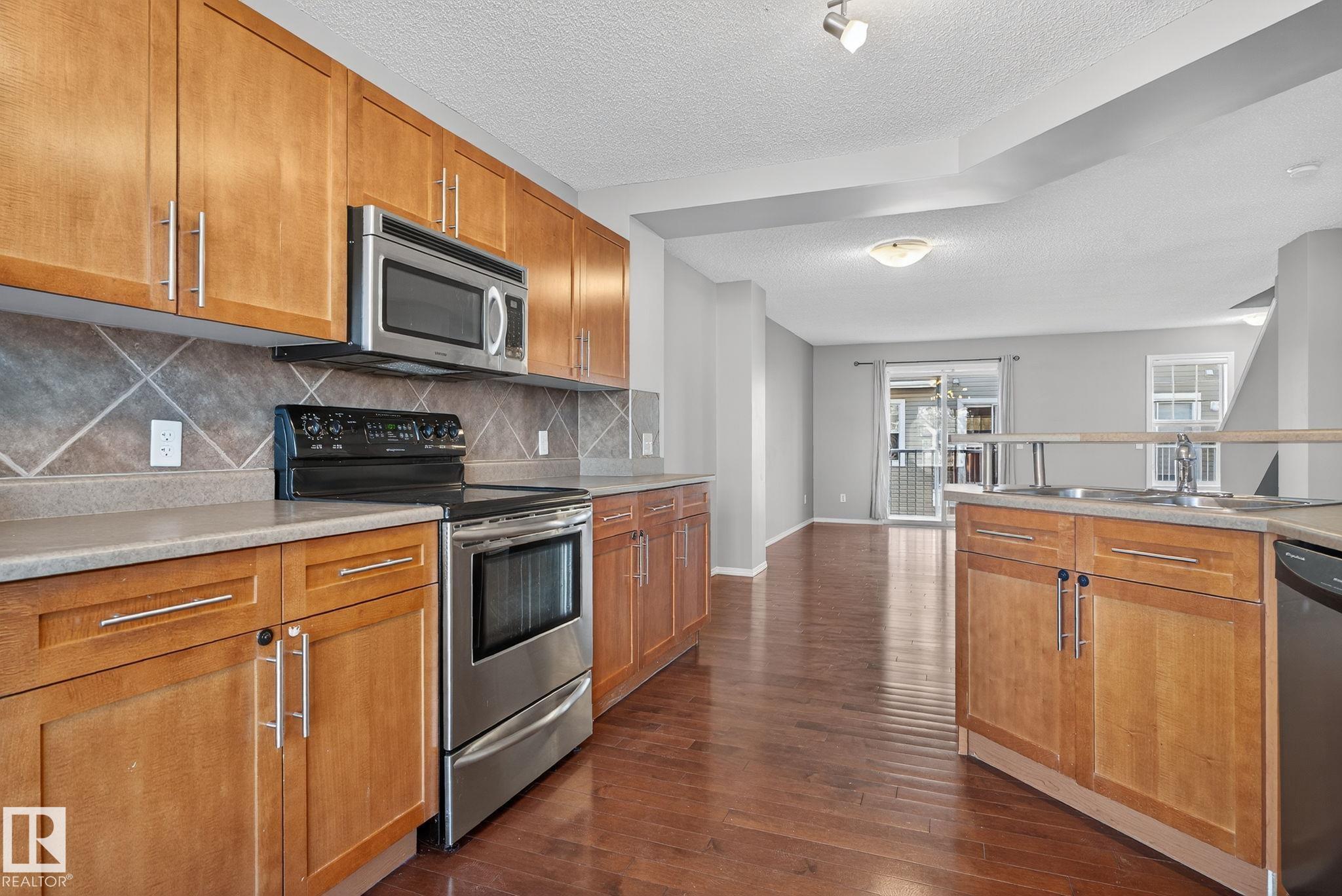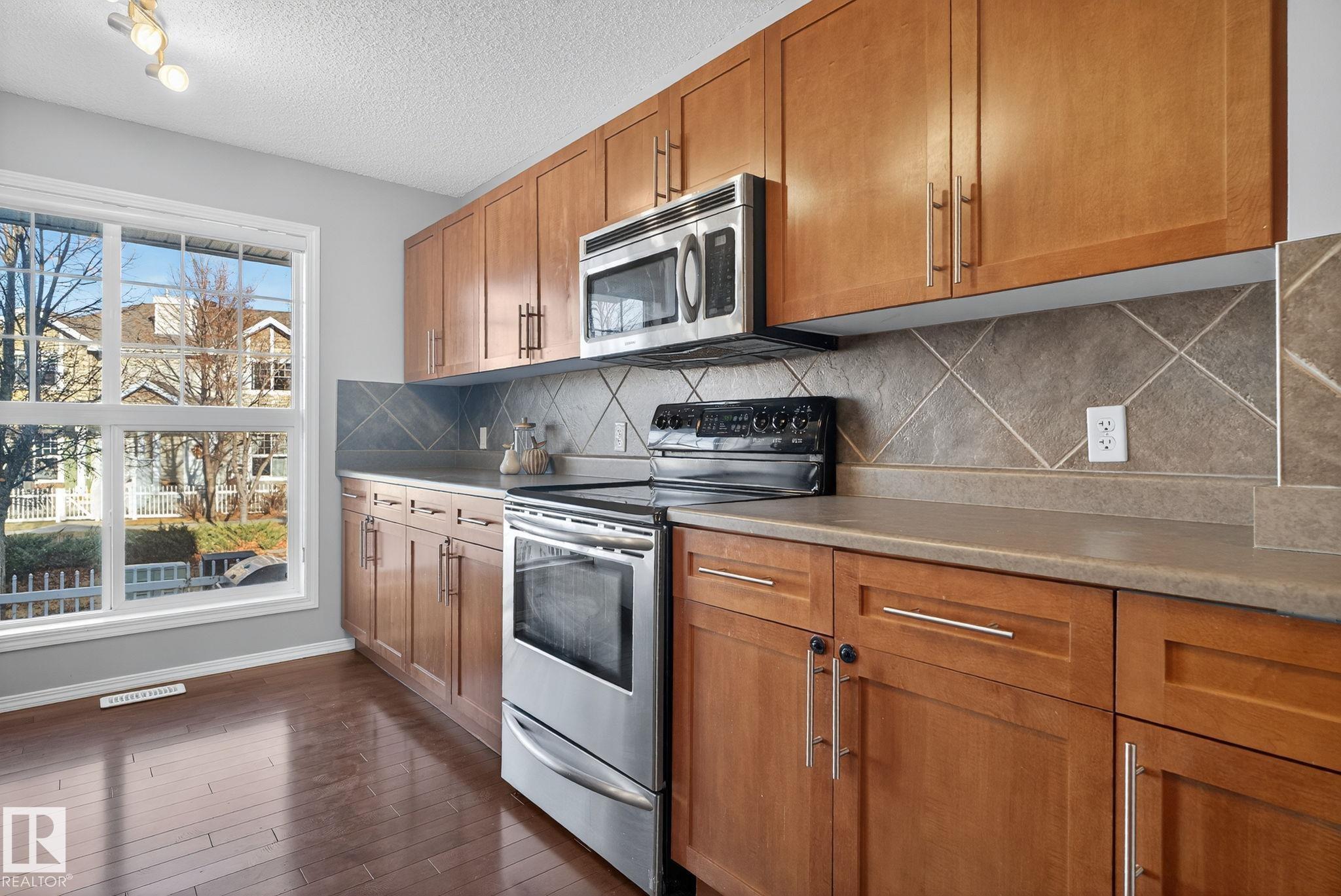 END UNIT, 2-bedroom, dual primary townhouse in the heart of Terwillegar Towne?one of Edmonton?s most coveted communities. This bright, open-concept home features 2 primary bedrooms, each with its own walk-in closet and full ensuite. The main floor offers a well-appointed layout with a tucked-in yet open kitchen with an eat-up bar, spacious dining area, and a comfortable living room that opens to your balcony. Enjoy a gated front yard overlooking the beautifully maintained complex garden space. The double attached garage adds everyday convenience. All of this just minutes from the Transit Centre, Terwillegar Rec Centre, Anthony Henday, top schools, shops, and all major amenities. Low condo fees make this home even more appealing! Move in Ready and available for quick possession. Some Photos have been virtually staged.