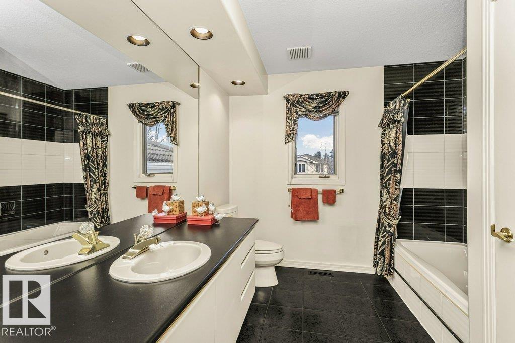 Welcome to this well maintained home in prestigious Country Club! Lovingly cared for by the same owners for 29 years, this immaculate home features neutral tones & a bright, functional layout with large rooms. The main floor offers a formal living room with soaring ceilings, dining room & a spacious kitchen with island & nook overlooking the deck & yard. There is a main floor family room with gas fireplace open to the kitchen - a perfect place for everyone to hang out! A main floor office (could be bedroom), laundry & 2 pce. bath complete this level. Upstairs offers a large primary suite with walk-in closet & a spacious 5-pce. ensuite, plus 2 additional bedrooms. Fully finished basement includes a huge rec rm (rough-in for wet bar), 4th bedroom & full bath incl. a steam shower. Enjoy the partially covered deck, beautifully landscaped yard with underground sprinklers & a double attached garage. Fantastic location near ravine trails, WEM, excellent schools, Whitemud & Henday ? a perfect place to call home!