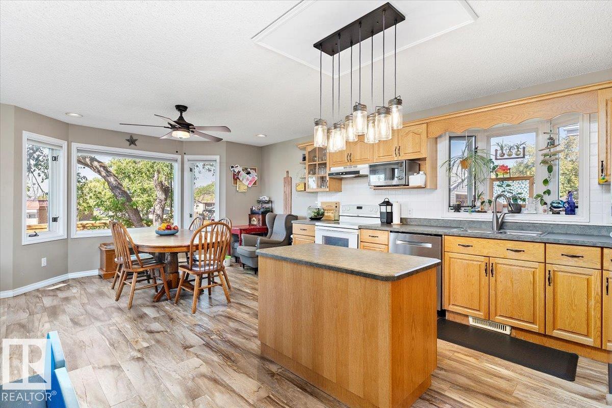 Welcome to 8 Beaverhill Drive in the charming community of Tofield! Great family home with fenced yard and double detached garage! Open design of sunny, sunken living room and dining area greets you upon entering this lovely home. Your gourmet kitchen has lots of counterspace, oak cabinetry, island, and large dinette area with access to your outside deck. Primary bedroom with 2pc ensuite, 2nd & 3rd bedrooms, and 4pc bathroom completes the main floor. Basement is finished with huge family room with wood burning fireplace, den, bedroom, 3pc bathroom, laundry room, and storage room with cold room. Back yard is beautifully landscaped with mature trees, flower beds, shrubs, perennials, raspberry bushes, and vegetable garden. Awesome neighborhood and walking distance to park, playground, and Schools. A must see !!!