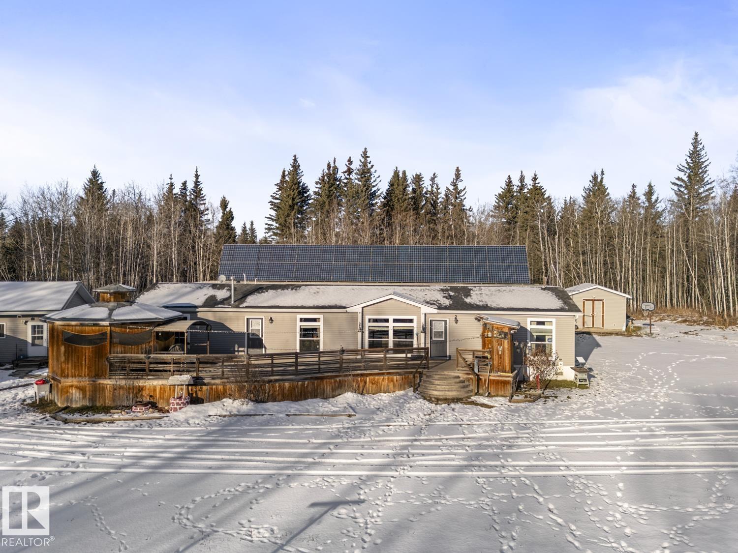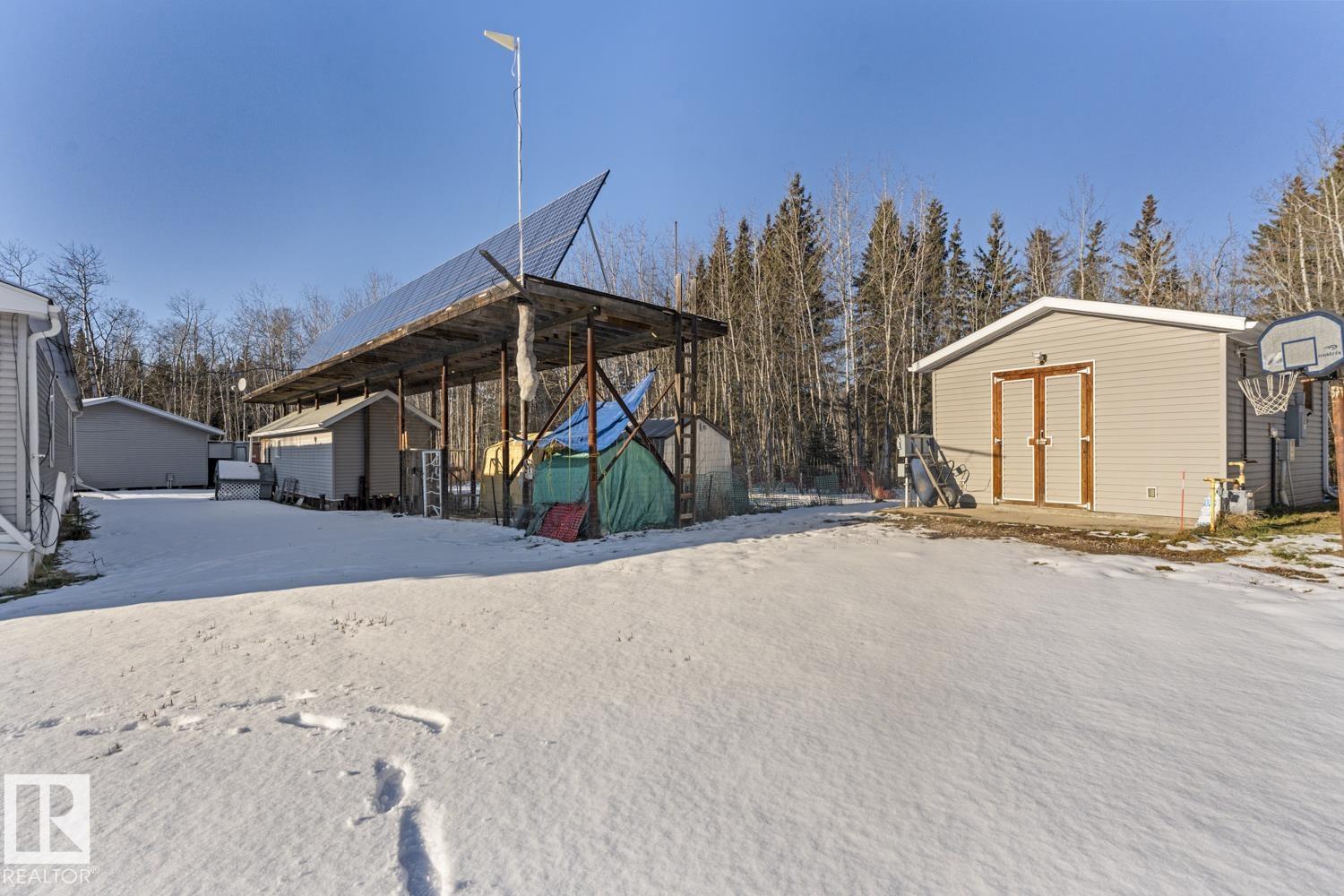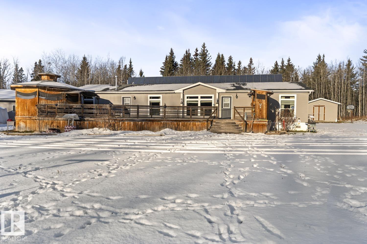 136 acres in Riverhurst area with two power sources (Atco and impressive solar power system). Golden opportunity for HOBBY FARM with potential for off-grid living! Very privately situated, this property is mostly treed and backs onto Hwy 55. The manufactured home features vaulted ceilings, centre island in kitchen, 4 bedrooms, 2 bathrooms, garden door to large deck with gazebo housing a hot tub. Across the yard is above ground swimming pool area with pool deck & pool storage/change room. Large HEATED WORKSHOP, paint room, storage sheds, fenced chicken coop area (or use as dog run), fenced garden area, designated area for future garage although existing tarp sheds will stay. This property must be seen to be fully and truly appreciated - careful thought and planning has gone into developing this exceptional property. Only 10 minutes from Cold Lake, close to Imperial Oil, Strathcona, CLAWR, 30 minutes to Bonnyville and 20 steps to nature's beauty that can be your very own peaceful and private sanctuary.