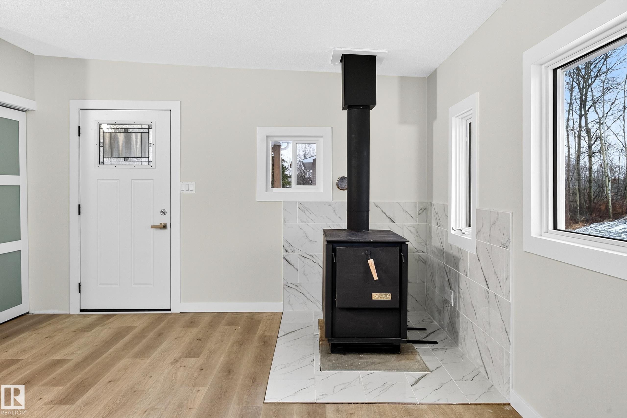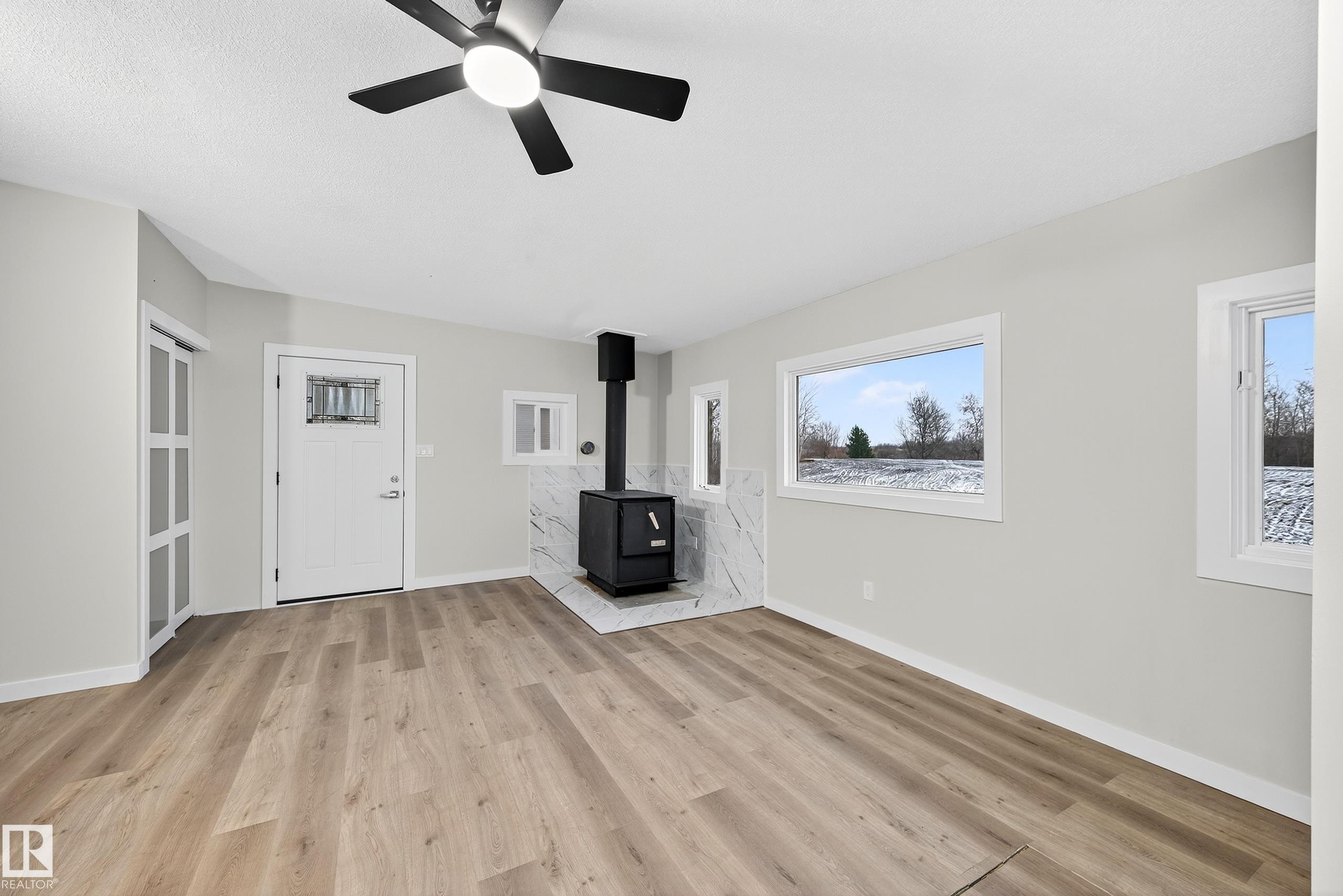 Nestled on 3.07 private acres with a DRILLED WELL and septic tank & field, this peaceful country retreat backs onto a serene creek and protected environmental reserve. A potential second building site offers walk-out basement possibilities with stunning natural views. Modern, fresh & bright, this extensively upgraded 1,548 sq ft home features new vinyl plank flooring & baseboards, vinyl windows, fresh paint, and updated lighting. The open-concept great room seamlessly connects living and dining with the chef?s kitchen, complete with quartz countertops, abundant cabinetry, a large island, and stainless steel appliances. The primary bedroom includes a 2-pc ensuite and private deck access, complemented by two additional bedrooms and full 4-pc bath. A convenient crawl space provides extra storage and wood burning stove adds cozy warmth. Completing this exceptional property is a BRAND-NEW 30' x 40' shop with 16' ceilings, two 14' industrial doors, and concrete slab reinforced with pilings...a mechanic?s dream!