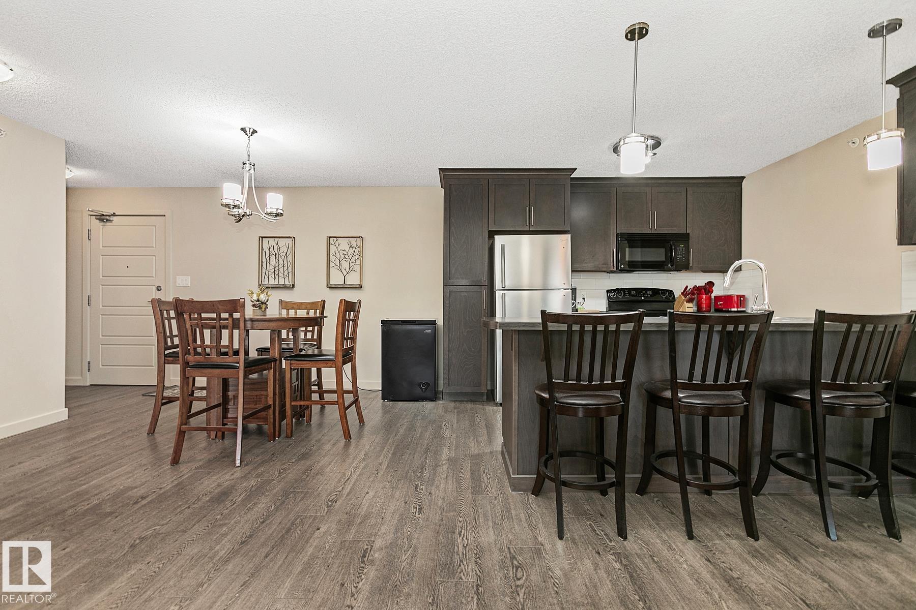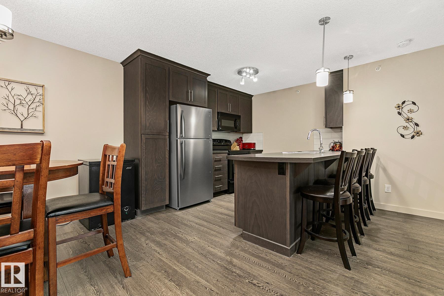 TOP FLOOR condo with TWO Parkings Stalls (1 Underground) & Insuite Laundry. Located in LAKE SUMMERSIDE with year-round access to the Lake amenities such as fishing; Beach; Playground; Tennis; etc. Can it get better than this? Look no further, with sunset views, this 948 SqFt 2 Bedroom & 2 Bathroom unit has an open-concept layout & laminate flooring. Perfect for a 1st time home buyer, young couple or investor! The Kitchen has plenty of cabinets; counterspace & an eat-up bar (New fridge 2024). Relax in the spacious Living room where patio doors lead onto the covered balcony. The Primary Bedroom boasts an Ensuite (W/I Shower; 2 Sinks) & a Walk-through closet. The 2nd bedroom is located next to the 4 piece Bathroom. A Laundry room has space for hiding those items out of sight. No neighbours above or on one side! Amenities include an exercise rm; games rm w. a pool table & a guest suite for out of town family & friends! Don't let this opportunity pass you by. Be part of this amazing community of Summerside