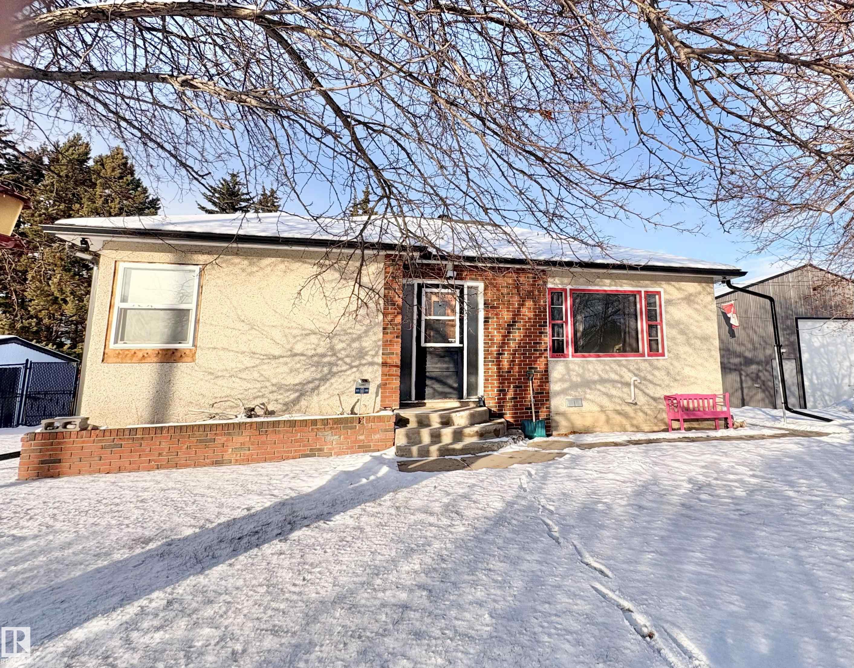 Charming Character Home w/ Endless Possibilities! Adorable bungalow in the village of Glendon perfectly blends character w/ modern upgrades. Bright front living room flows into a dining area. Updated kitchen features butcher block countertops, gas stove, sleek pull out cabinets & shelving. 3 bdrms & 2 baths including a primary w/ large closet. Partially developed basement provides ample storage, laundry & room for additional living space. Step outside to a private entertainment oasis, huge deck w/ covered seating, gazebo for cooking station w/ gas hookup & above-ground pool complete w/ heater & newer lining. Large, fully fenced lot includes 2 sheds, firepit & RV parking w/ power. 30' x 60' shop is truly impressive featuring an engineered concrete slab, in-floor heating, 220 power, 2 roll-up doors & a 10' x 30' mezzanine/developed office, perfect for a home business or hobby workspace. Close to school, park, village amenities & conveniently located between Bonnyville & St. Paul! Comfort & Opportunity!