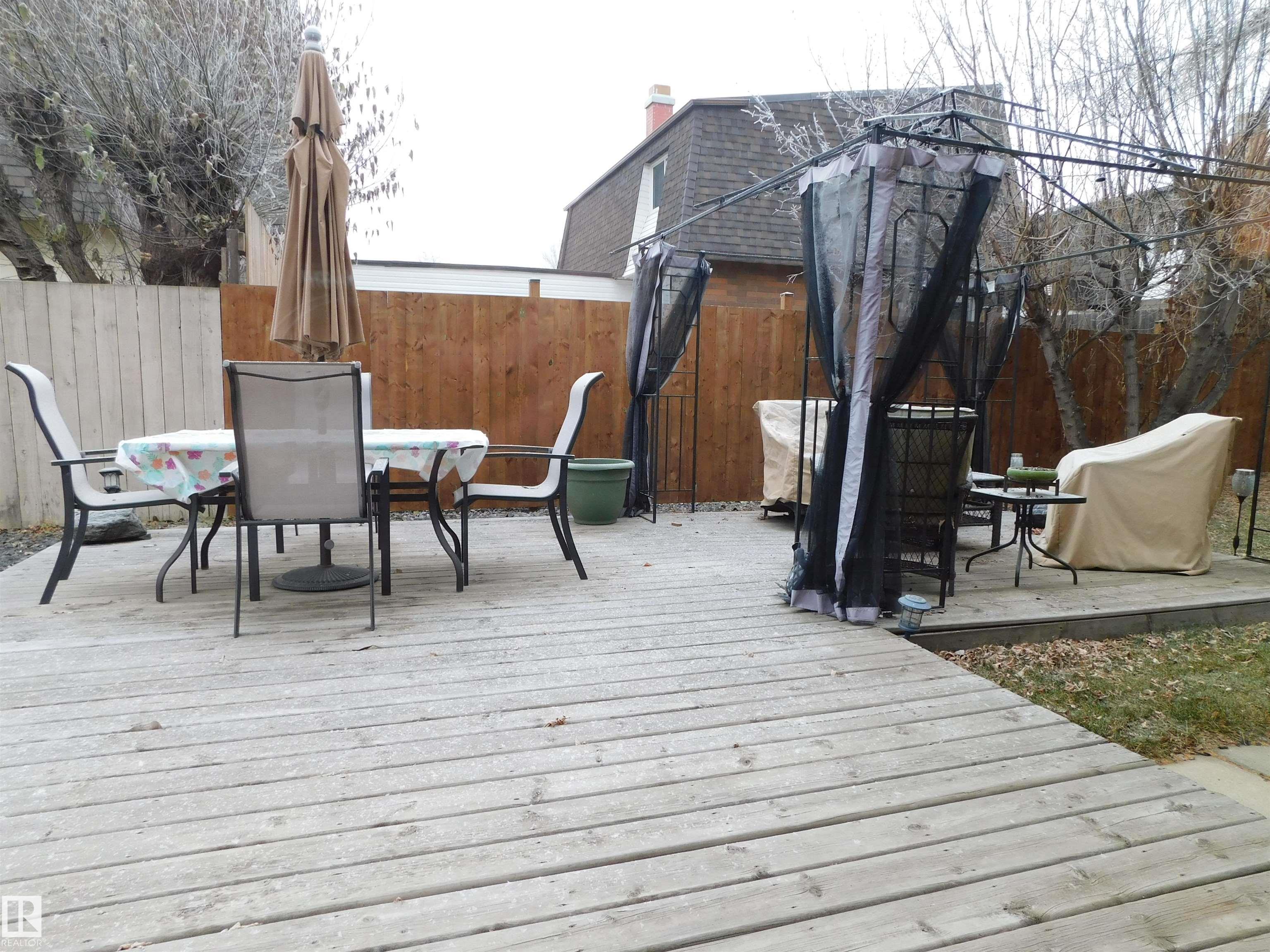 Super rare find in the very sought after Greenfield Estates! Spacious three bedroom end unit with no shared common walls, a double attached garage and an absolutely amazing private yard, so huge and so nicely landscaped! Large deck, large fire pit area, so nice! This gorgeous home has so many great upgrades for you to enjoy! Beautiful kitchen with tons of cabinets and counter space, stainless steel appliances and a nice big pantry. Upgraded bathrooms, flooring, lighting, furnace, hot water tank, HEPA air filtration, and more! Basement features a large rec room, office / gym / flex space plus a huge storage and laundry room. Greenfield Estates has been very well managed, upgraded and so well maintained. The only common wall is in the double attached garage. Great location, nice and quiet but quick access to major routes. This is a really fantastic place to live!