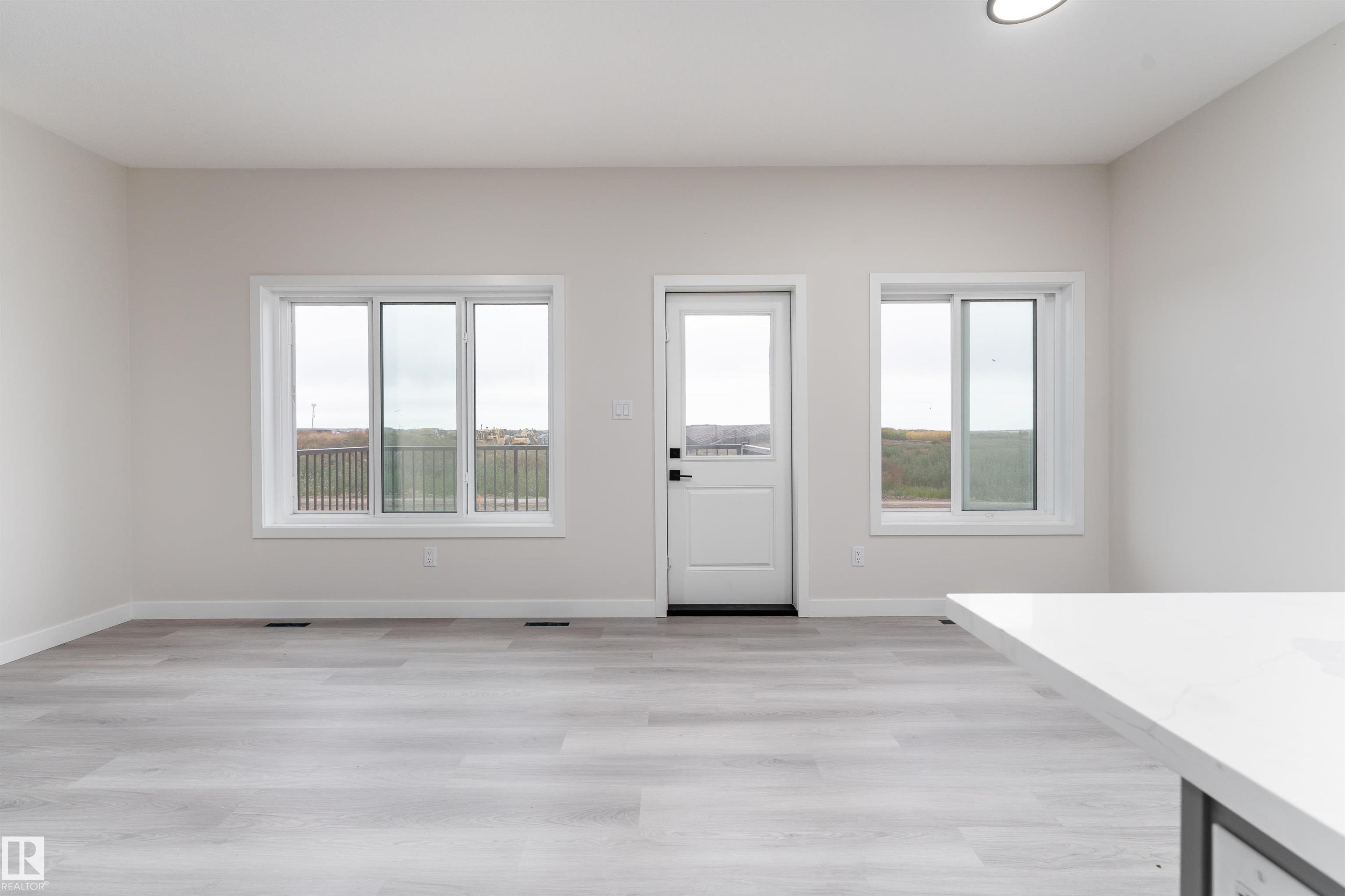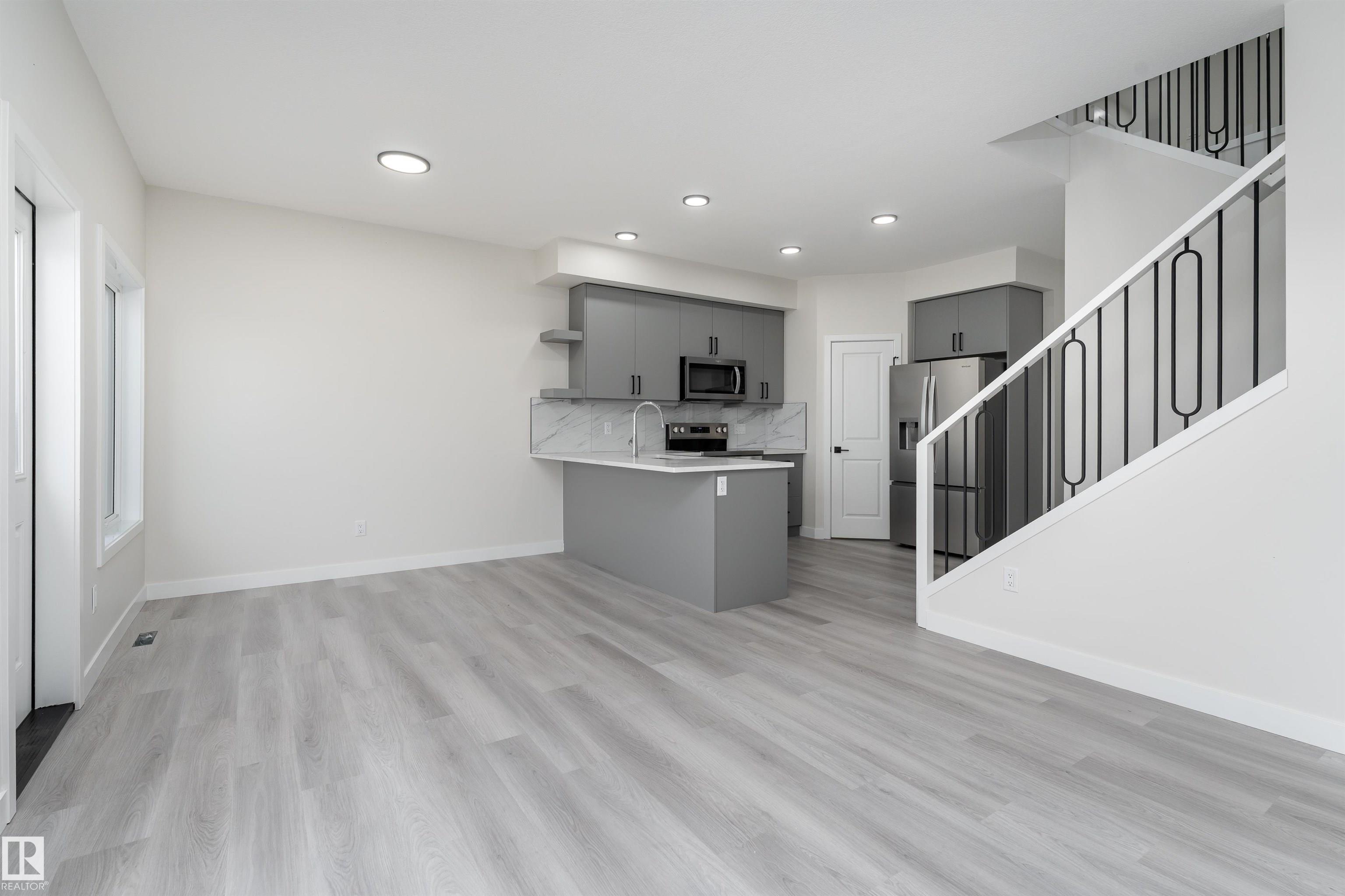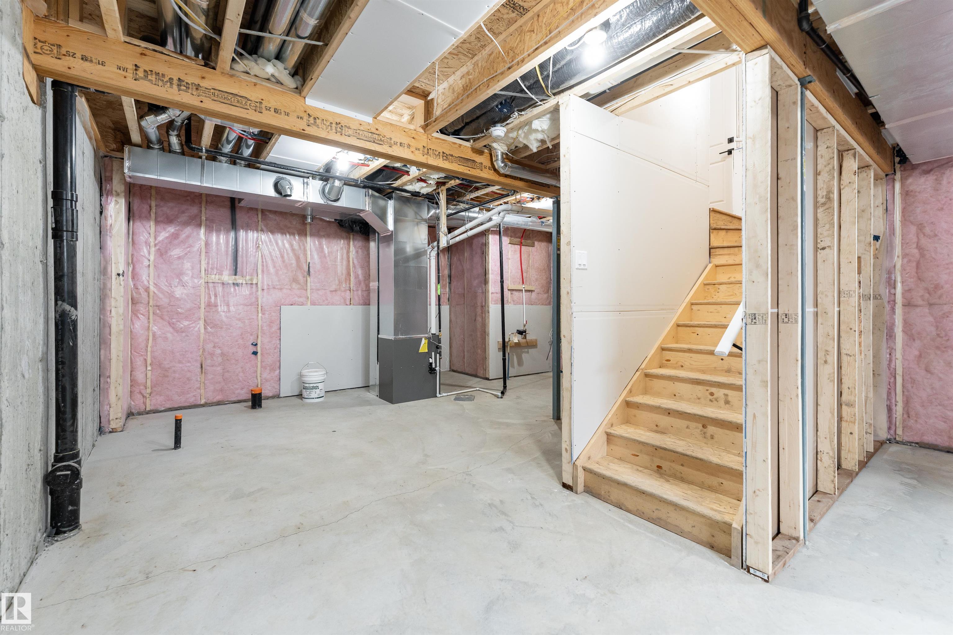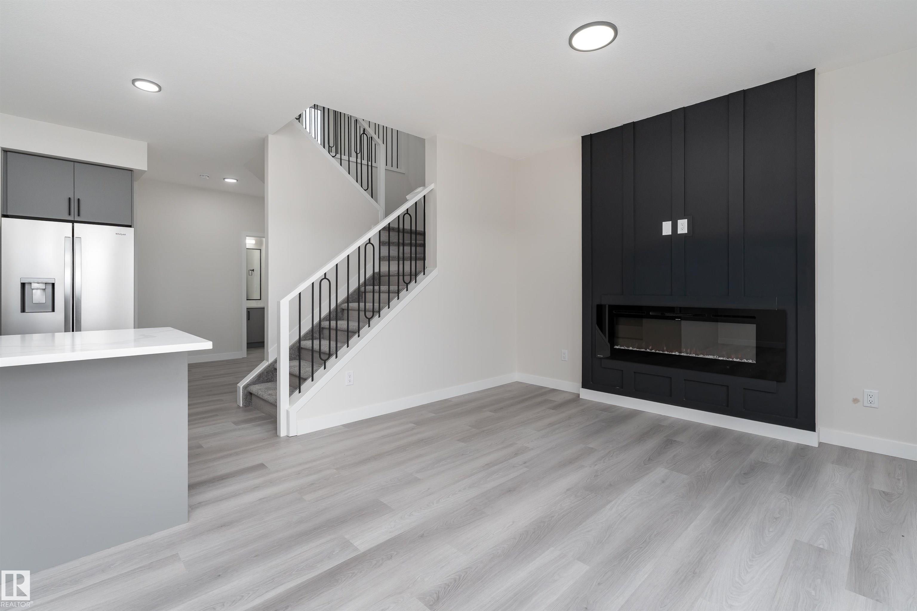 Prepare to be impressed by this brand new 1600 sq ft duplex, showcasing a modern, clean look throughout. The main floor offers a bright and spacious open layout with a warm fireplace in the living room. The modern kitchen includes stainless steel appliances and plenty of counter space, flowing into a large dining area with easy access to the deck. Upstairs, a spacious bonus room separates the three well sized bedrooms, including a beautiful primary suite with a walk in closet and a 4 piece ensuite. Another 4 piece bathroom adds everyday convenience. The full unfinished basement and double attached garage offer excellent storage, future development potential, and the opportunity to create a legal basement suite with its separate entrance. Outside, enjoy a large deck and a generous backyard perfect for entertaining, relaxing, or enjoying warm summer days. With brand new appliances and the excitement of being the first to live here, this home is truly an exceptional find. Some photos are virtually staged.