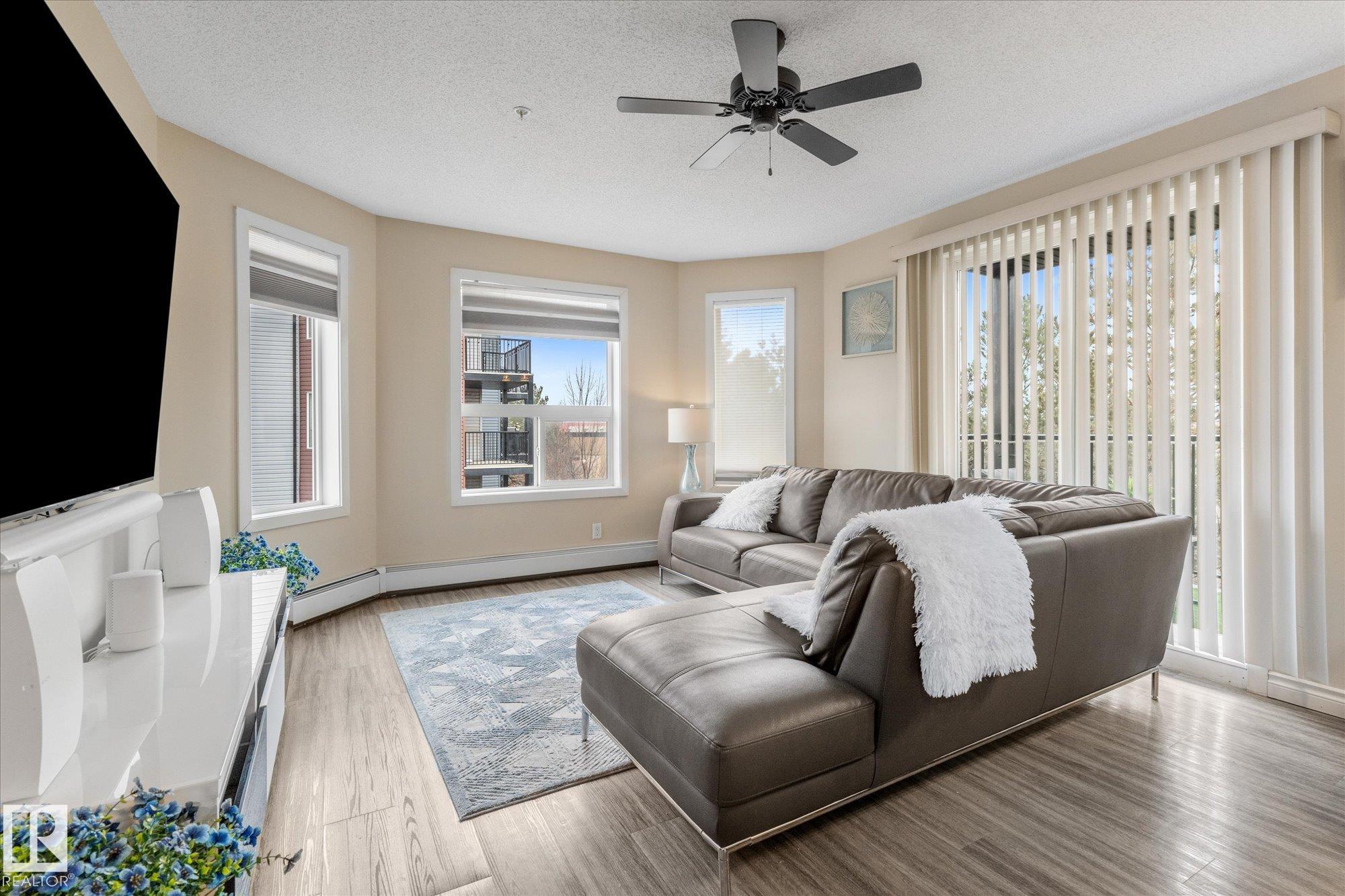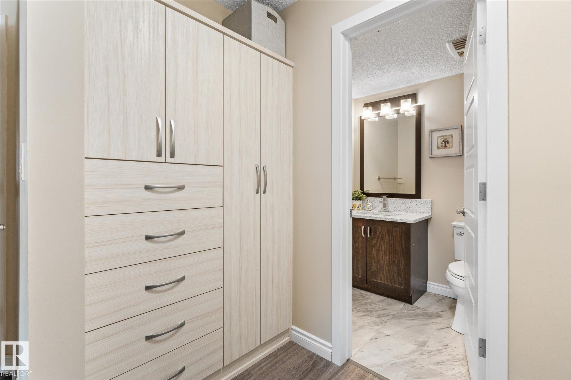 *** GOLDEN Opportunity in Silver Berry for Your Active Lifestyle! *** What do we mean by active, Dear Buyer? Evening strolls start at your doorstep winding toward the scenic Mill Creek Ravine &nearby parks, 5min drive to Meadows Rec Centre, plus a gym IN the building to keep you looking sharp! Speaking of sharp, let?s talk about this good-lookin? 2bed & 2bath condo: SHOW-STOPPER kitchen w/quartz counters, upgraded appliances & sleek vinyl floors. BIG primary (fits your king bed) w/custom closets +private 3pc. Versatile 2nd bdrm already set up for guests+office w/chic California Closets Murphy bed. Best part? This rare END-unit doesn?t face the parking lot like other units so you can enjoy peaceful patio BBQ+wine nights! Additional perks: carwash in parkade by your underground stall/cage(+2 transferrable surface stalls available@$50/mo). Healthy dining options &great amenities nearby. ETS/Henday/Whitemud for easy commutes. Pets welcome (w/board approval)! Put on your runners &go explore your new community!