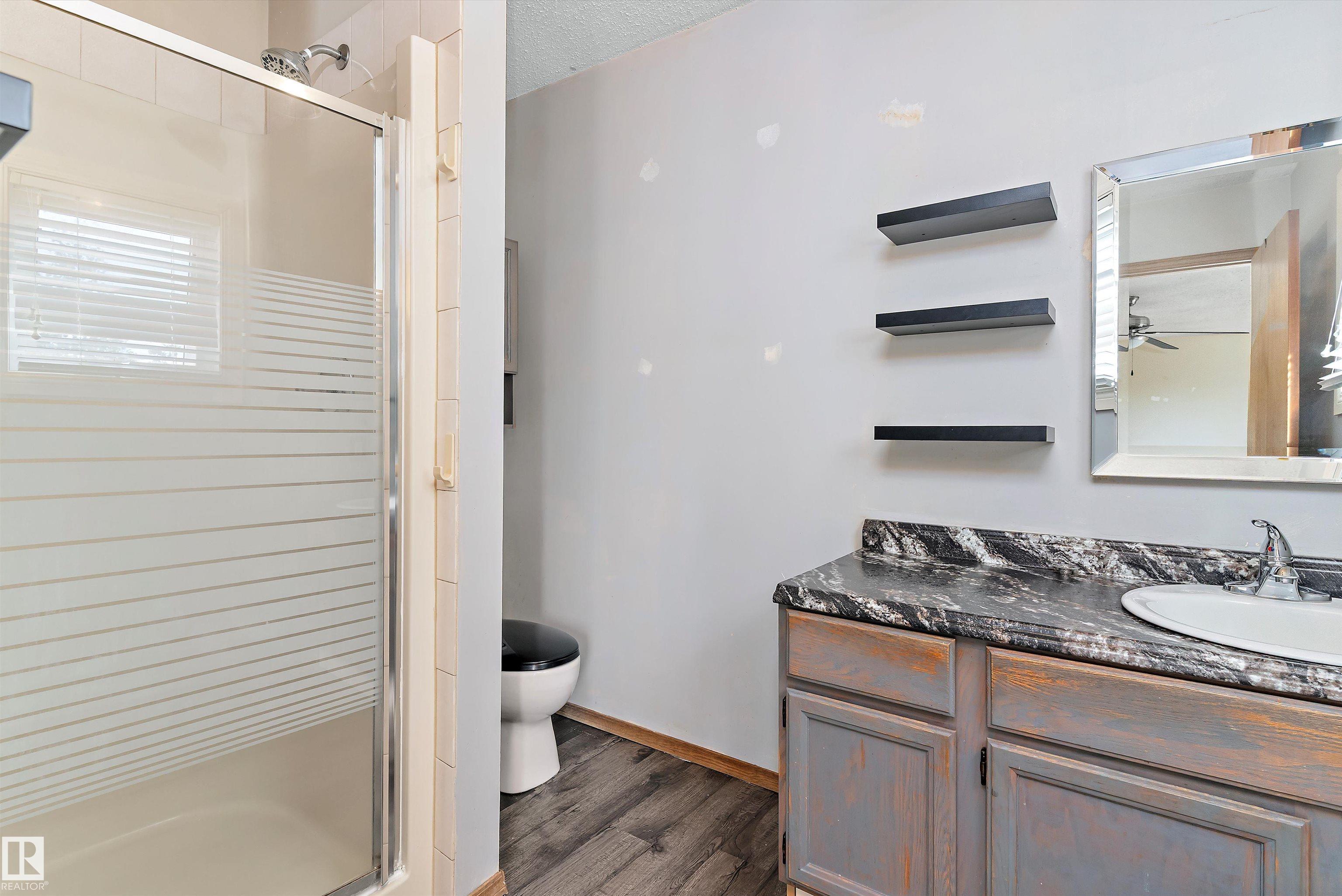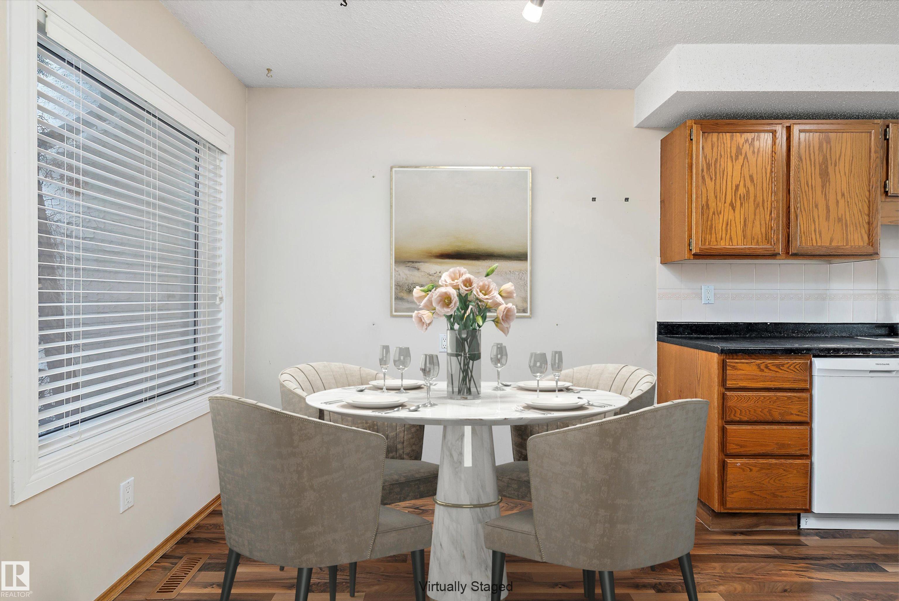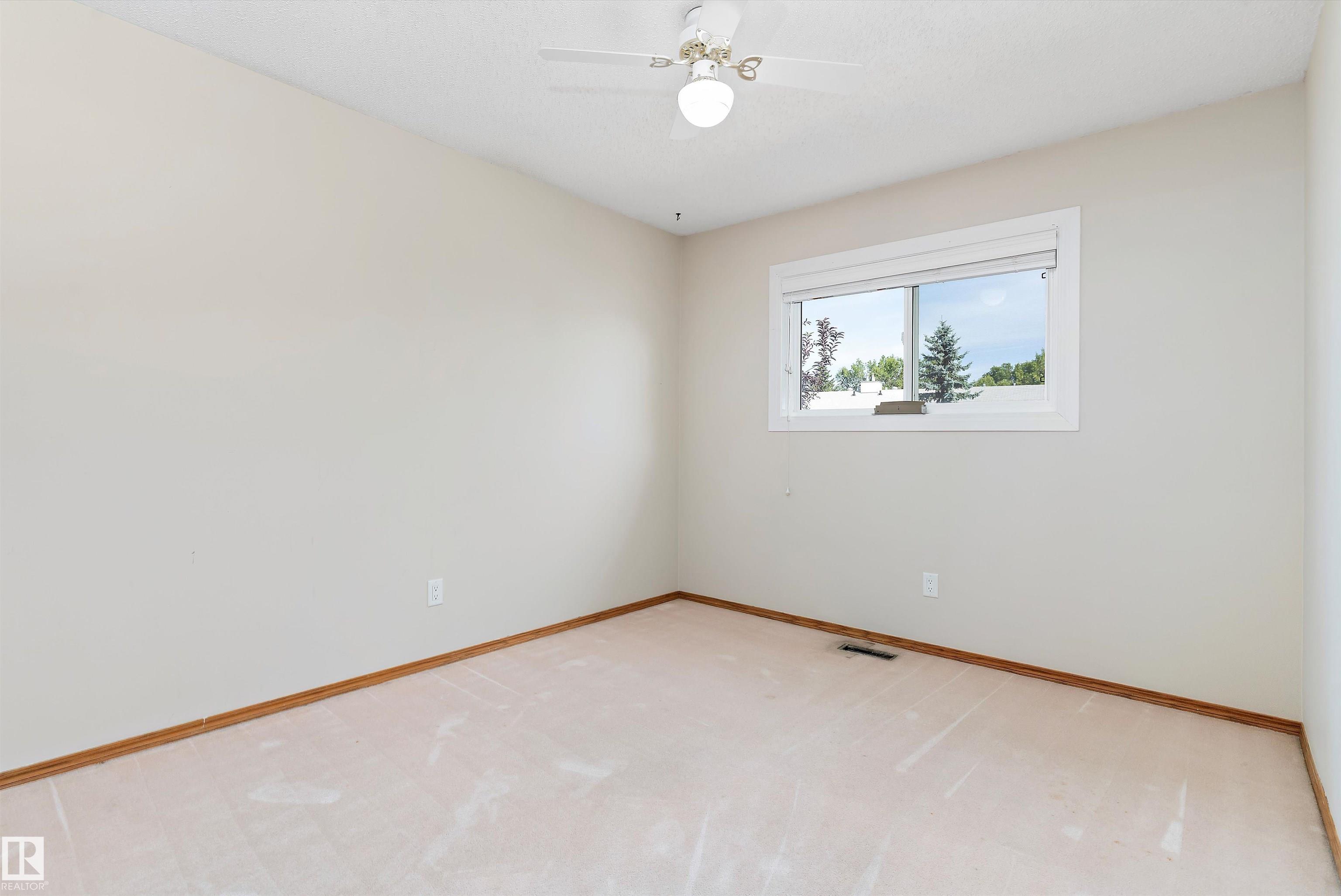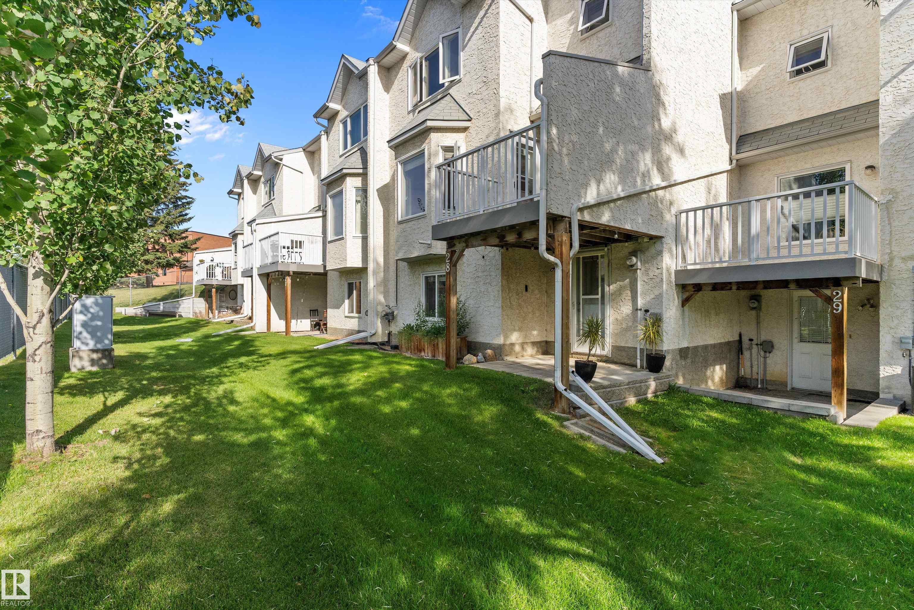 WALKOUT BASEMENT in this THREE BEDROOM home with FOUR BATHROOMS. South facing deck and back patio, and green space. LARGE PRIMARY BEDROOM is 13'5" x 12'3" and it has a THREE PIECE ENSUITE BATHROOM. This bedroom does need new paint and carpet. The other two bedrooms upstairs are also a good size, 13'7"x10' and 12'2"x11'11" and both have closet organizers. HIGH EFFICIENCY FURNACE installed about January 2018. The basement family room opens to the back patio and green space. There is also a den or office area in the basement, along with a bathroom. There are CUSTOM FITTED BLINDS in the home. Features you may appreciate: attached garage, nearby visitor parking, next to parks, walking distance to schools, and GREY NUNS HOSPITAL. Shopping close by at Mill Woods Towne Centre, and the LRT line is also close. This is a small, quiet, and well kept complex with vinyl windows, and Perma decks.