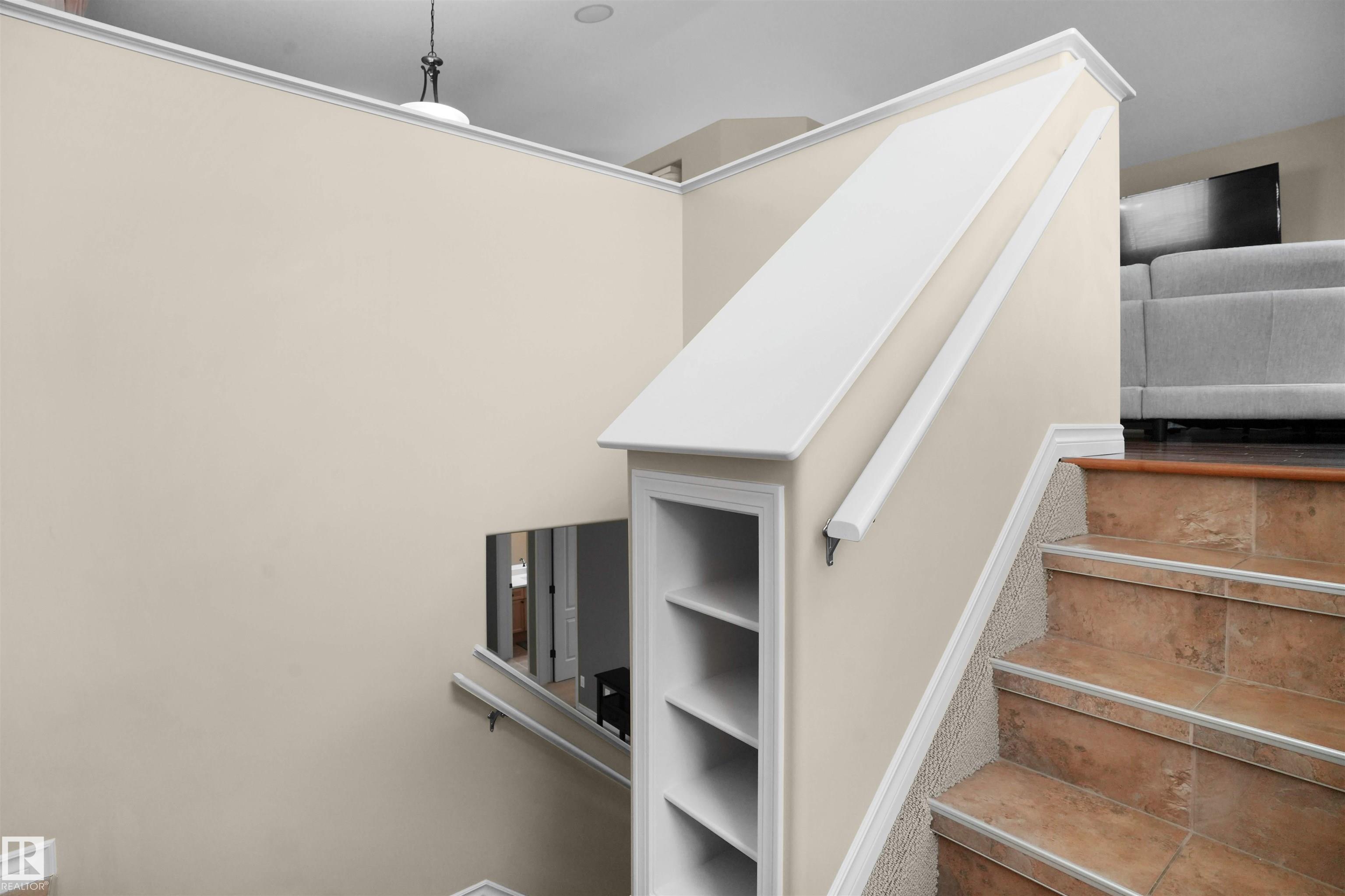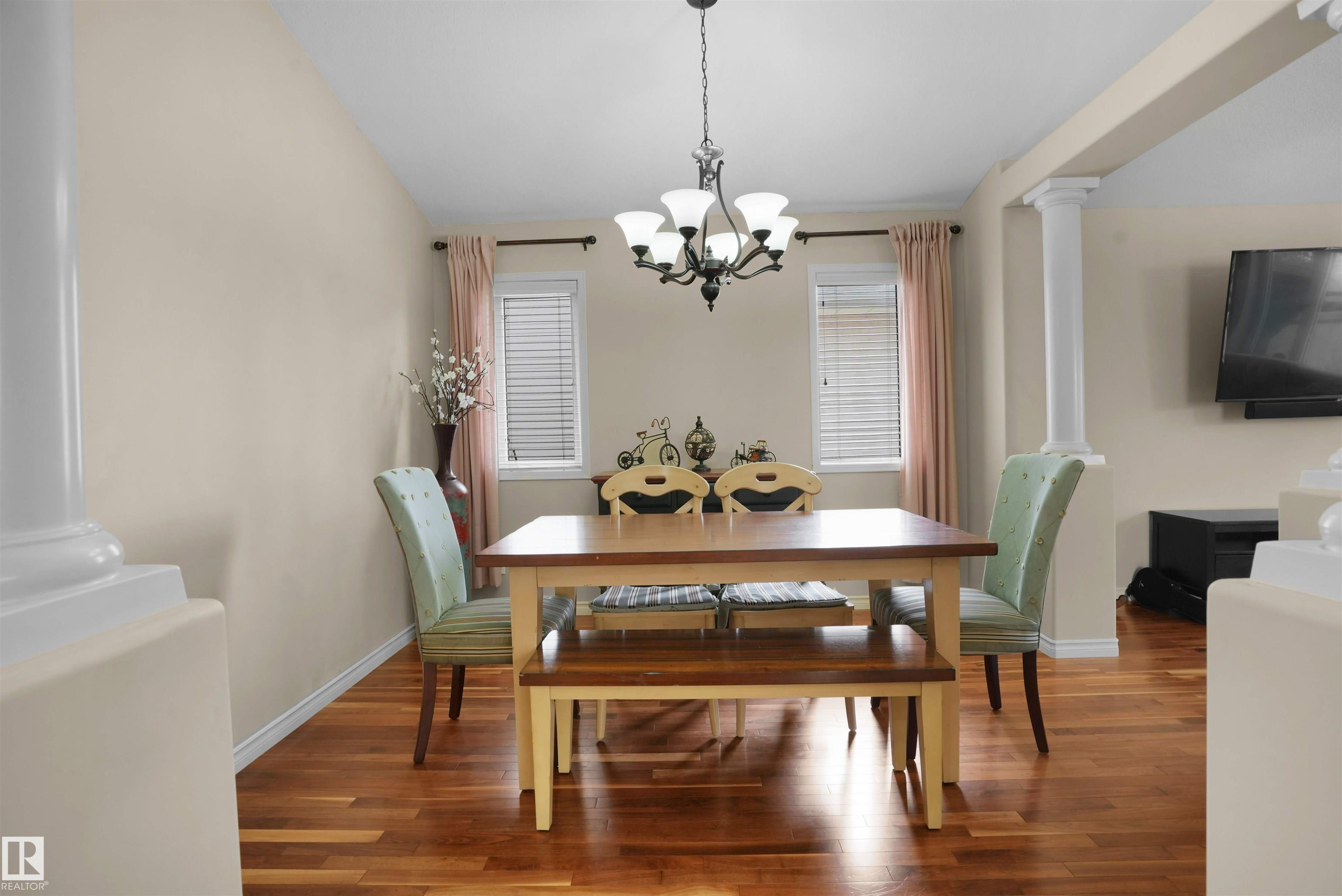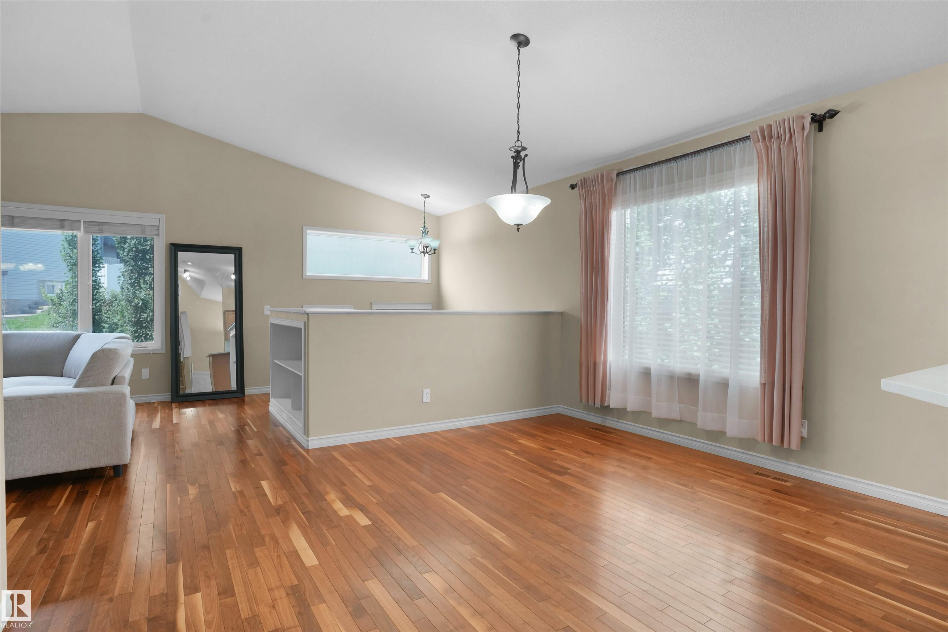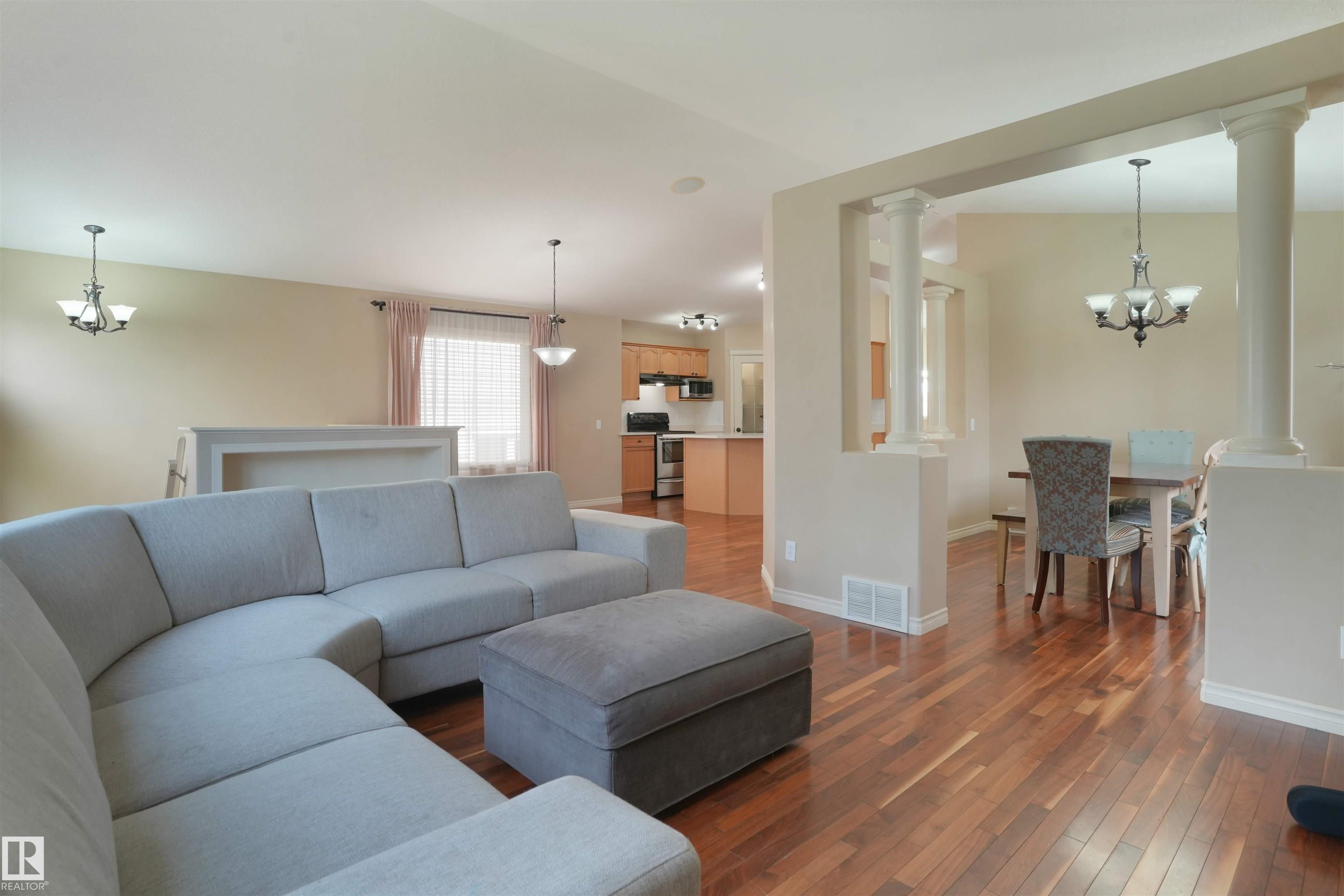 Stunning Former Showhome | Move-in Ready! Welcome to the Daytona Sentra IV, a stunning home with vaulted ceilings, walnut hardwood, and a chef-inspired kitchen featuring ginger maple cabinets, upgraded Quartz countertops, and a corner pantry. Enjoy flexible dining with a breakfast nook and formal dining room. The main floor offers a bedroom and full bath. Upstairs, unwind in your private primary retreat with a large walk-in closet and beautiful ensuite with Quartz counters, double sinks, and a jetted tub. The fully finished basement includes a family room with fireplace, two bedrooms, and a 3-piece bath. Exterior highlights include Eldorado stone accents, an 18x12 patio with pergola, full landscaping, and a finished 24x24 garage. Additional features: central A/C, built-in speakers, and security system. Ideally located near amenities, this home is the perfect blend of comfort and style!