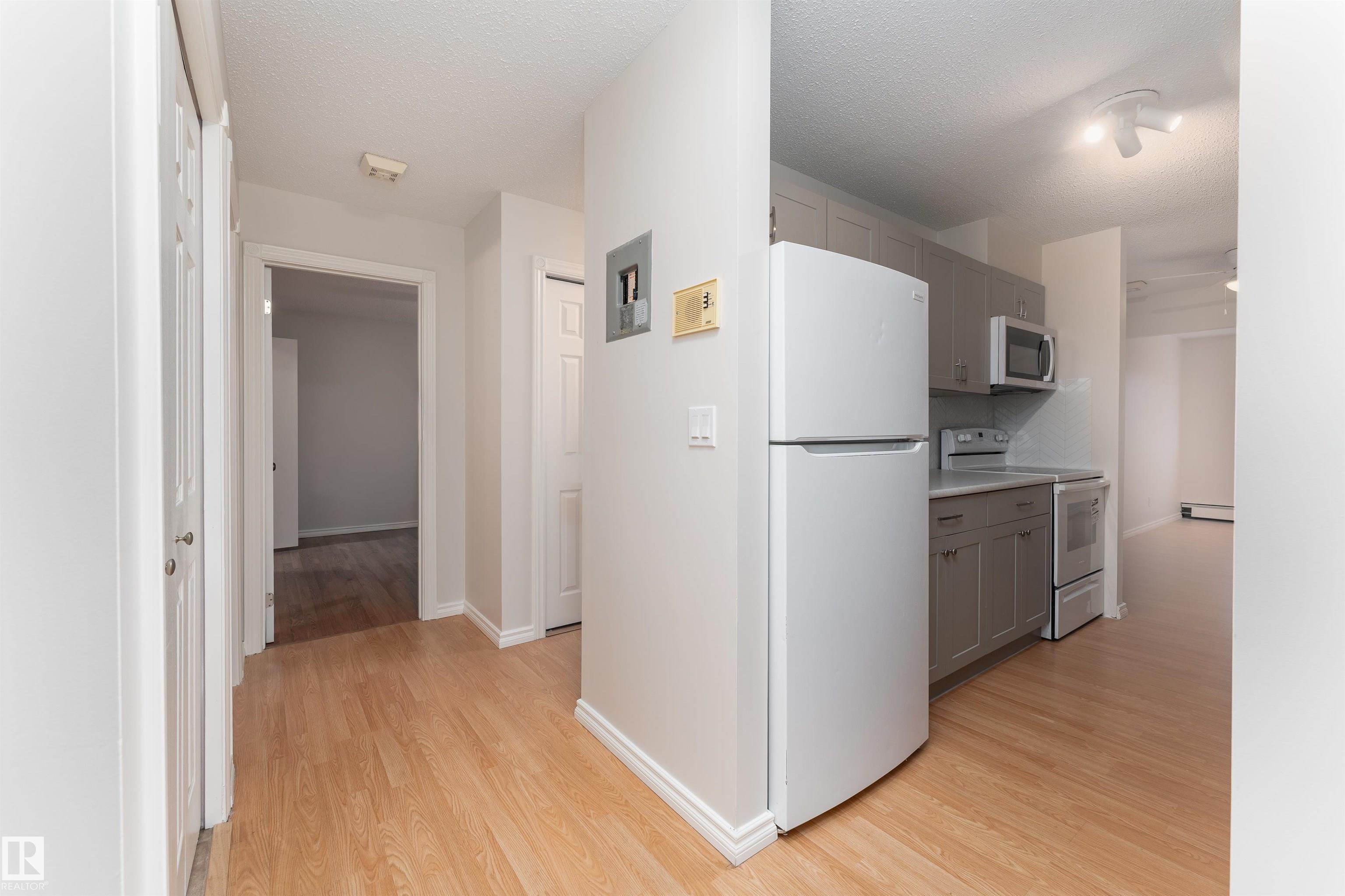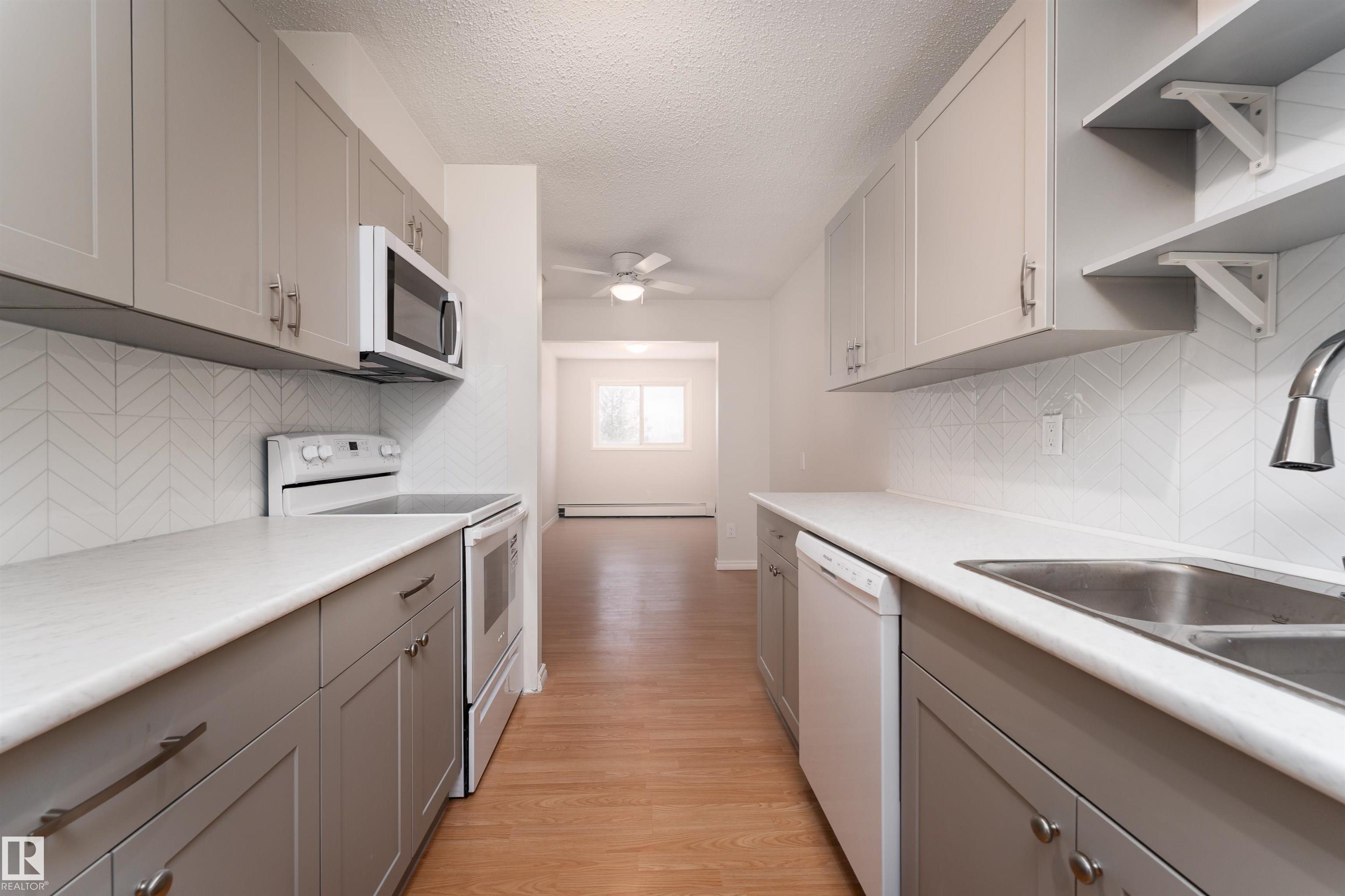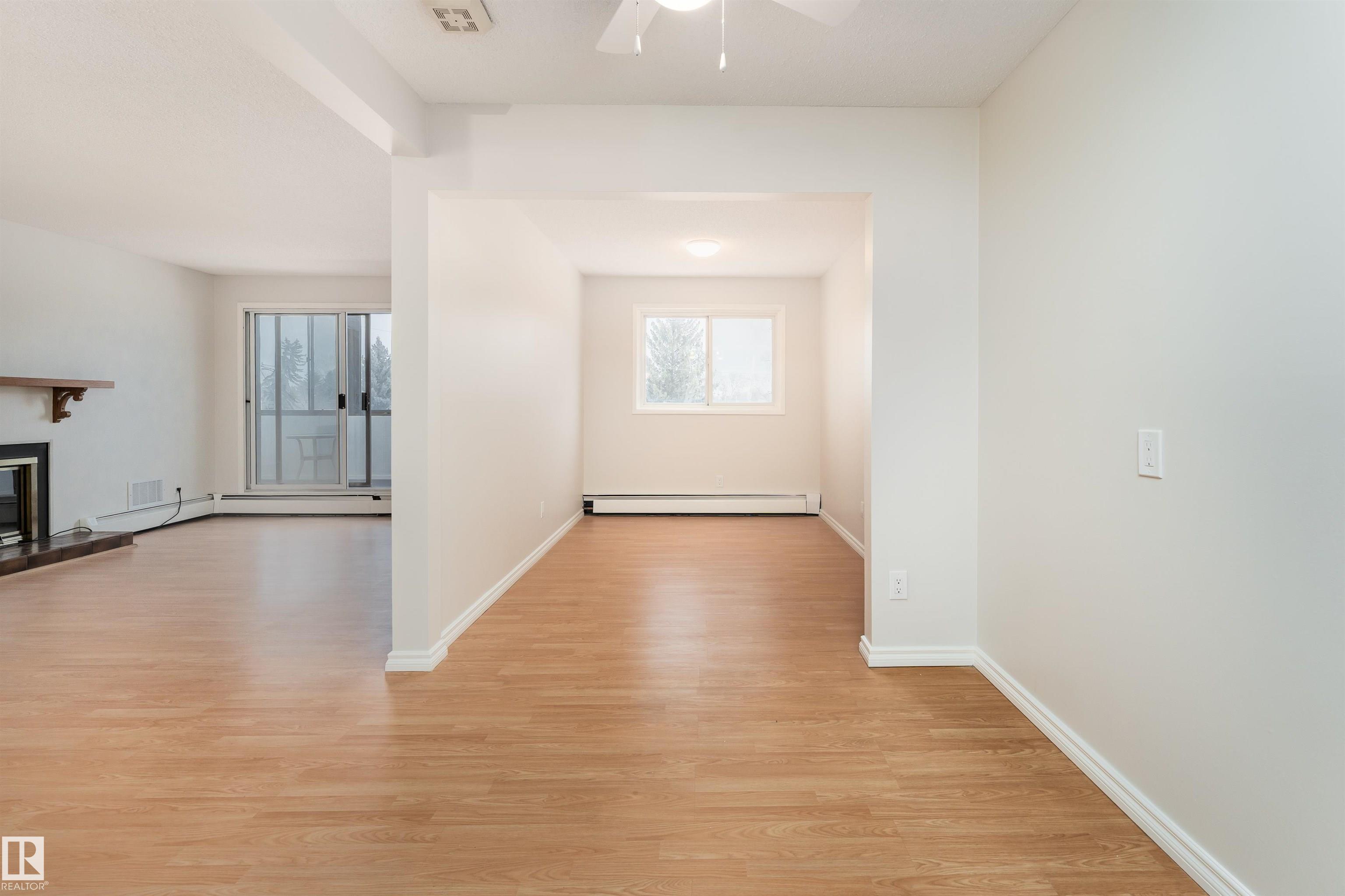 Calling all buyers looking for affordable living! This is the perfect place to begin your journey into homeownership, investors, or retirees. Bright, welcoming, and thoughtfully designed, this fantastic condo features beautiful laminate flooring and a renovated modern kitchen with a new stove and microwave, opening into a spacious living room centred around a cozy wood-burning fireplace. The primary bedroom features a large walk-in closet, the versatile den is ideal for an office or guest space, and the newly renovated 3-piece bathroom, along with in-suite laundry, adds everyday convenience. Step outside onto your spacious enclosed balcony and enjoy the fresh outdoors. Enjoy heated underground parking and the peace of a quiet, well-maintained building ideally situated near parks, trails, schools, and shopping. This home delivers the lifestyle you have been looking for. Some photos are virtually staged to highlight its incredible potential and help you picture yourself here. No pets & 18+ age