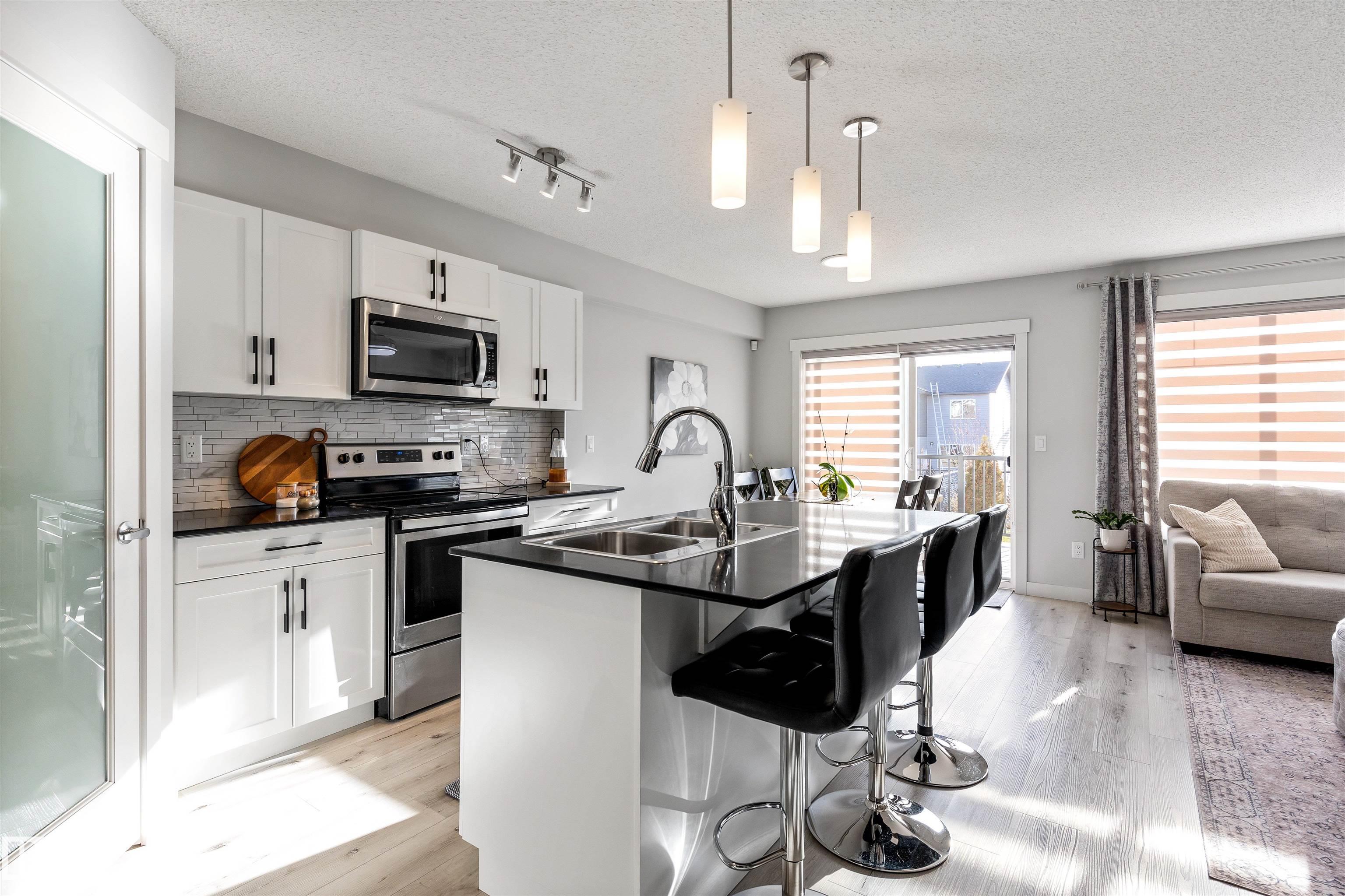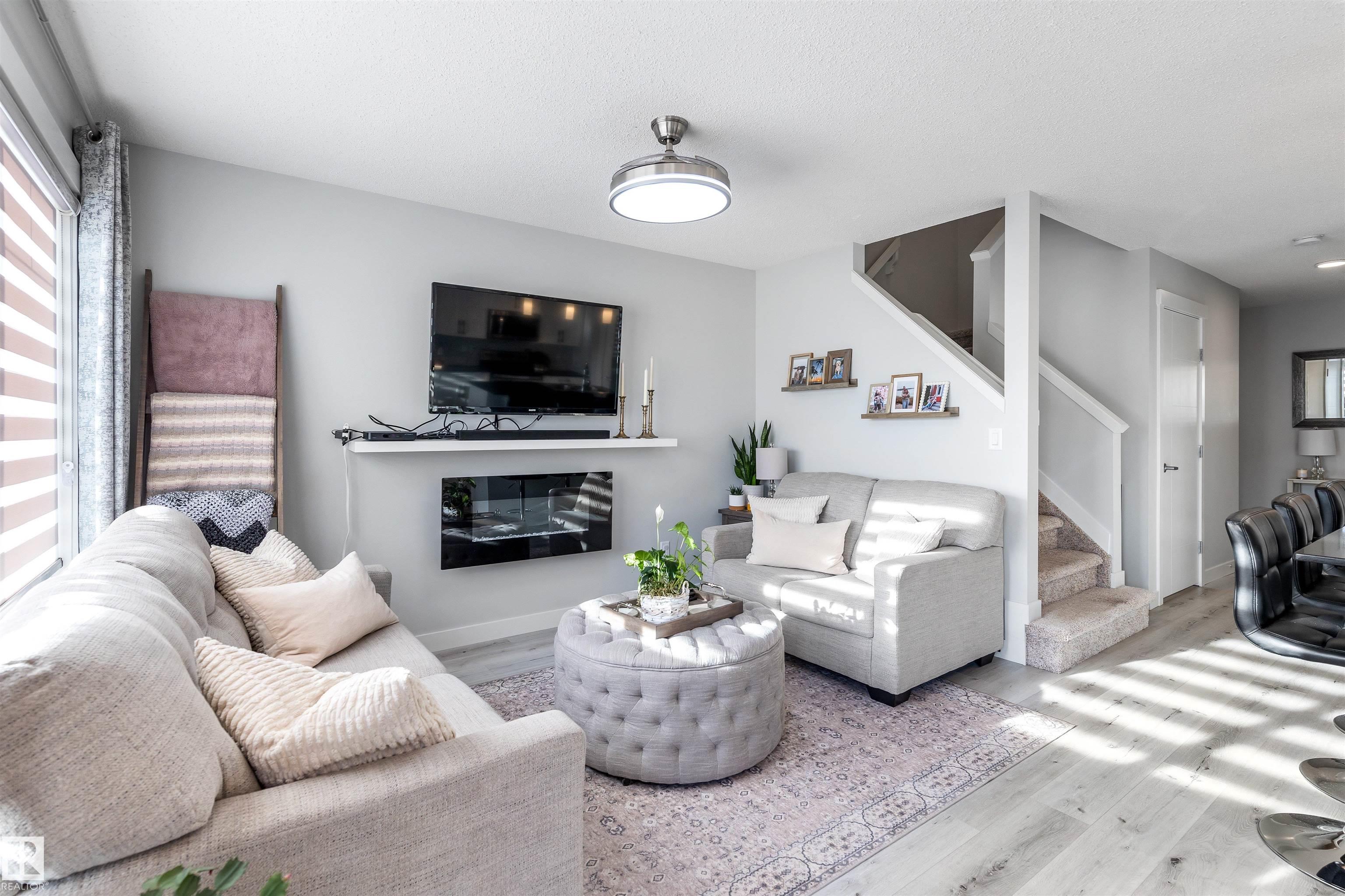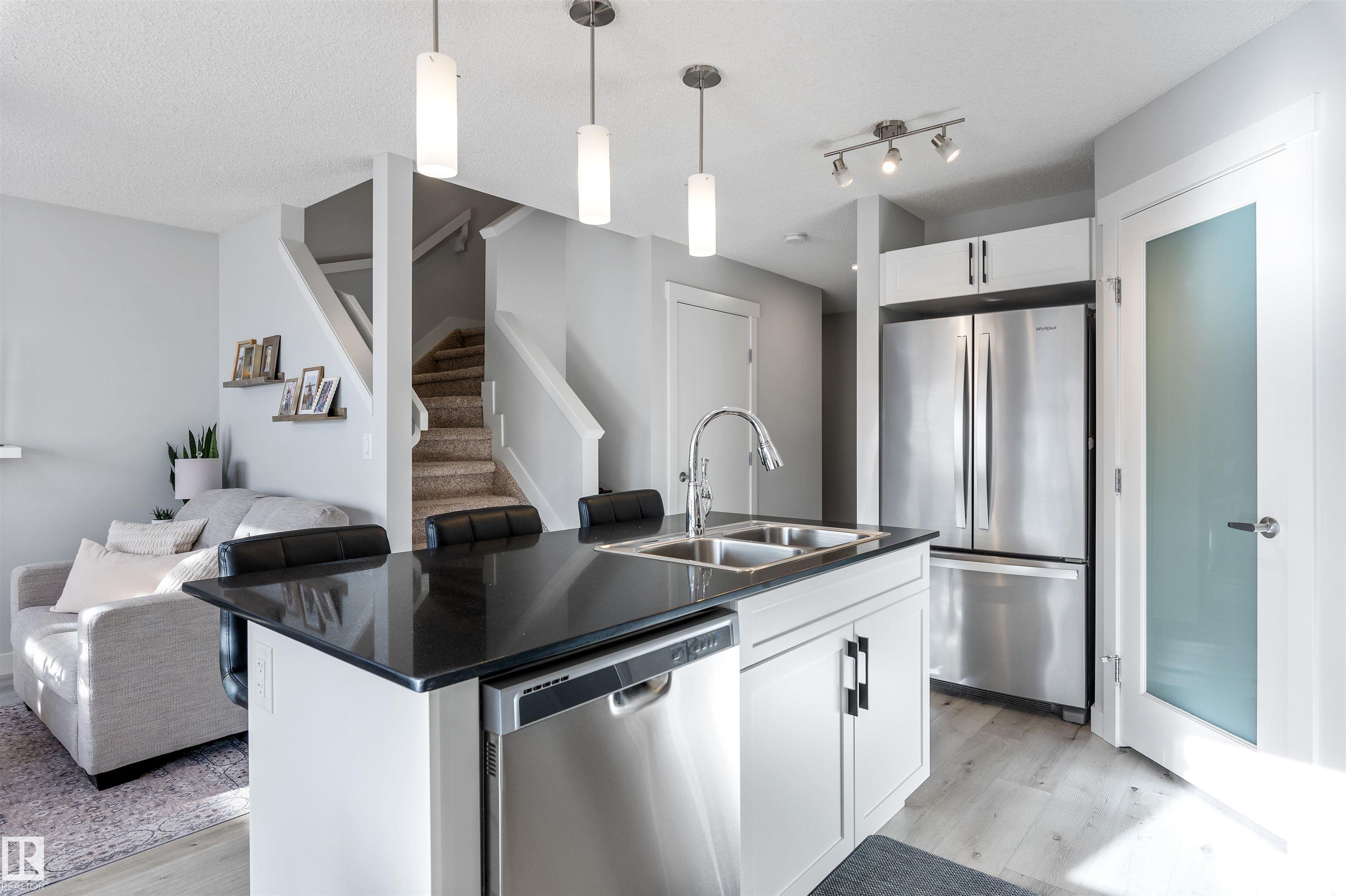 Welcome to this beautifully maintained 2 storey duplex in Crystallina Nera, offering a fully finished basement and thoughtful upgrades throughout. The bright, open main floor features a modern kitchen with stainless steel appliances, ample cabinet space, and a spacious living area perfect for entertaining. Upstairs you?ll find three comfortable bedrooms, including a generous primary suite with walk in closet. The finished basement adds a large rec room, full bath, and extra storage, ideal for family, guests, or a home office. Enjoy the fully fenced yard, deck, and oversized single attached garage. Located on a quiet street close to parks, schools, shopping, and walking trails. Move in ready and perfect for first time buyers or investors!