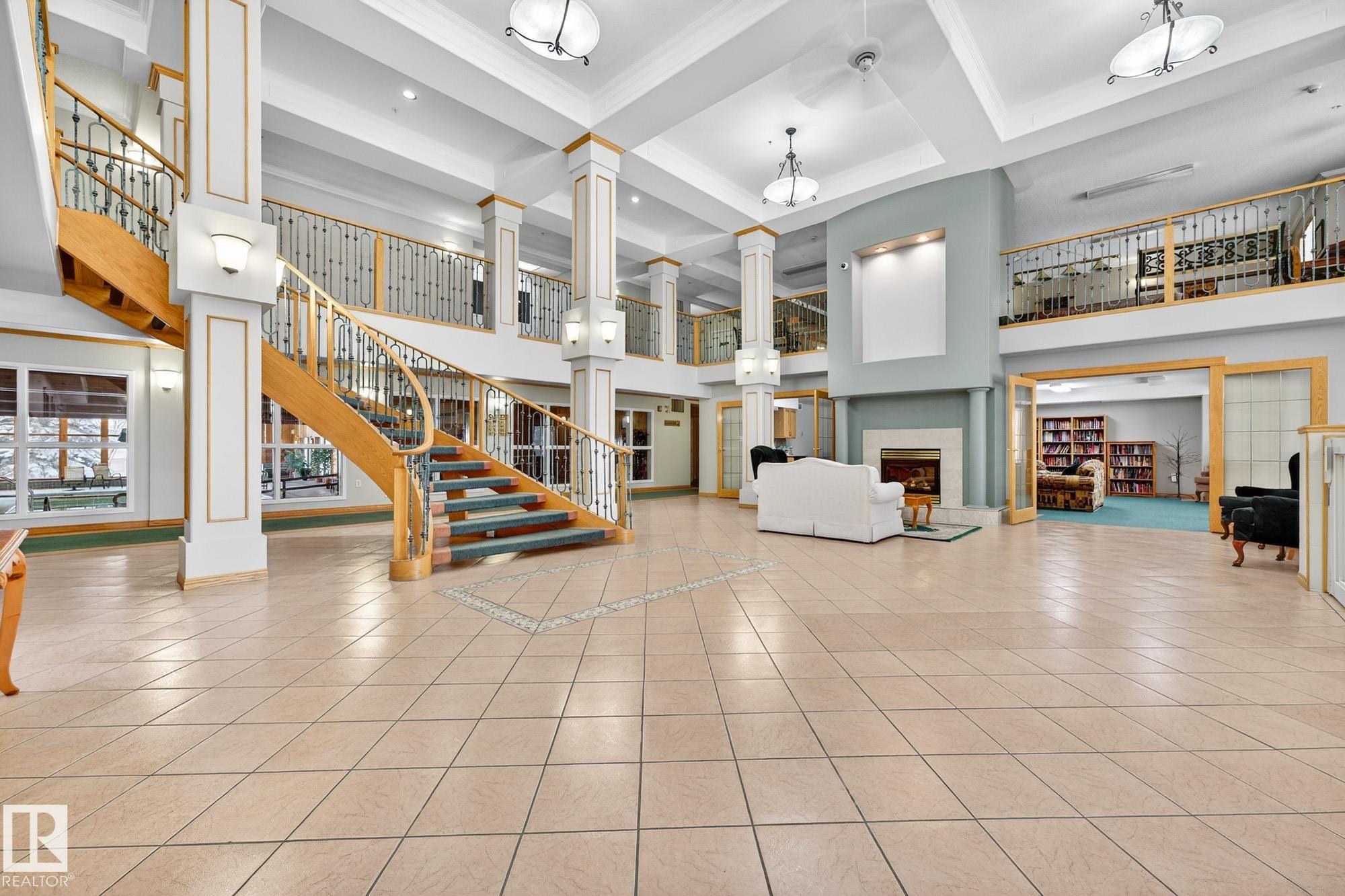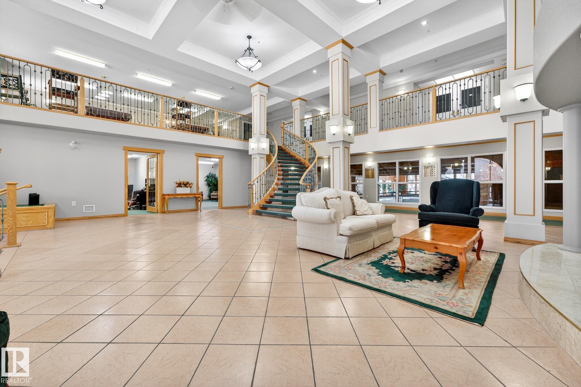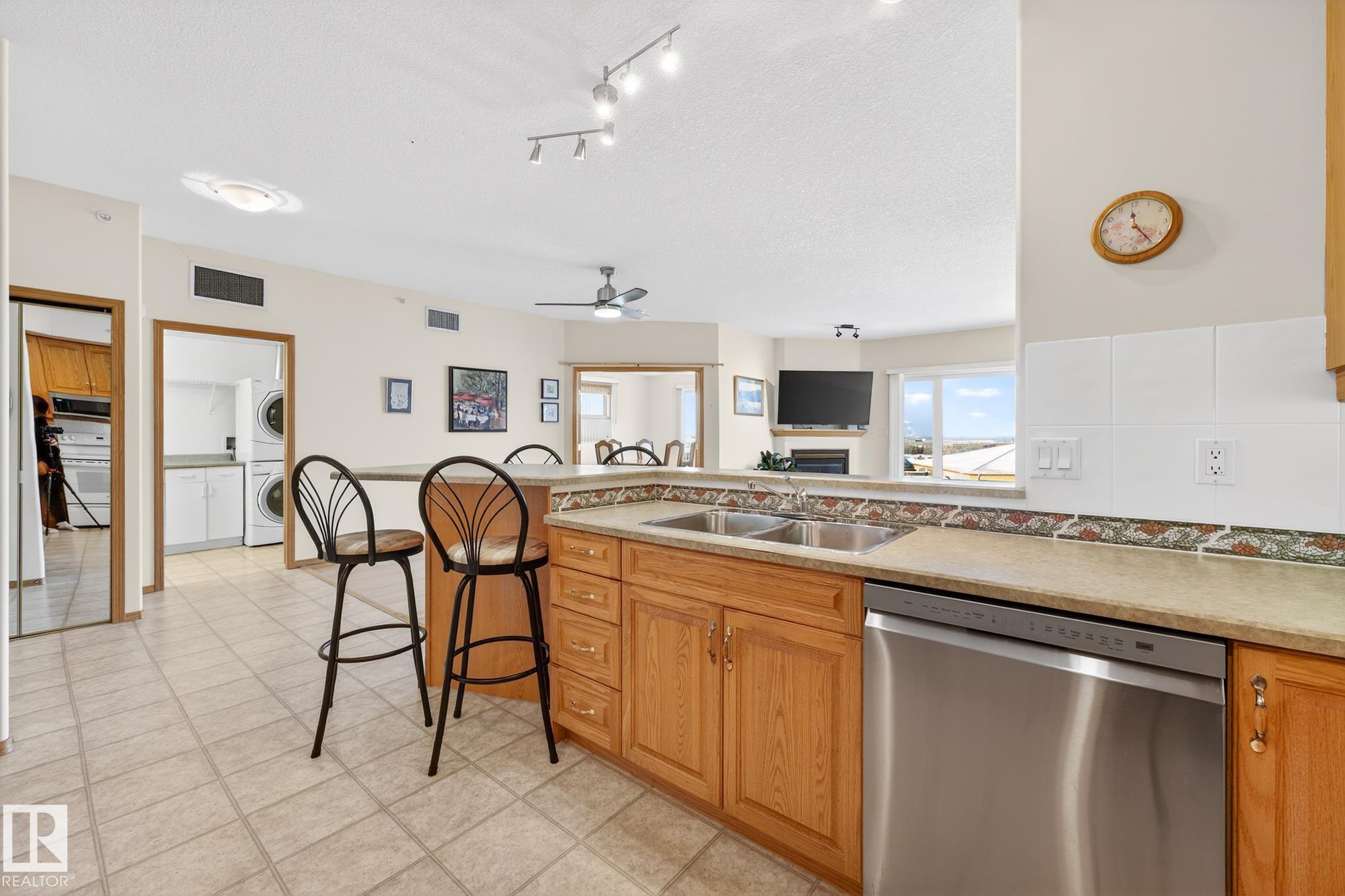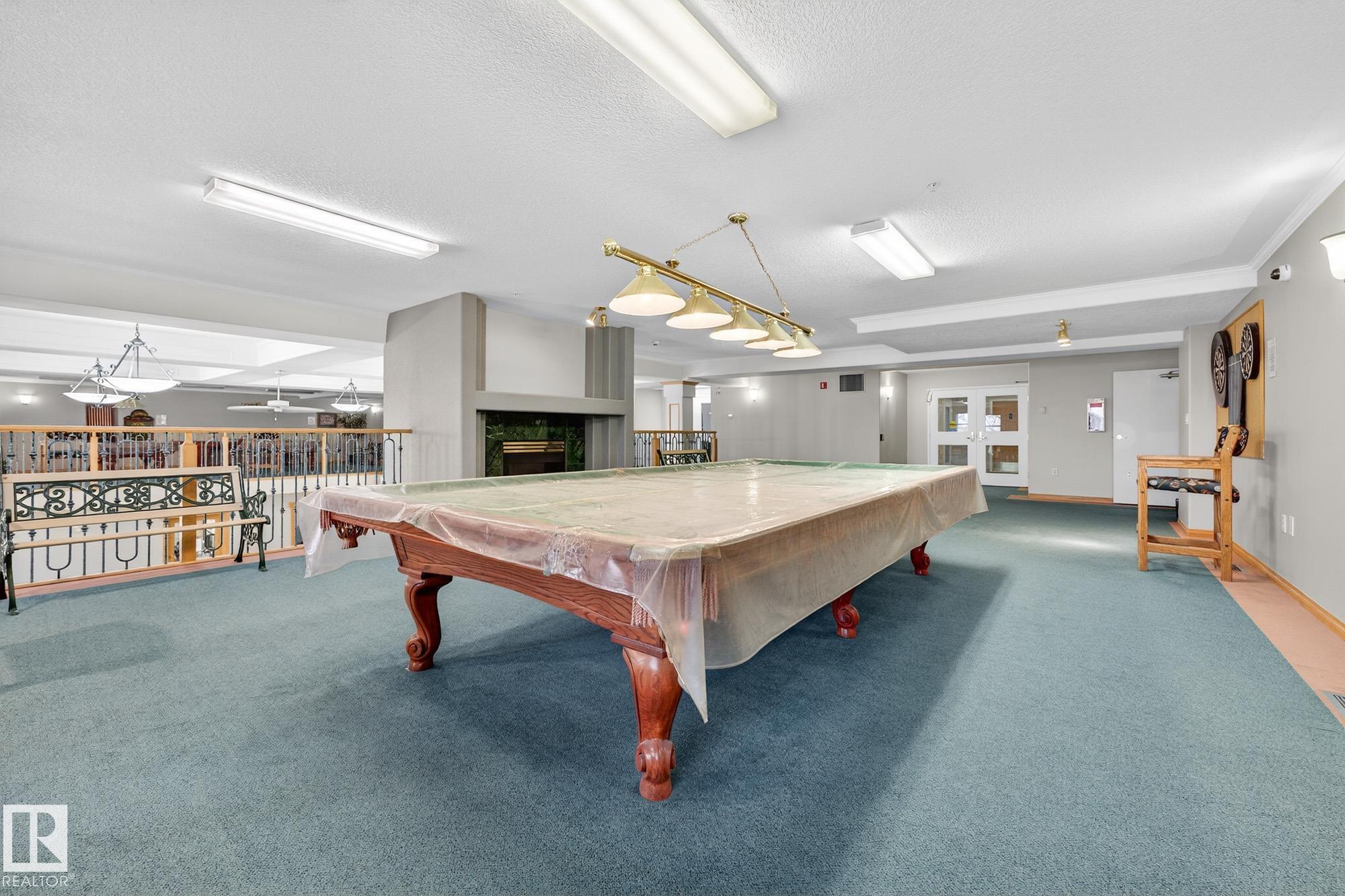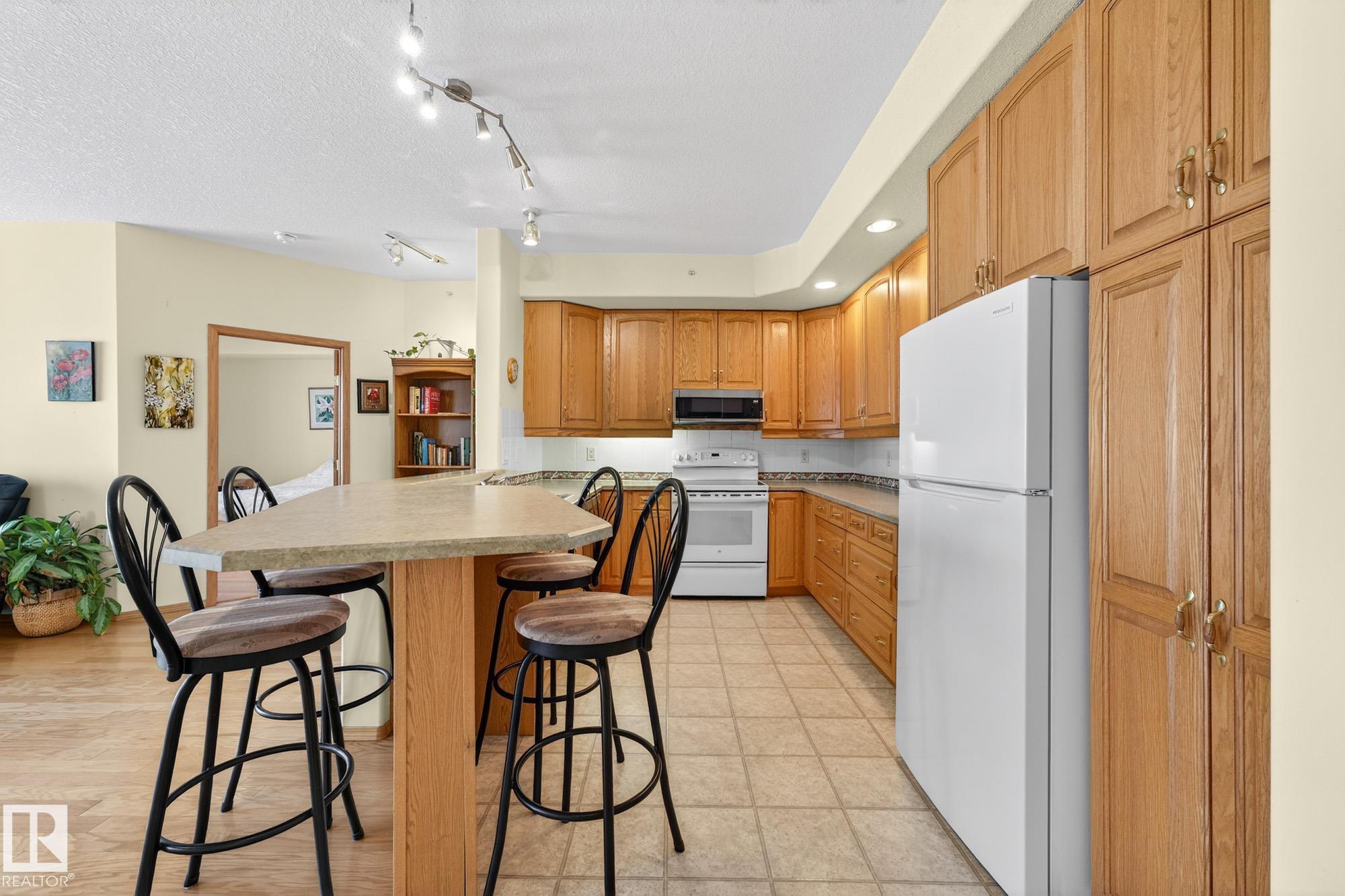TOP FLOOR. END UNIT. 2 Bed + 2 Bath. This beautifully maintained home shows 10/10 and offers true maintenance-free living in one of the most desirable 55+ buildings around. With new 72" tall glass railings, 9? ceilings, hardwood and ceramic tile (no carpet), AC, and huge windows bringing in natural light, this is the quiet, elevated lifestyle you?ve been waiting for. The open kitchen features a newer microwave & dishwasher and the bright living area leads to a covered balcony with gas BBQ hookup. Bedrooms sit on opposite sides for privacy, including a generous primary with ensuite. Large well designed laundry room plus enjoy exceptional amenities: indoor pool//hot tub, gym, 2 games rooms, media room, craft & sewing rooms, woodworking shop, library, party room, and guest suites on every floor. A heated underground parkade offers a private enclosed storage room and car wash bay The perfect blend of comfort, community, and carefree living.