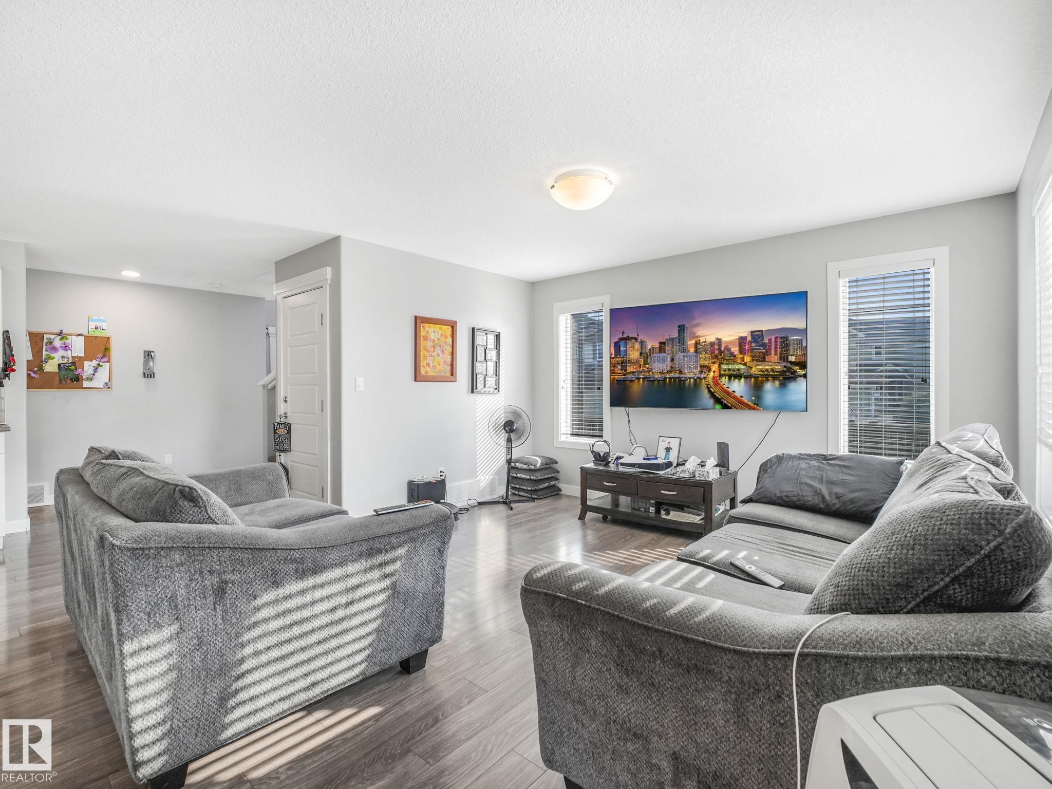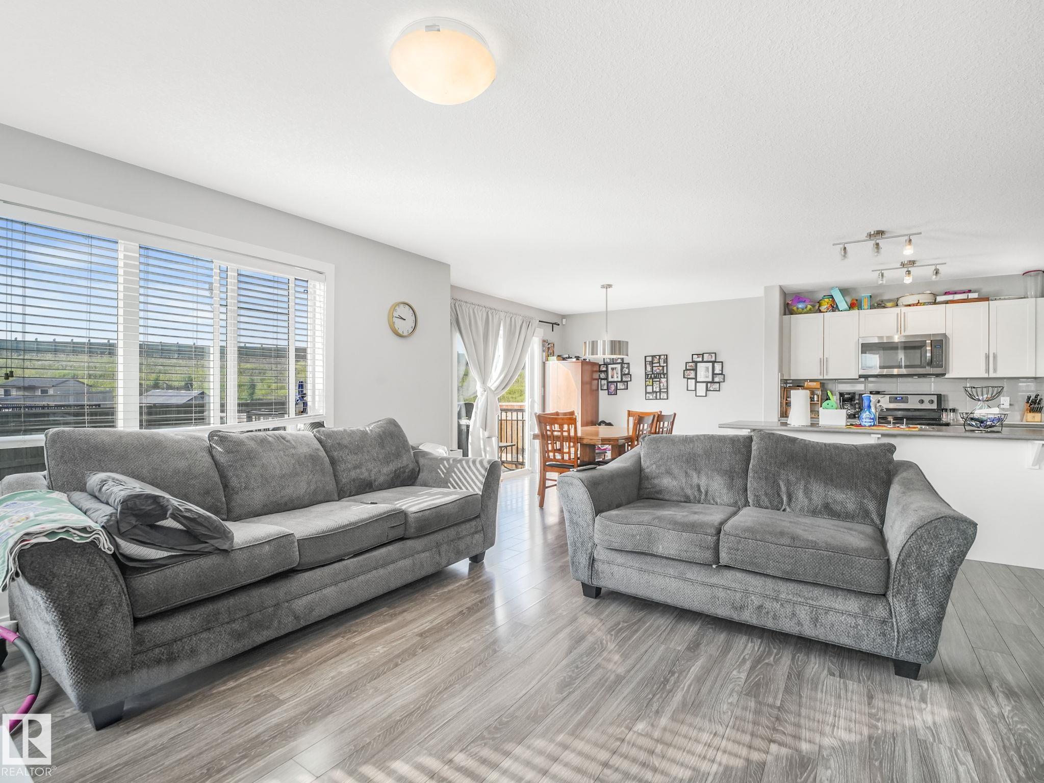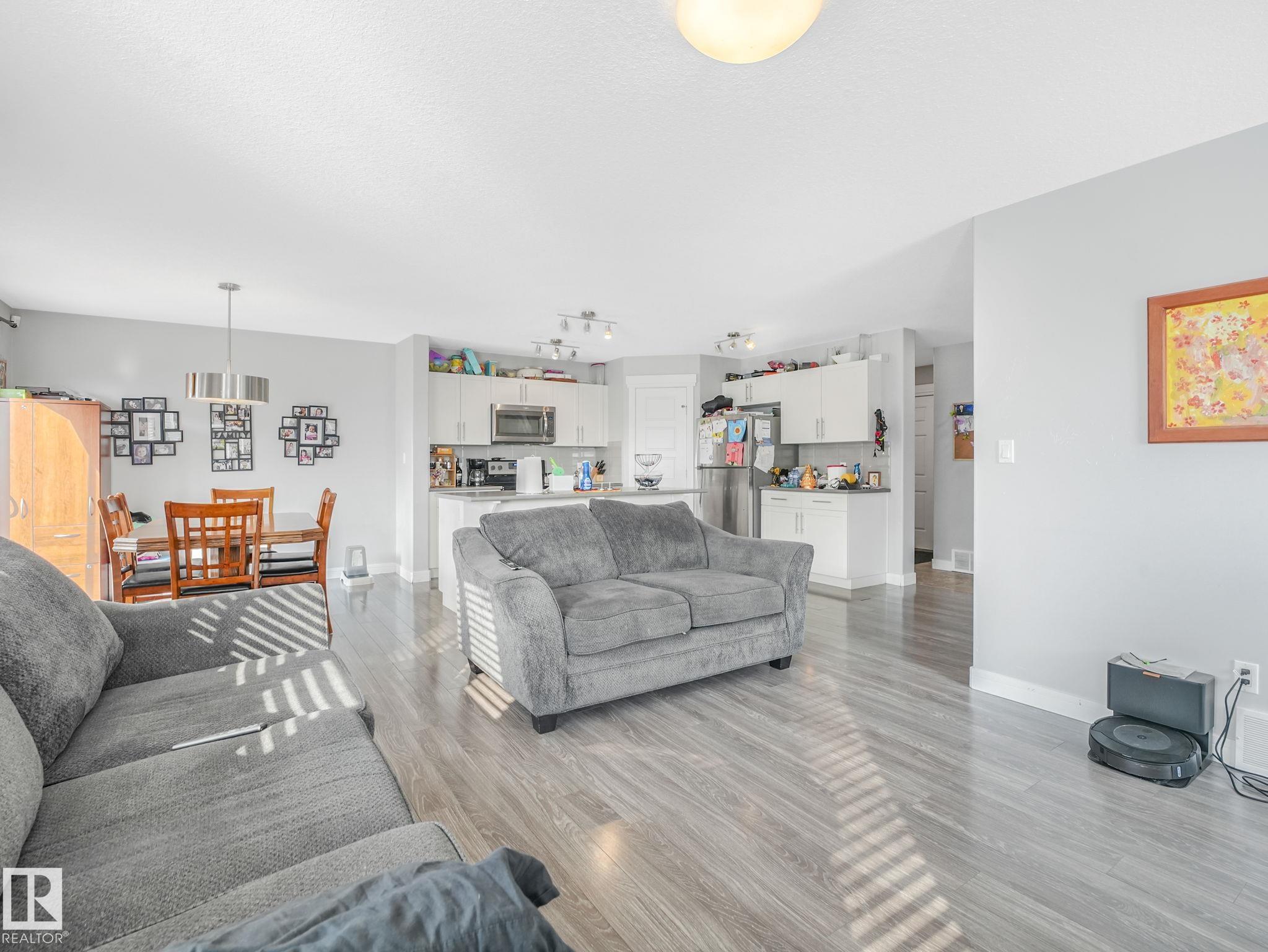 Looking for the perfect property w a built-in mortgage helper suite? This spacious 2-storey on a corner PIE SHAPED LOT offers 1,644 sq ft above ground, a LEGAL bsmnt suite + DOUBLE att garage! Flooded w natural light throughout, this home offers an open concept main floor featuring a soaring foyer, walk through coat closet (connecting the foyer to garage/bath area) & a trendy white kitchen w breakfast bar island & spacious pantry (perfect for Costco hauls!). The roomy dining area is ideal for family dinners or game nights & offers access to the deck/fenced yard via large patio doors. The cozy living room is ideal for movie marathons or cheering on the Oilers! Upstairs you can relax in your huge primary suite featuring a WIC & 5 pc spa bath w soaker tub & sep shower! The legal bsmnt suite has PRIVATE SIDE ENTRY, sep laundry, full EI kitchen, living room, bed & bath: Perfect for extra income, extended family or a turn-key investment. All this w/in walking distance to schools, parks, shops, and restaurants.
