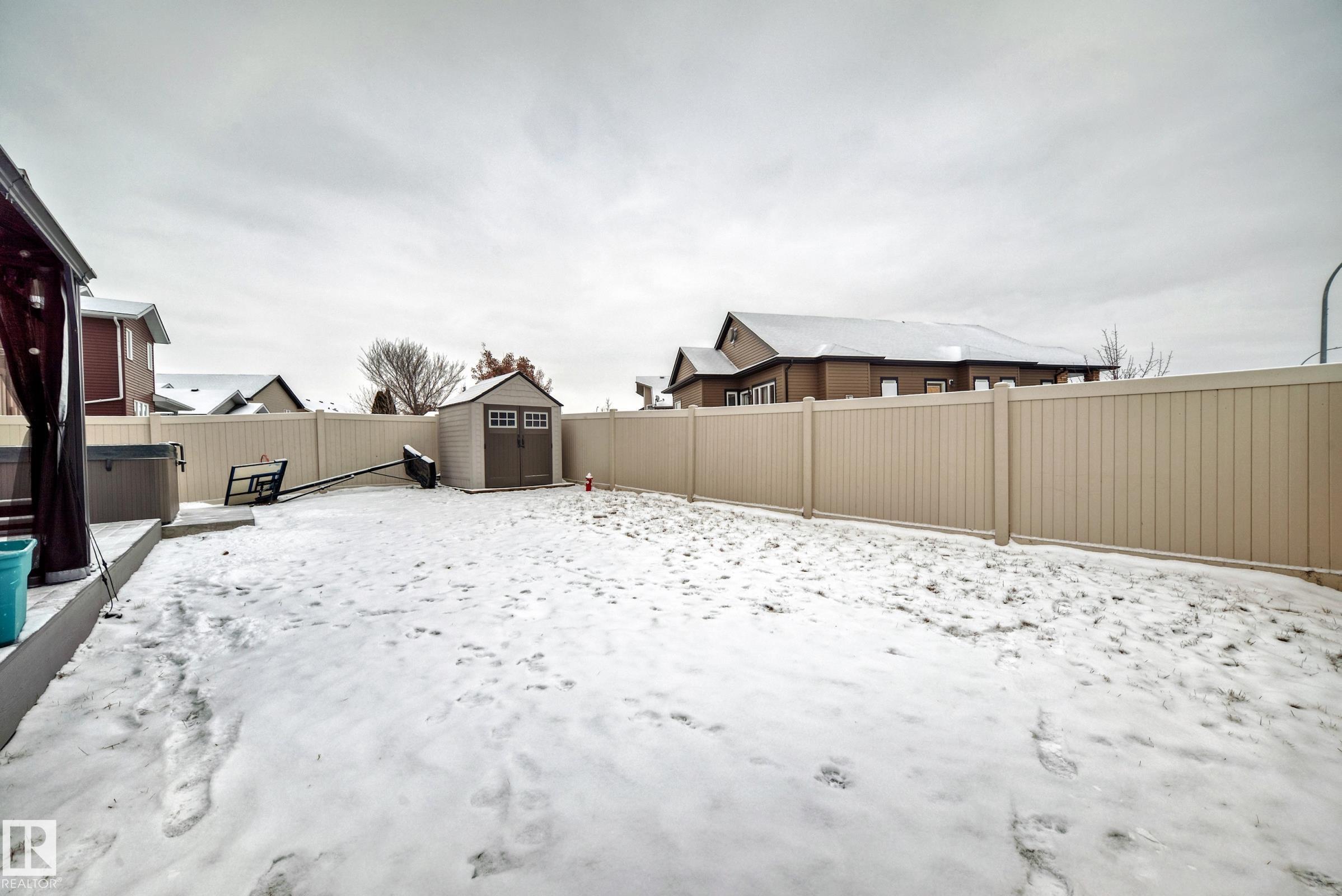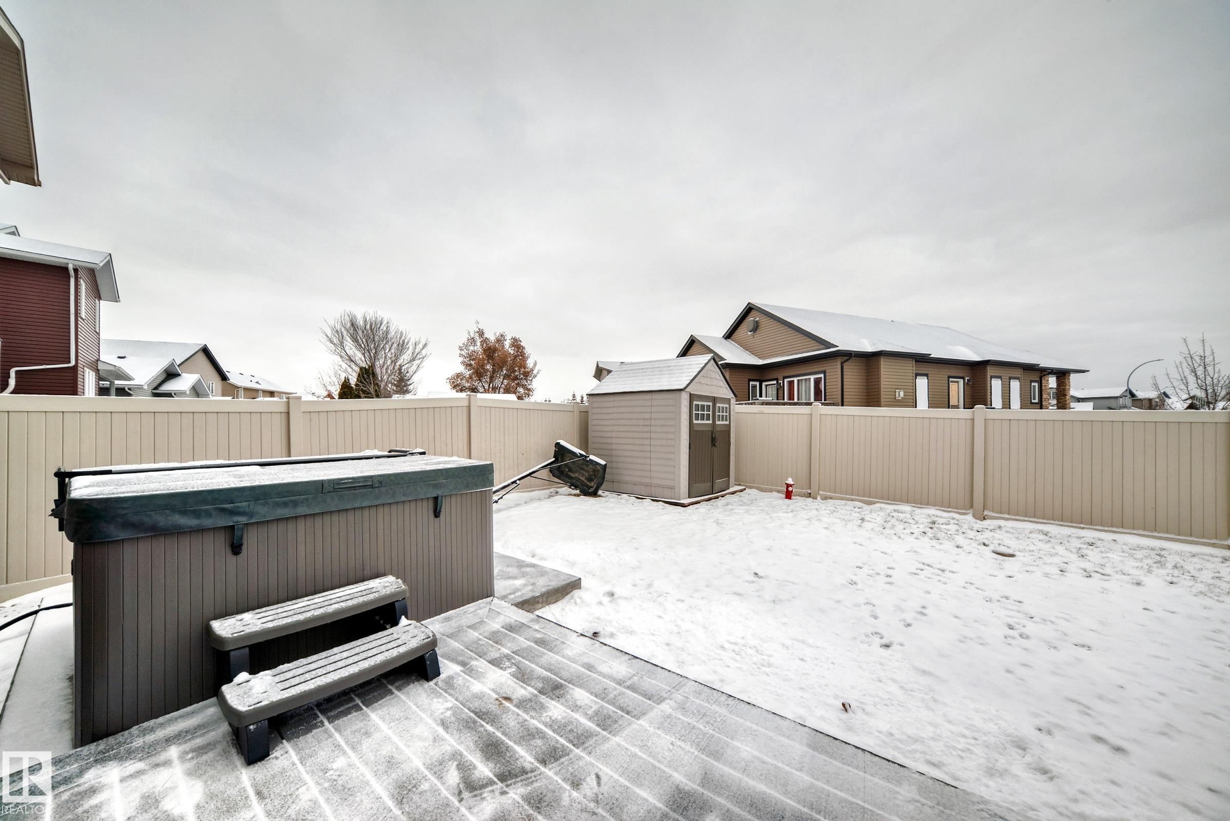 MASSIVE HEATED/INSULATED TANDEM GARAGE, CORNER LOT & FIVE BEDROOMS! Step into style and comfort in this beautifully updated home! The open kitchen flows into a cozy living room with hardwood floors and a tile-surround gas fireplace. Enjoy dark cabinetry, granite countertops, a corner pantry, & sliding doors that lead to a COMPOSITE DECK, MAINTENANCE-FREE FENCING, & a charming gazebo with a relaxing jetted hot tub--perfect for entertaining or unwinding! Fresh upgrades include NEW vinyl plank, paint, HWT, AC,refrigerator, stove, and washer. Upstairs offers three bedrooms, including a stunning primary suite with a 5-piece ensuite, separate water closet, and walk-in closet. UPSTAIRS LAUNDRY & a sizable bonus room complete this level. The fully finished basement adds two spacious bedrooms (one with a walk-in closet), a 4-piece bath, and great storage. Close to parks, schools, walking paths & more. A true move-in-ready gem!