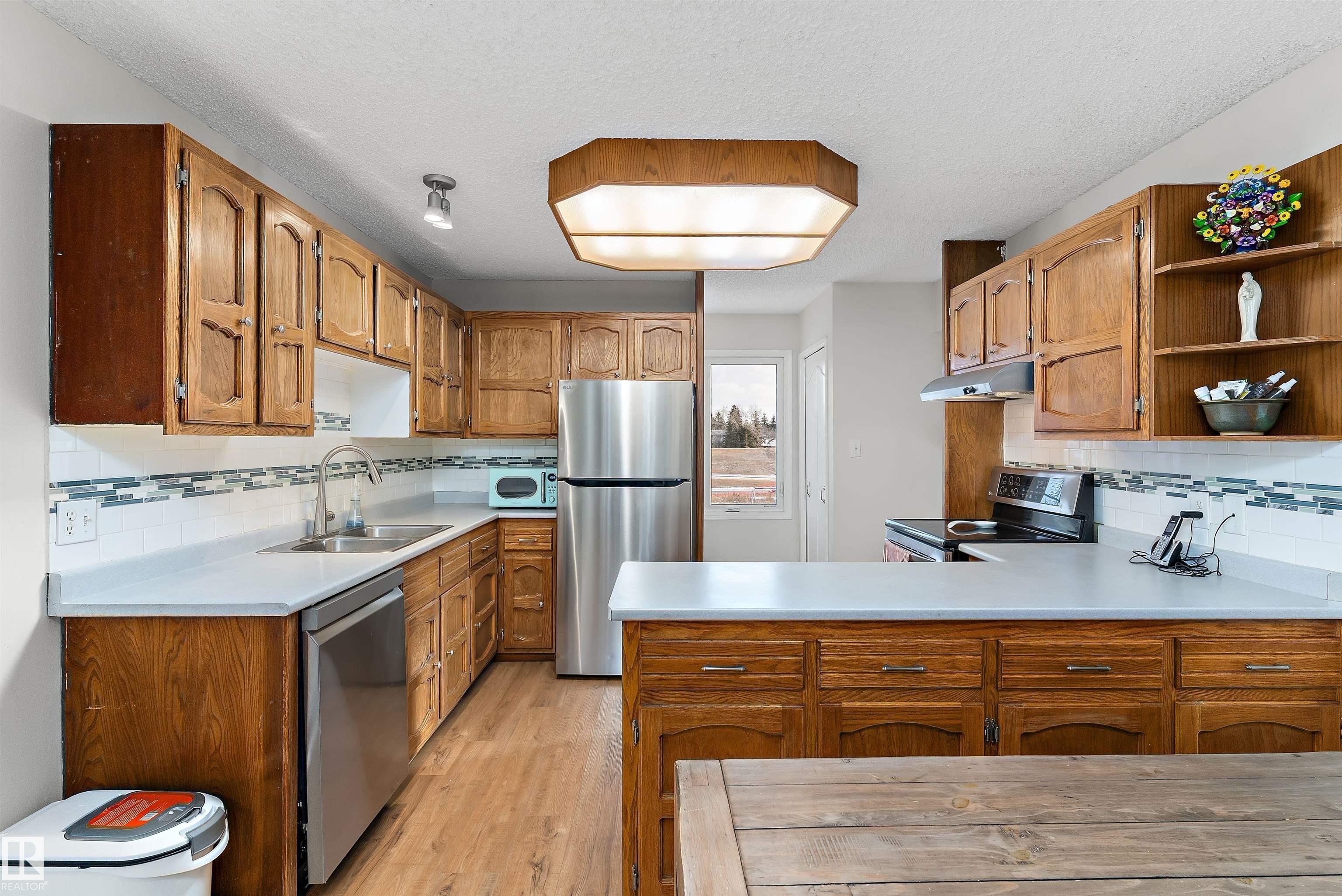 Bright, inviting, and move-in ready! This east-facing townhouse fills your mornings with sunshine and offers privacy with no neighbours directly across. Imagine cozy mornings by the wood-burning fireplace, coffee in hand, or relaxing evenings with loved ones as the fire crackles and pops. Featuring 3 bedrooms, 1.5 baths, a double attached garage, and a partially finished lower level for storage or hobbies, this townhouse is practical and comfortable. New LVP flooring in the kitchen and dining, fresh carpet on the stairs, a new dishwasher (Nov 2025), and triple-pane windows (2019) give a refreshed feel. The complex is well managed, offering peace of mind. Set in the mature, peaceful Ramsay Heights neighbourhood, you?re steps from river-valley trails, parks, and tree-lined streets, with excellent schools, shopping, and major routes nearby. Perfect for first-time buyers, down-sizers, or investors, this home blends comfort, privacy, and convenience, with flexibility for future growth or income potential.