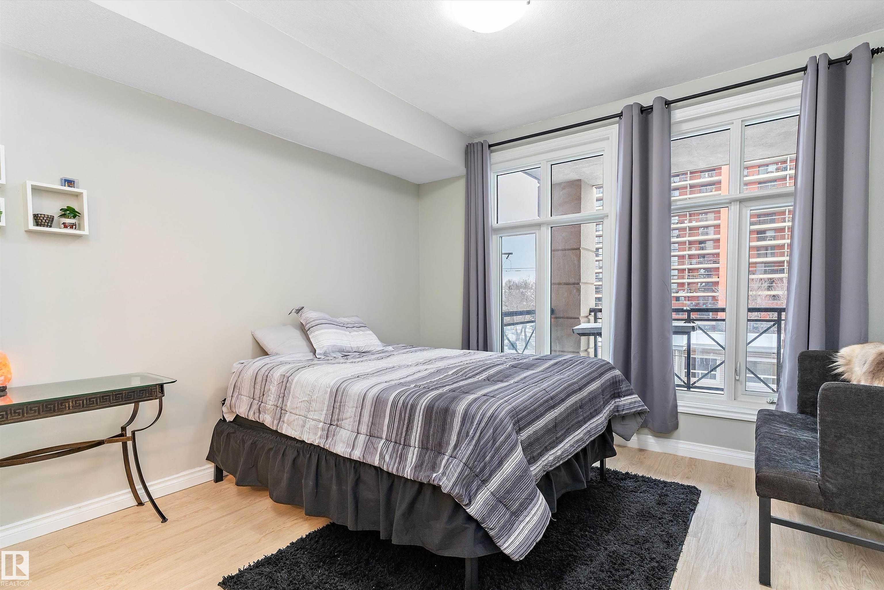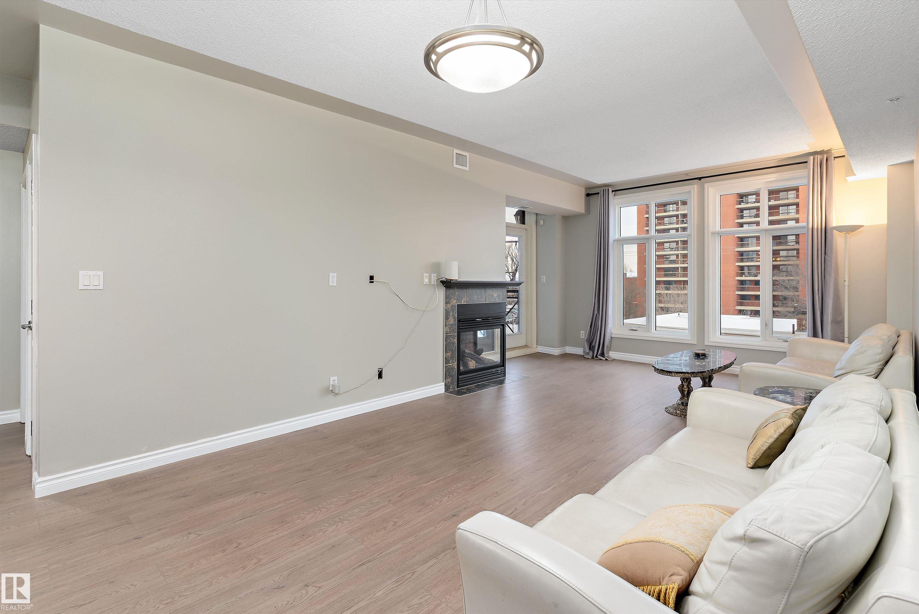 Luxurious Gated 4th Floor Condo! All utilities included?heat, water, electricity?plus heated UNDERGROUND parking! Fully upgraded, CONCRETE building with NEW heating & cooling systems and triple-pane windows. The open-concept layout features a contemporary kitchen with ceiling-height cabinets and pantry, NEW vinyl plank flooring and NEW floor to ceiling windows. The primary bedroom includes a 5-piece ensuite, while the second bedroom/den sits next to another full bath?perfect for guests or a home office. Includes in-suite laundry, ample storage and a balcony with a view! Building amenities include a fitness center, social room, and secure courtyard. Located steps from the river valley, dining, parks, and transit.