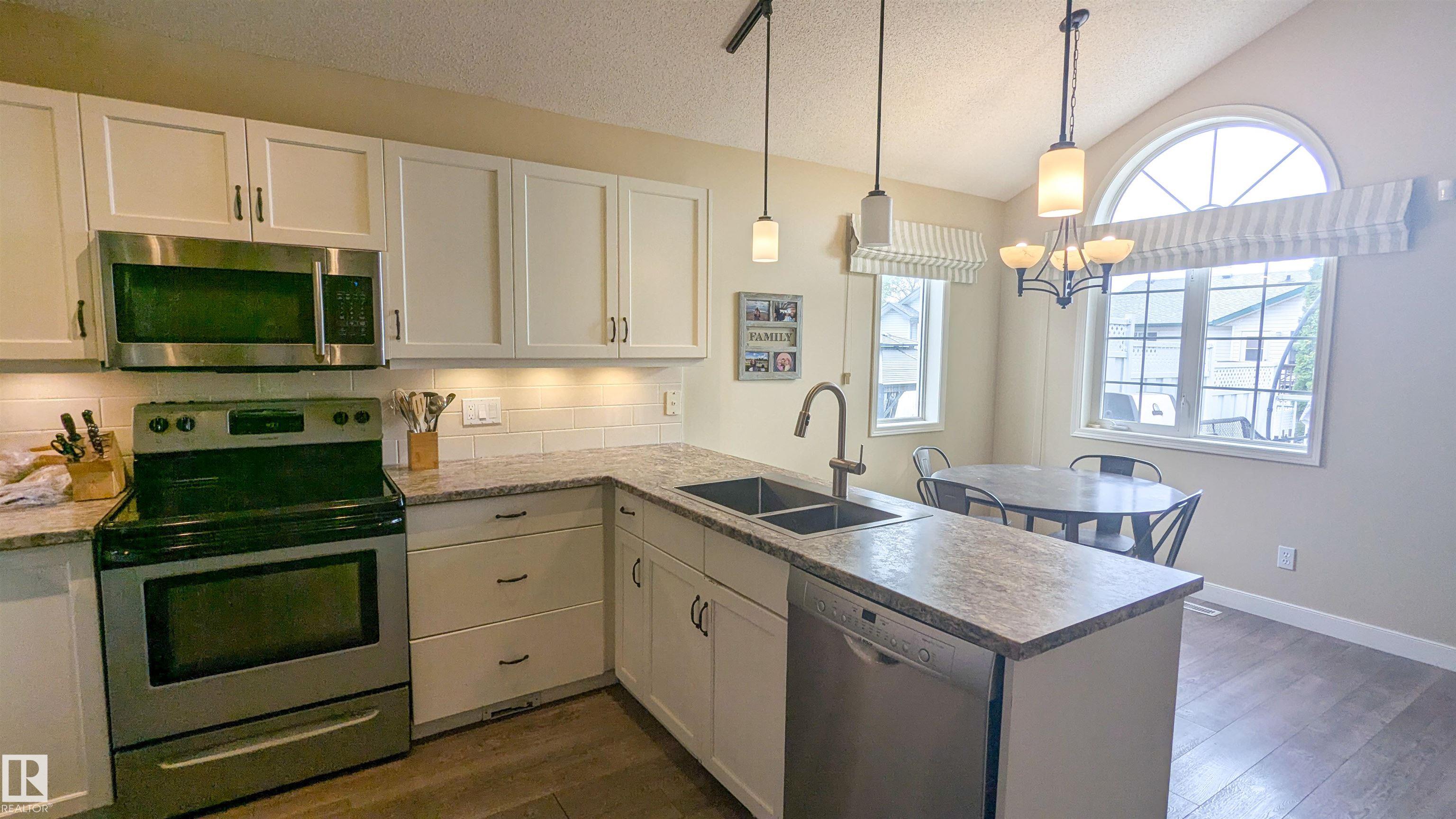 Step into this beautifully renovated and upgraded home featuring a bright, open layout with impressive vaulted ceilings. Thoughtful updates throughout include modern laminate and ceramic tile flooring, updated railings and moldings, new lighting and ceiling fans, refreshed carpet in the bedrooms, updated kitchen counters with undermount sink, central A/C, tankless hot water, newer shingles, and central vacuum. The renovated bathrooms offer a true spa-like feel with custom cabinetry, granite counters, tiled showers, stainless fixtures, and luxurious in-floor heating. On the third level, a spacious family room creates the perfect gathering space, complete with a stacked-stone fireplace, pot lights, and custom built-ins for added function and style. Enjoy summer days in the sunny south-facing backyard with a generous deck?ideal for relaxing or entertaining. Homes with this level of care and renovation don?t come up often. A must-see!
