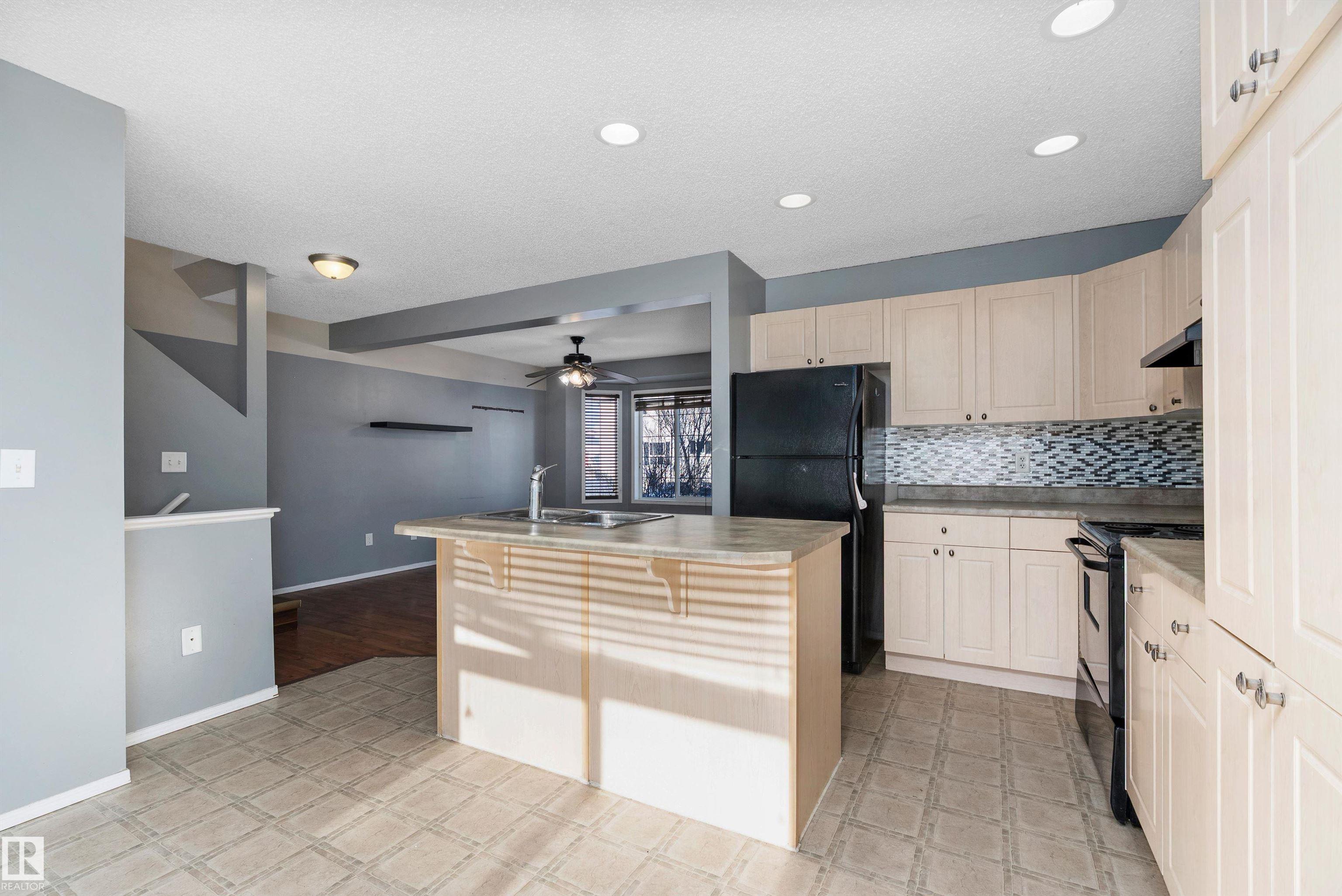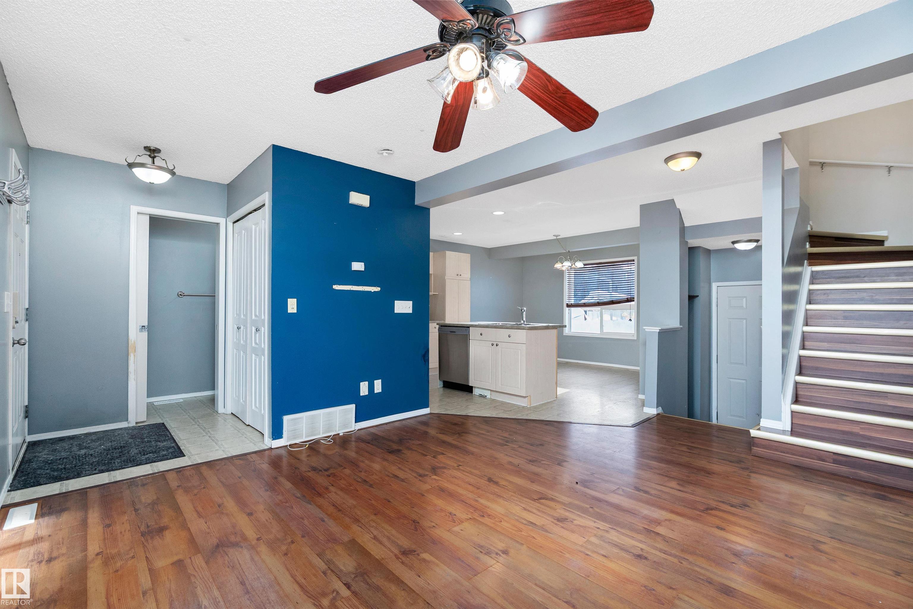 This 3-bedroom, 2-bathroom home offers a functional layout and great potential. The main floor features an open floor plan with a large kitchen offering ample counter and cupboard space, a dining nook with direct access to the backyard, and a convenient 2-piece bathroom, making this level ideal for everyday living and entertaining. The basement is finished and includes a recreation room, along with a huge utility and storage room. A rough-in for a future bathroom provides flexibility for additional development. Upstairs, you?ll find three good-sized bedrooms and a full 4-piece bathroom. This home is a great option for a first-time buyer looking to build sweat equity over time. With back-alley access and a good-sized backyard, there is room to enjoy outdoor space or future improvements. Conveniently located close to schools, walking paths, and playgrounds, this property is well suited for families or buyers looking for a home with room to grow.