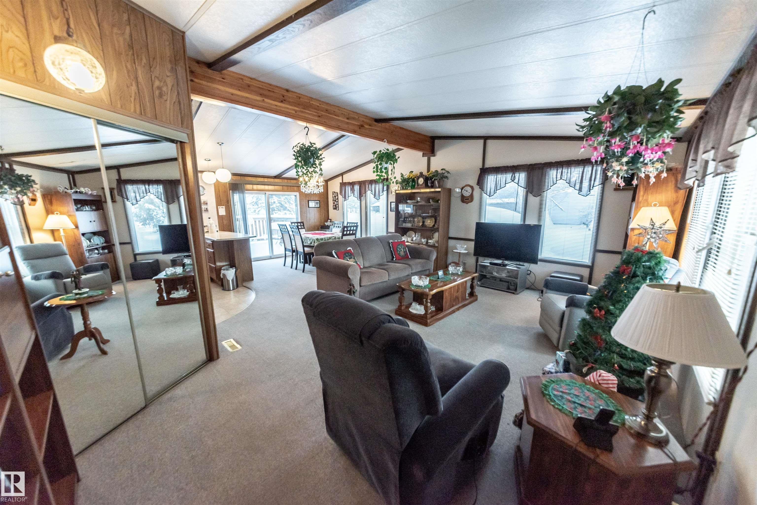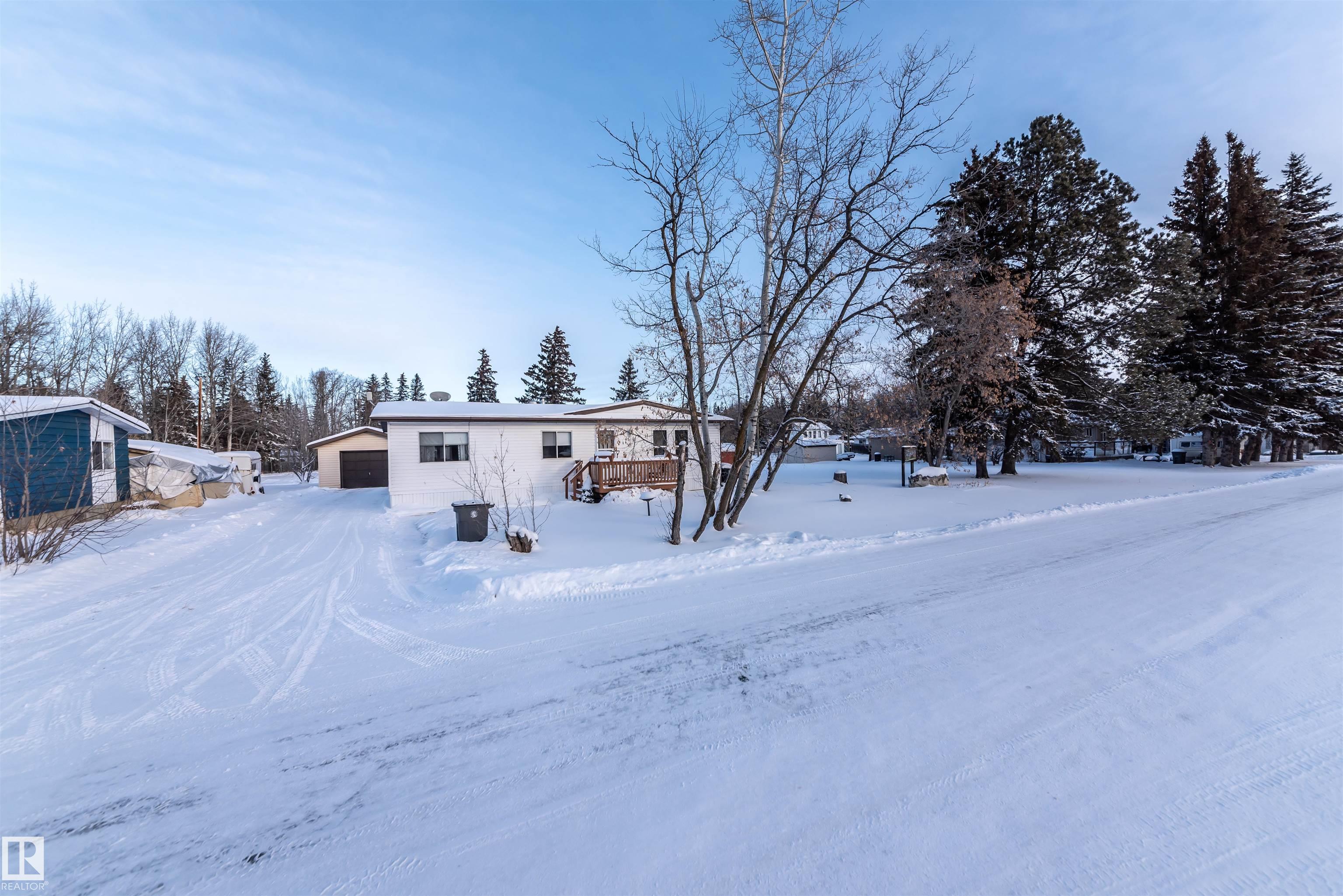 Original Owner of the modular home, loved over the years. 3 bedroom, full bath, open floor plan for the Kitchen, Dining and Living room with lots of windows for natural lighting and sliding doors to the large back deck. Fully Serviced, comes with all appliances, and a single detached garage. Upgrades over the years. Lots of parking front and back. This is close to School, Shopping, Restaurants, Mail, Golf. Located in the recreational community of Alberta Beach which is only 35 minutes NW of Edmonton. Can be purchased with vacant lot listed for sale next door