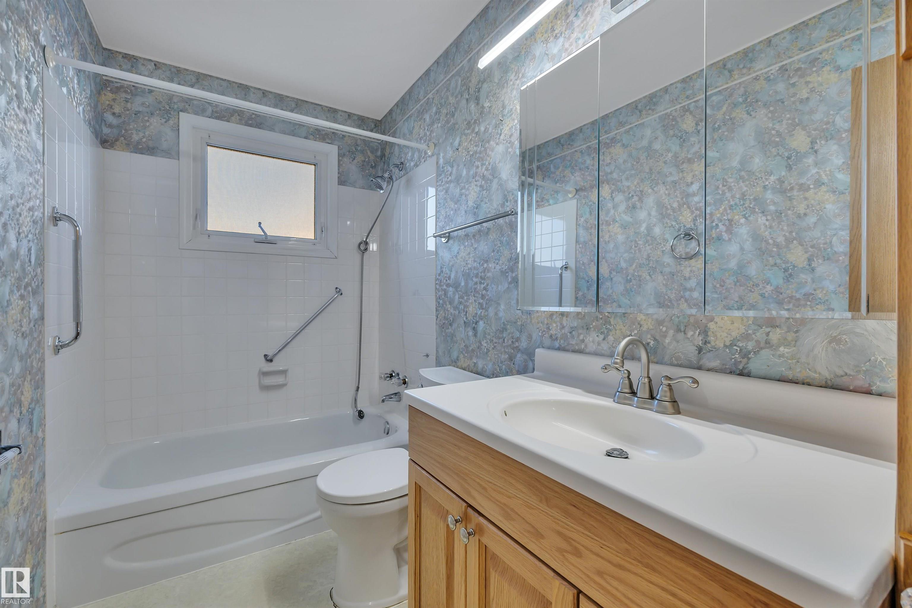 BIG BEAUTIFUL BUNGALOW. All you need to do is invest in cosmetic upgrades. ORIGINAL OWNER. This former 1400+ showhome boasts a HIGH EFFICIENT FURNACE (2022), HOT WATER TANK (2019 ), NEWER TRIPLE PANE WINDOWS within the last five years. THREE BEDROOMS UP with a potential for three more in the basement IF you add egress windows. THREE FULL BATHS including a 3-piece ensuite. Nearly 2700 SQUARE FEET OF TOTAL LIVING SPACE! SINGLE ATTACHED GARAGE with driveways on both sides of the house. Potential for a mother-in-law suite in the basement. The shingles are "newer" (no date available but likely within the last ten years). LOT SIZE IS 64' X 110' and the backyard is supersized. THE KITCHEN WAS RENOVATED IN THE MID 1990s. The house is literally just around the corner from EVERY kind of shopping/grocery outlets and restaurants. A lovely family community. ADDED BONUS: A VERY SHORT DRIVE TO THE ANTHONY HENDAY freeway. EASY ACCESS to Edmonton.