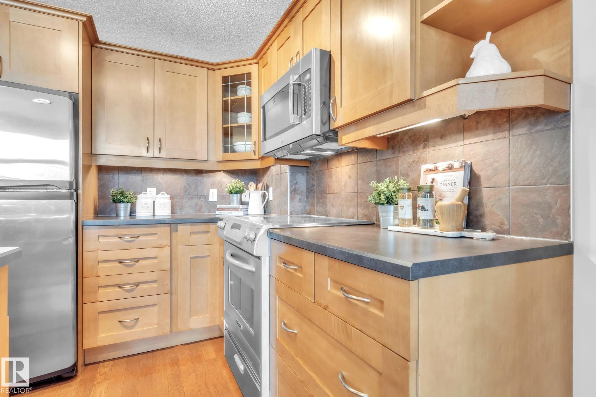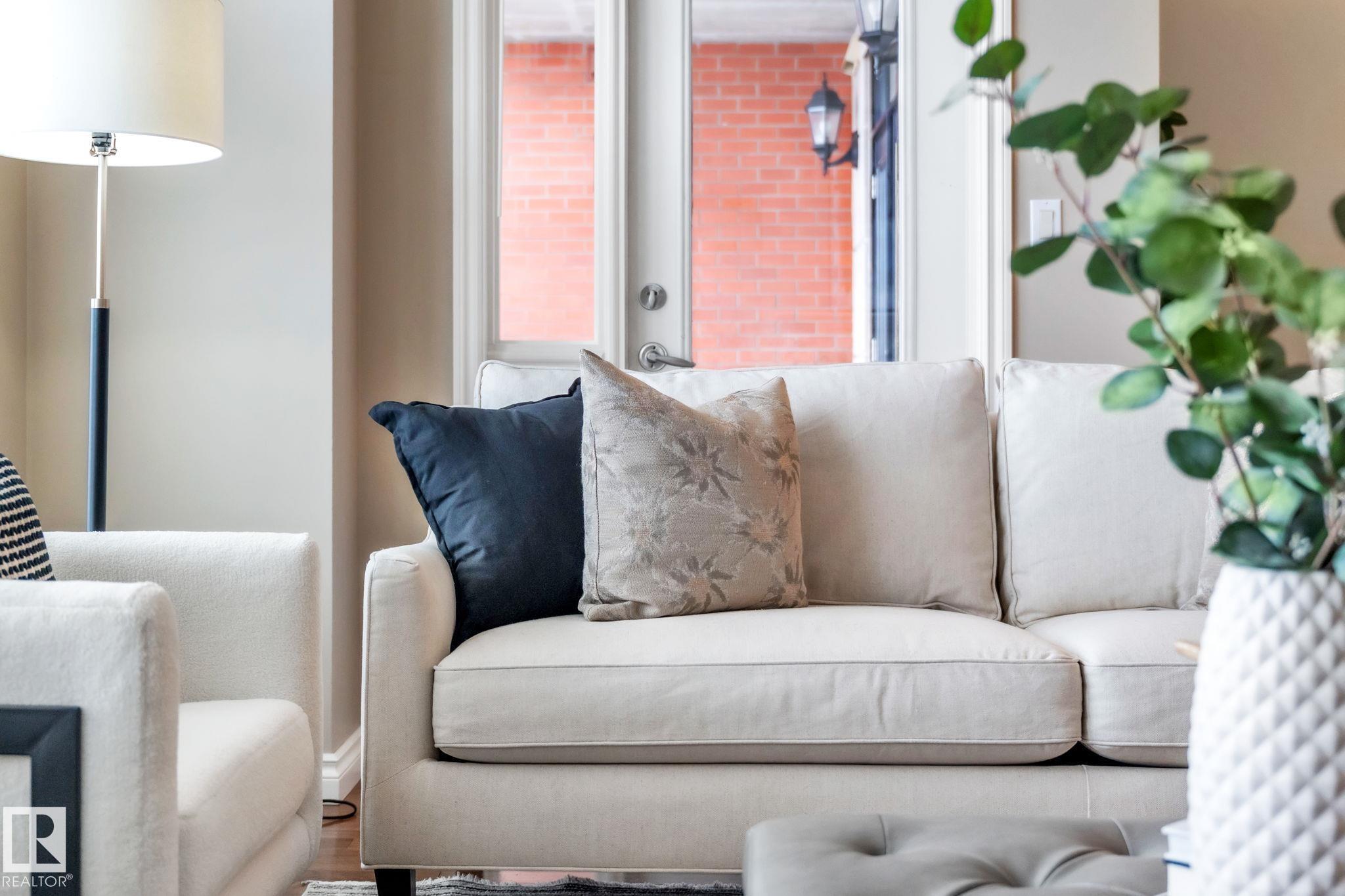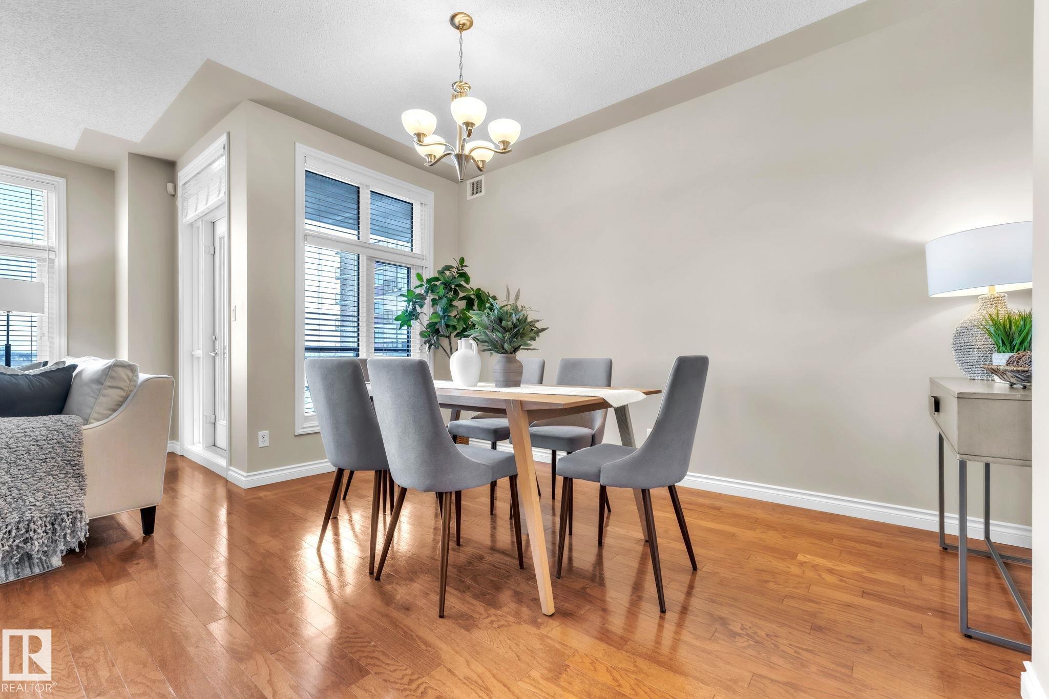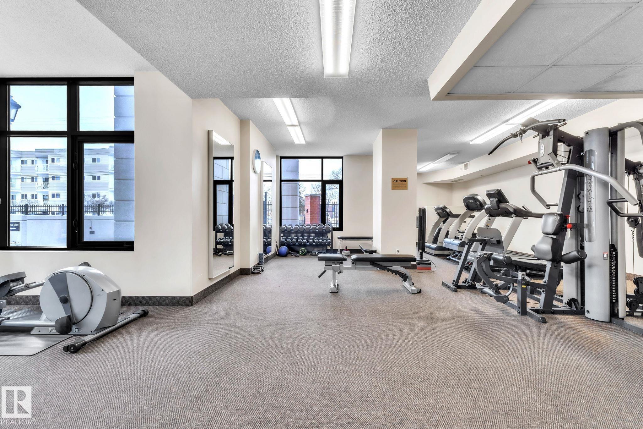 DOWNTOWN EDMONTON CONDO BOASTING SPECTACULAR RIVER VALLEY VIEWS & 2 PARKING STALLS! This 7th-floor, 1,164 sq. ft. condo features 1 bedroom + den, 2 full baths, and 2 side-by-side parking stalls (located on P2, 142 & 176), each with 2 large, lockable storage cages (252 & 253). Features include 9' ceilings, hardwood floors, NEW floor-to-ceiling energy-efficient TRIPLE PAIN WINDOWS, A/C, a gas fireplace, Hunter Douglas blinds, and a LARGE SOUTHEAST covered deck w/gas BBQ hookup that offers unrestricted views of the River Valley! Open kitchen with Maple cabinets and deluxe stainless-steel appliances. The master bedroom has patio doors, a 4-piece ensuite with a separate shower and a soaker tub, and a large walk-in closet. Double French doors lead to the den, which is ideal for an office or bedroom. Building amenities: an exercise room & a gated community. Condo Fees: heat+water+electricity. Perfect location for professionals who work Downtown, or retirees who enjoy dining, Rogers Place, and the Stadium.