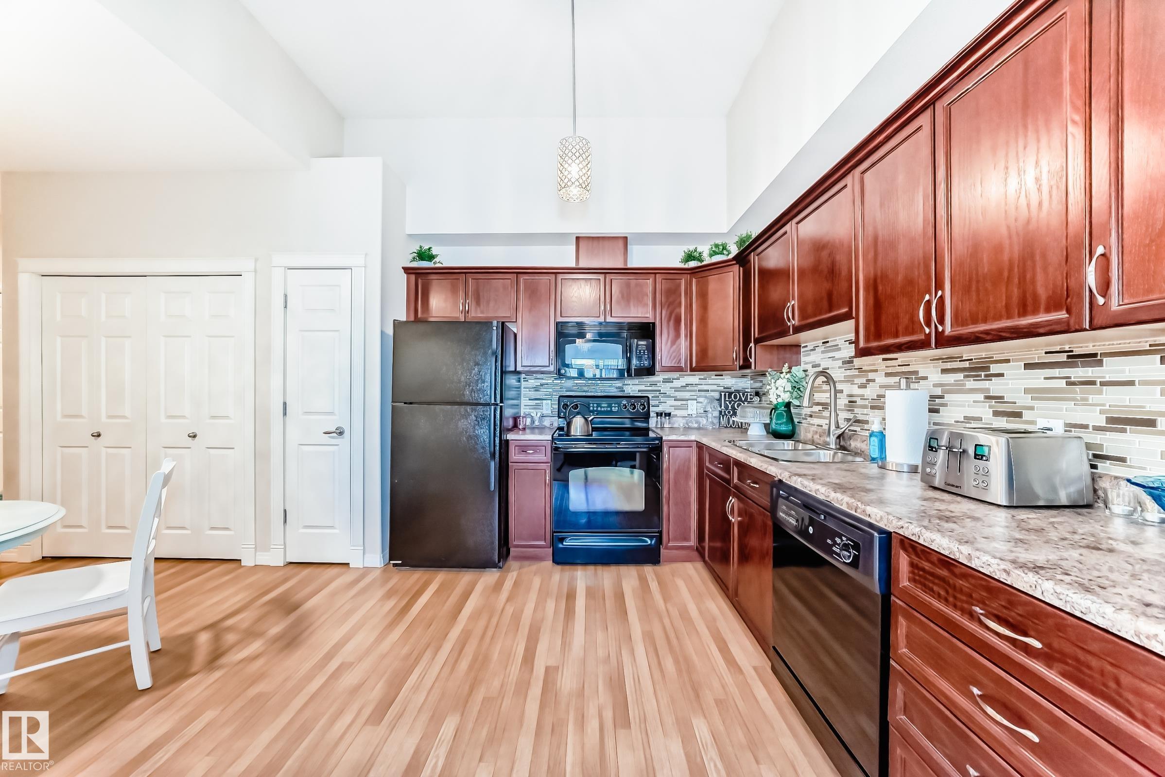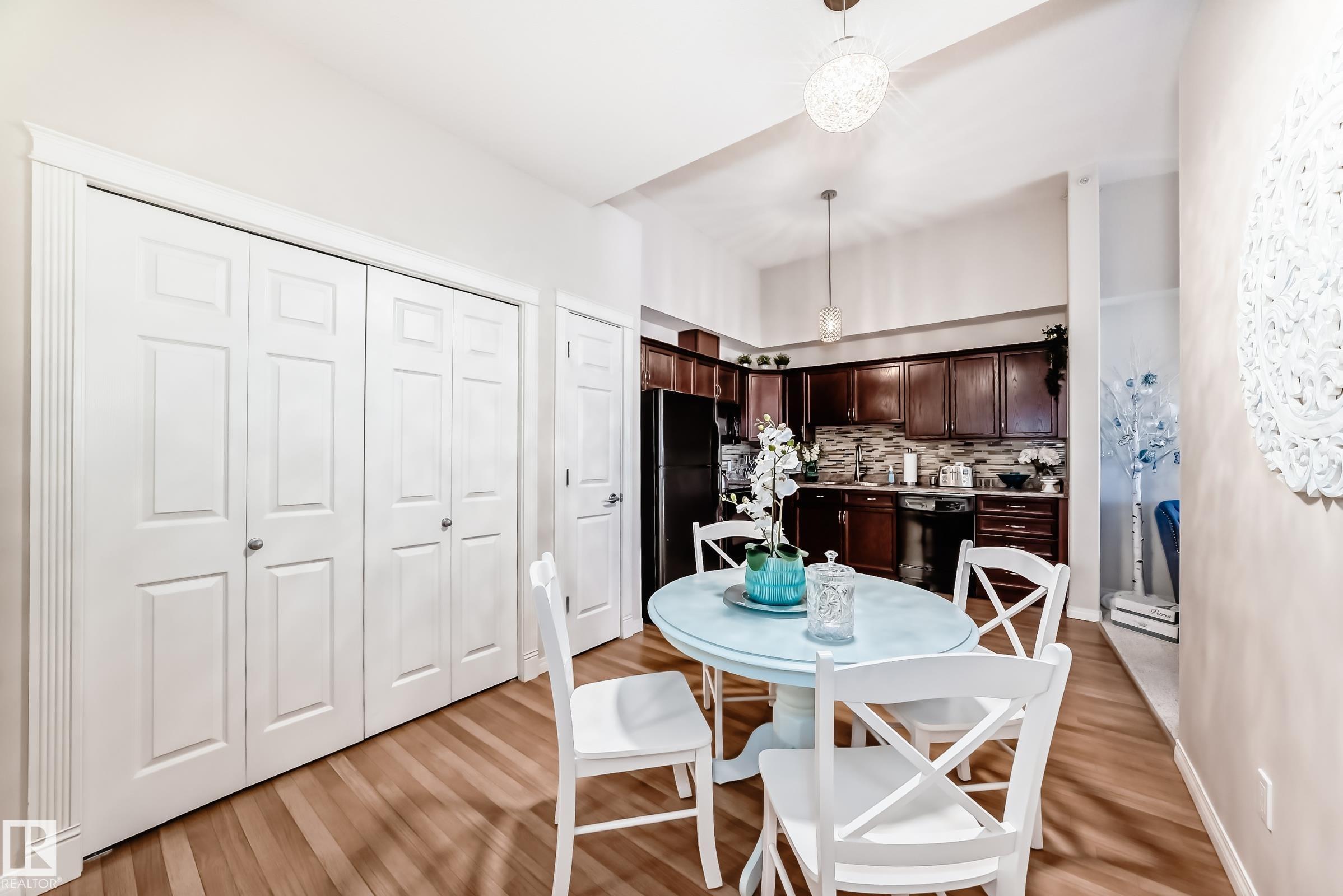 This top floor unit has 9 ft ceilings and is in a great location in the Manor at Southfort condo complex in the South Fort neighborhood in Fort Saskatchewan. This 2 bedroom condo features air conditioning, a heated titled underground parking stall #18, in-suite laundry with storage room and 2 large large bedrooms with plenty of windows and natural light. This 2008 built condo has a wonderful open kitchen and living area, dining room, This condo unit is in great condition and shows a 10 out of 10 throughout. This very well managed and secure building is great for the first time buyer or investor with privacy and comfort at a great price. The owners condo fee includes the use of all the amenities located at Southfort Bend retirement community next door, that includes Pool Table etc. This private location is a short walk to parks, Dow Centre and the hospital and close proximity to highway 21.