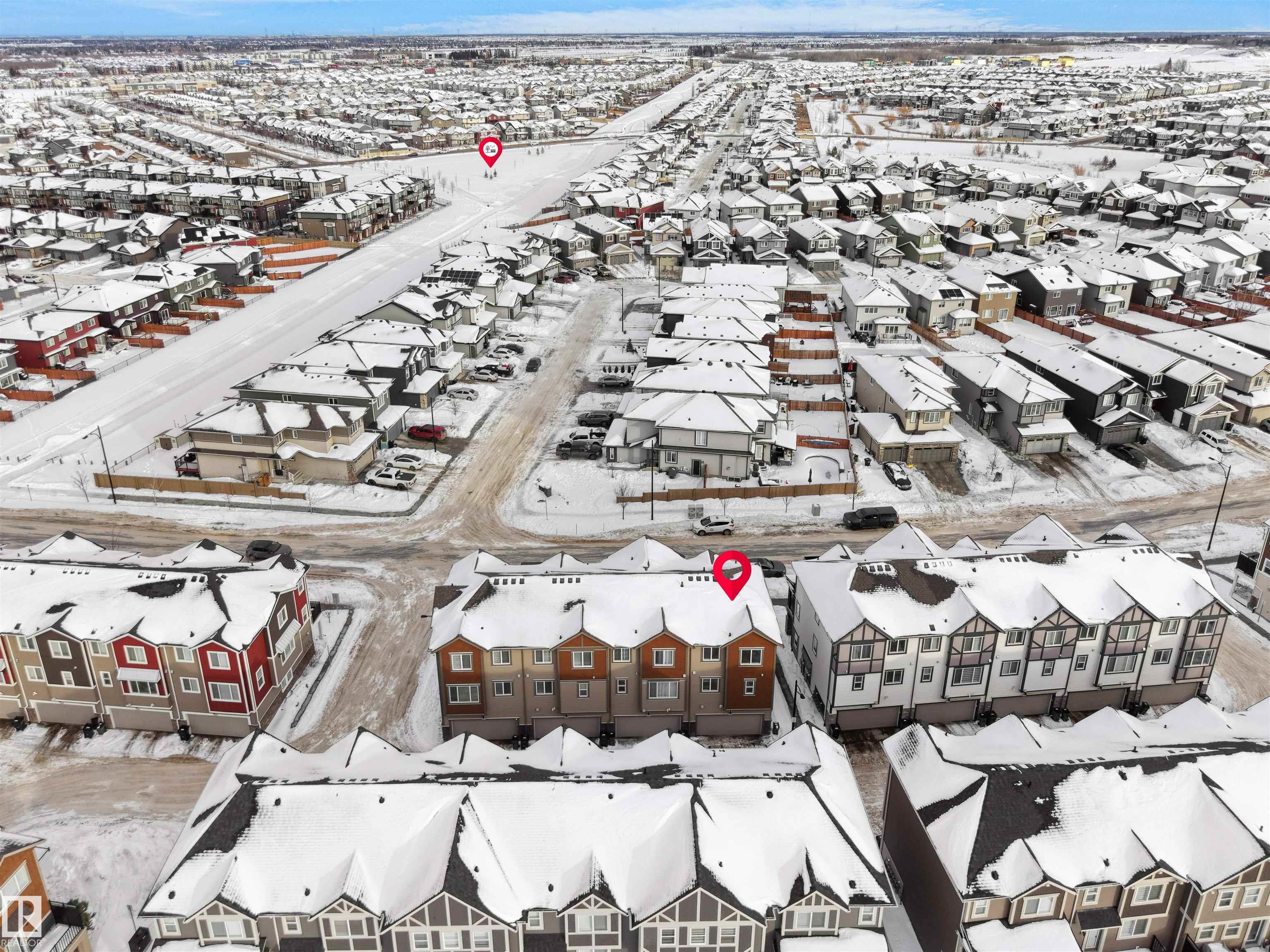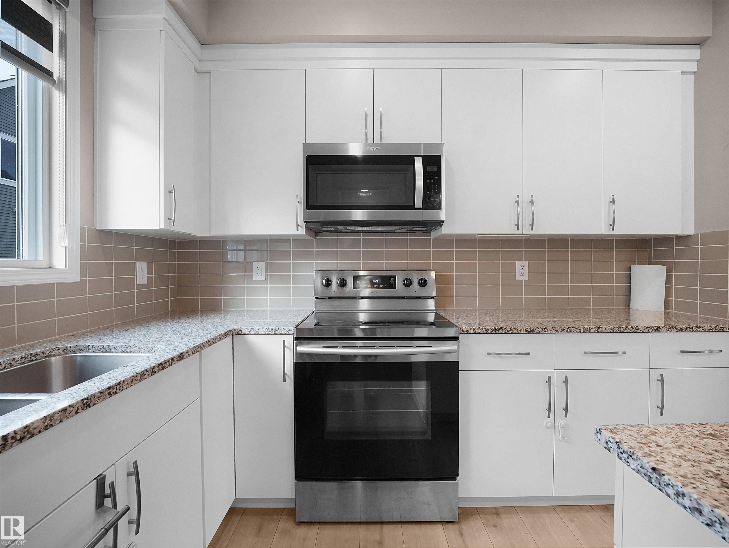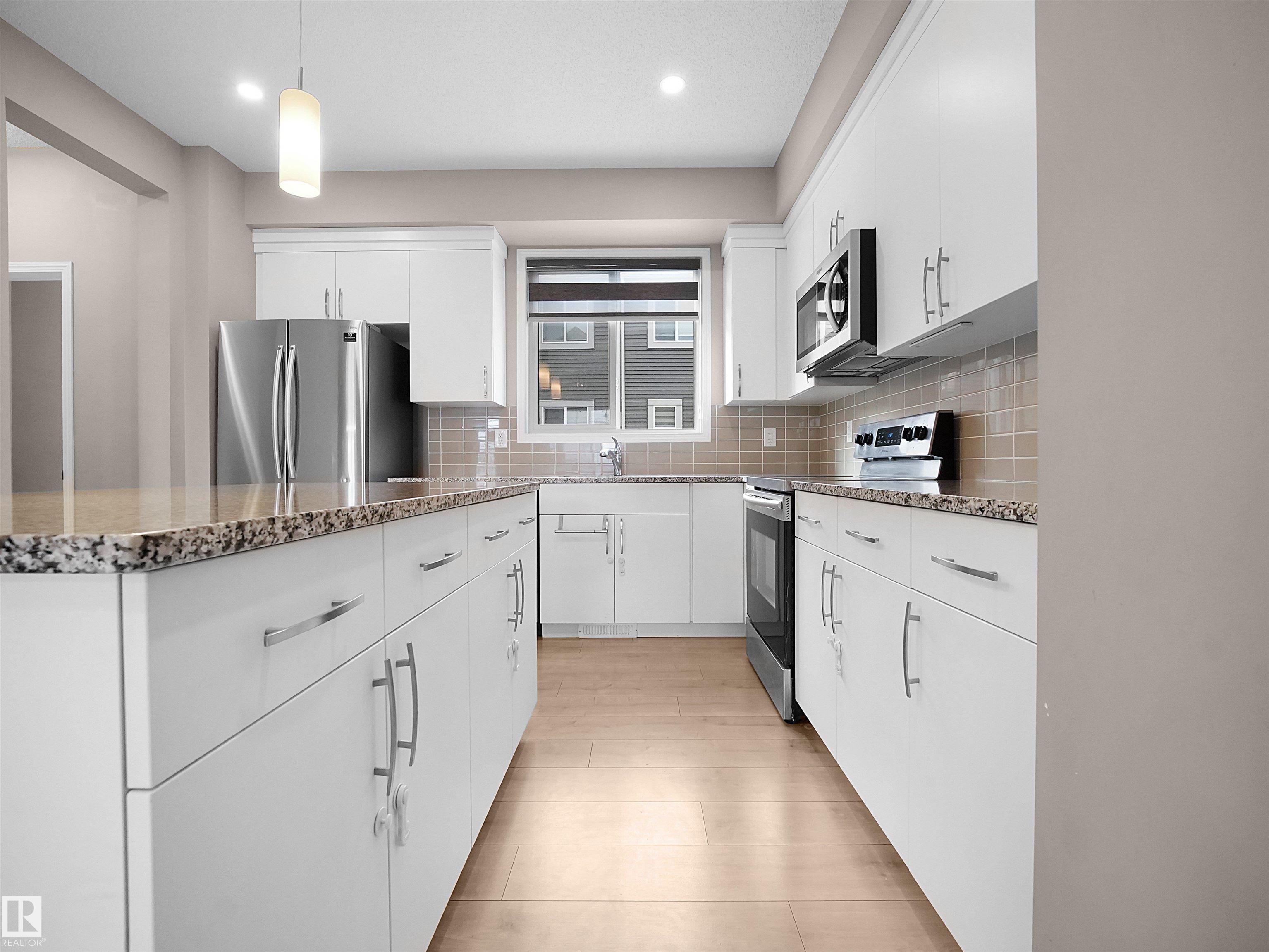 BEST VALUE IN WALKER ? PRICED TO SELL! Welcome to Mattamy?s sought-after Crescent Trails ? Harvest Model, offering exceptional value in Southeast Edmonton. This bright, modern open-concept townhouse features 1,553 sq ft of well-planned living space with stylish finishes throughout. The contemporary kitchen boasts upgraded cabinetry, a large island with eating bar, tiled backsplash, and OTR microwave?perfect for daily living and entertaining. The spacious living and dining areas are filled with natural light and enhanced by a cozy electric fireplace. Upstairs you?ll find 3 good-sized bedrooms, including a generous primary suite with walk-in closet and 4-piece ensuite. Enjoy the convenience of a double attached garage, low condo fees, a private balcony, and ample street parking for guests. Located steps from walking trails and close to schools, shopping, and major routes. Modern design, unbeatable value, and priced to sell?this one won?t last!