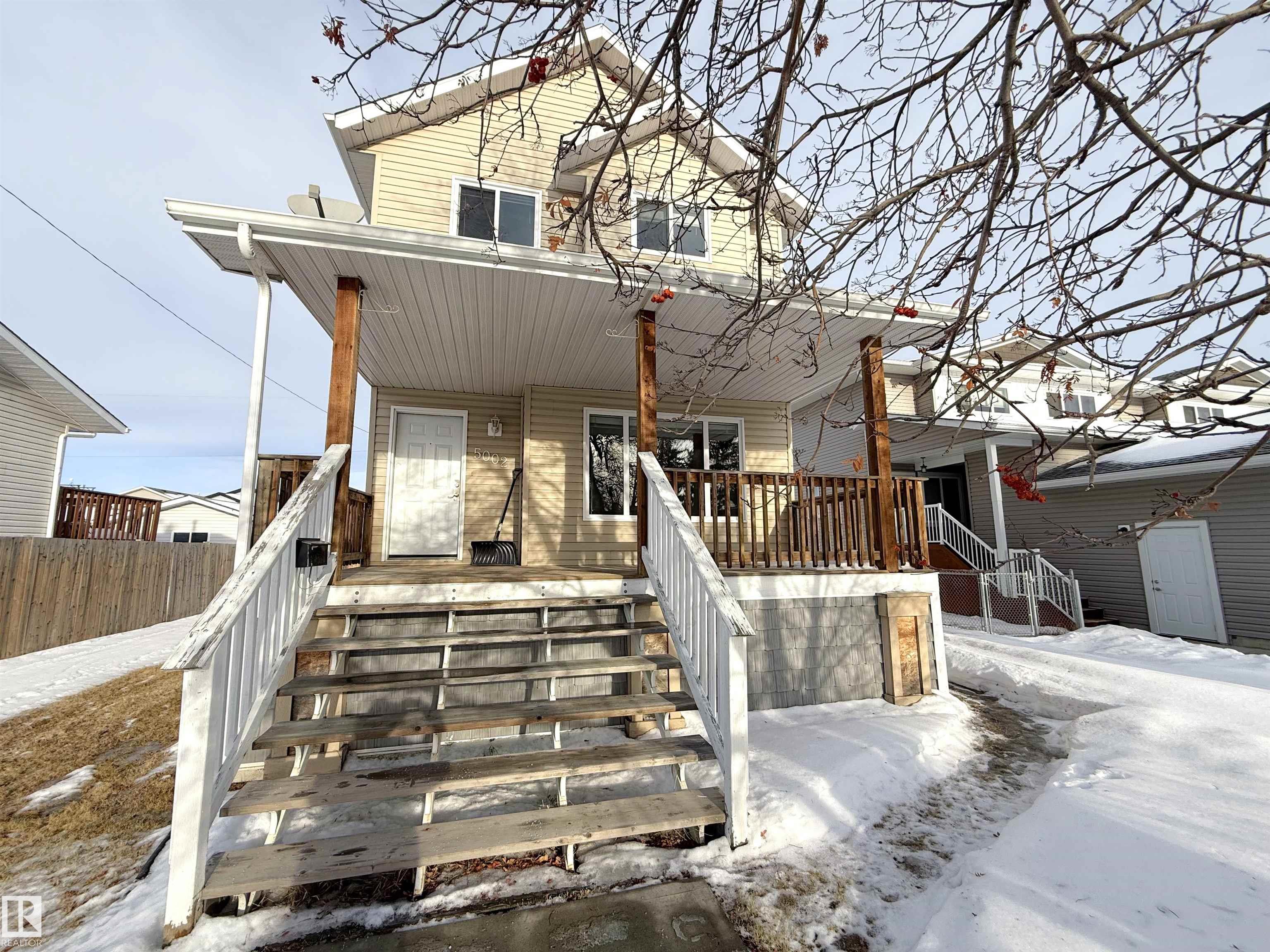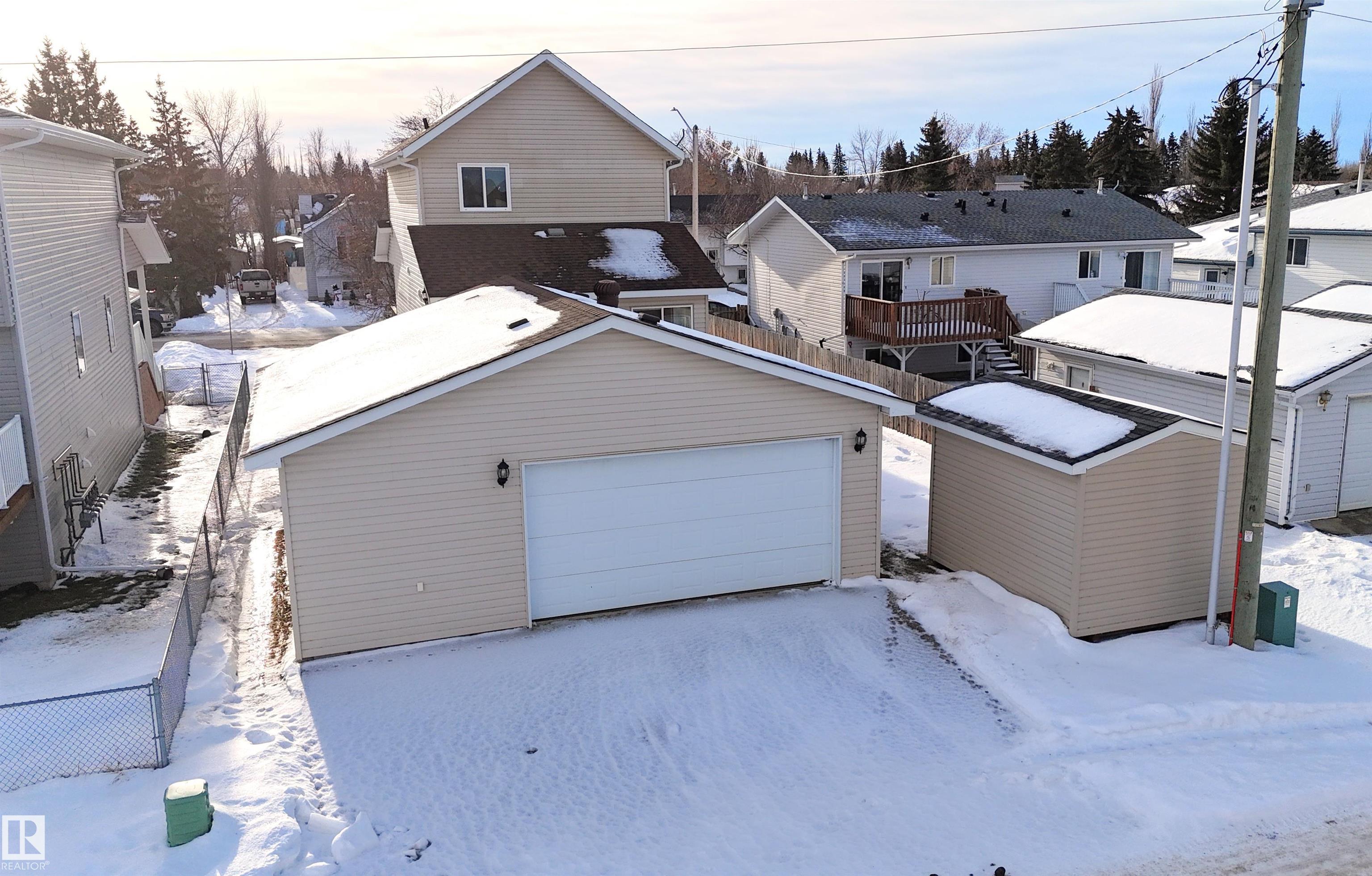 2-storey with heated detached double garage (28Wx24L, insulated, 220V & air lines) near schools, parks & amenities in the heart of Calmar. This well-maintained 1,270 sq ft (plus full basement) home features new hot water tank & furnace Insides, main floor laundry room & a great functional layout. On the main level: bright living room w/ large south facing windows, 2-pc powder room with washer & dryer, u-shaped kitchen w/ pantry, dishwasher & dining area with deck access. Upstairs: 2 full bathrooms and 3 generous-sized bedrooms including the owner?s suite w/ 4-piece ensuite. The partially finished basement is drywalled for a large family room, awaiting finishing touches. Outside: covered south-facing front porch, a very private back deck w/ insulated walls & ceiling, 10x12 storage shed on skids and space for RV parking beside the house or by garage. Located in the family-friendly town of Calmar; 15 mins to the airport, 10 mins to Leduc & 20 mins to Edmonton. Small town charm with fantastic accessibility!