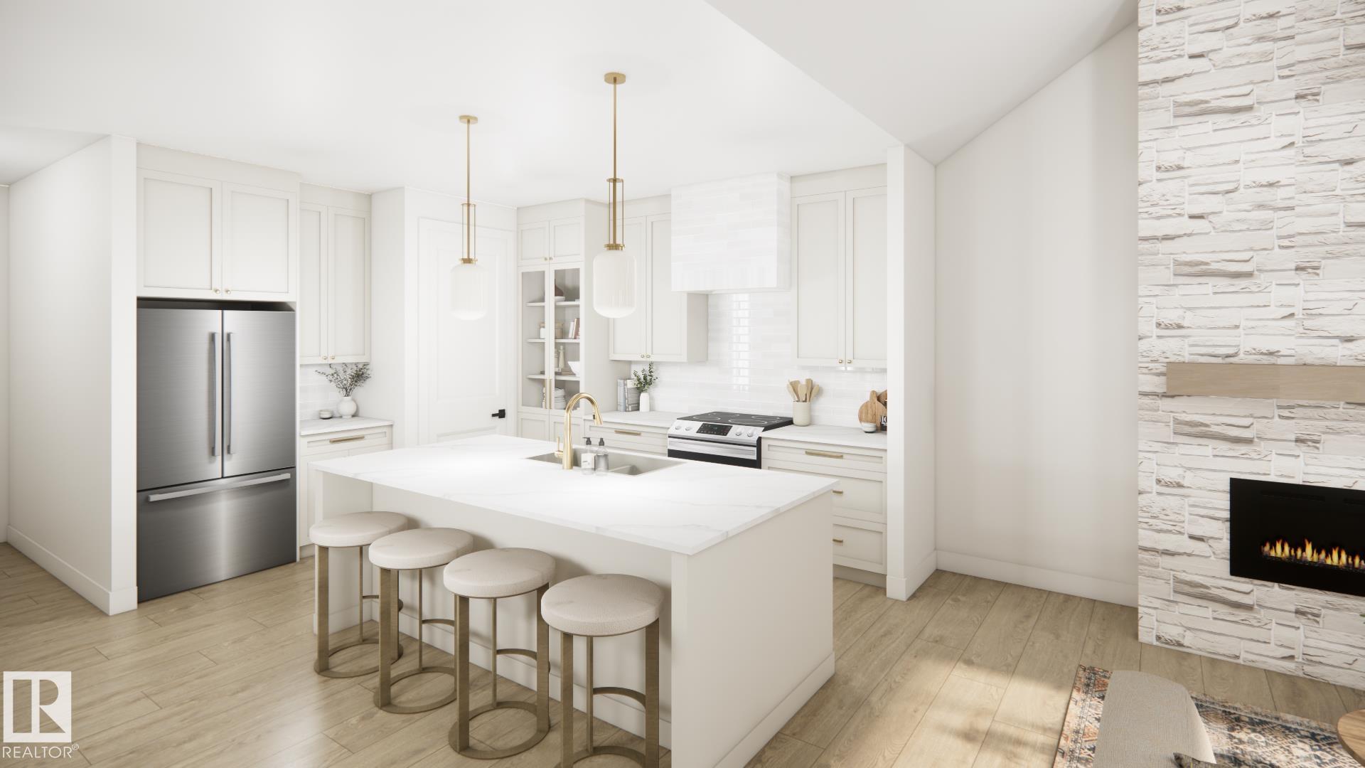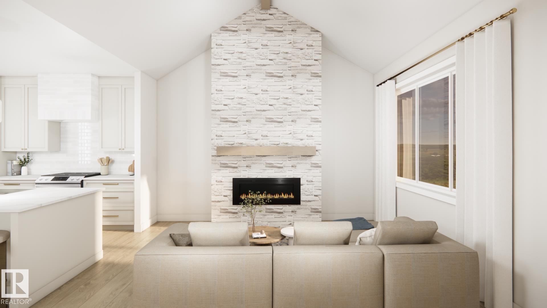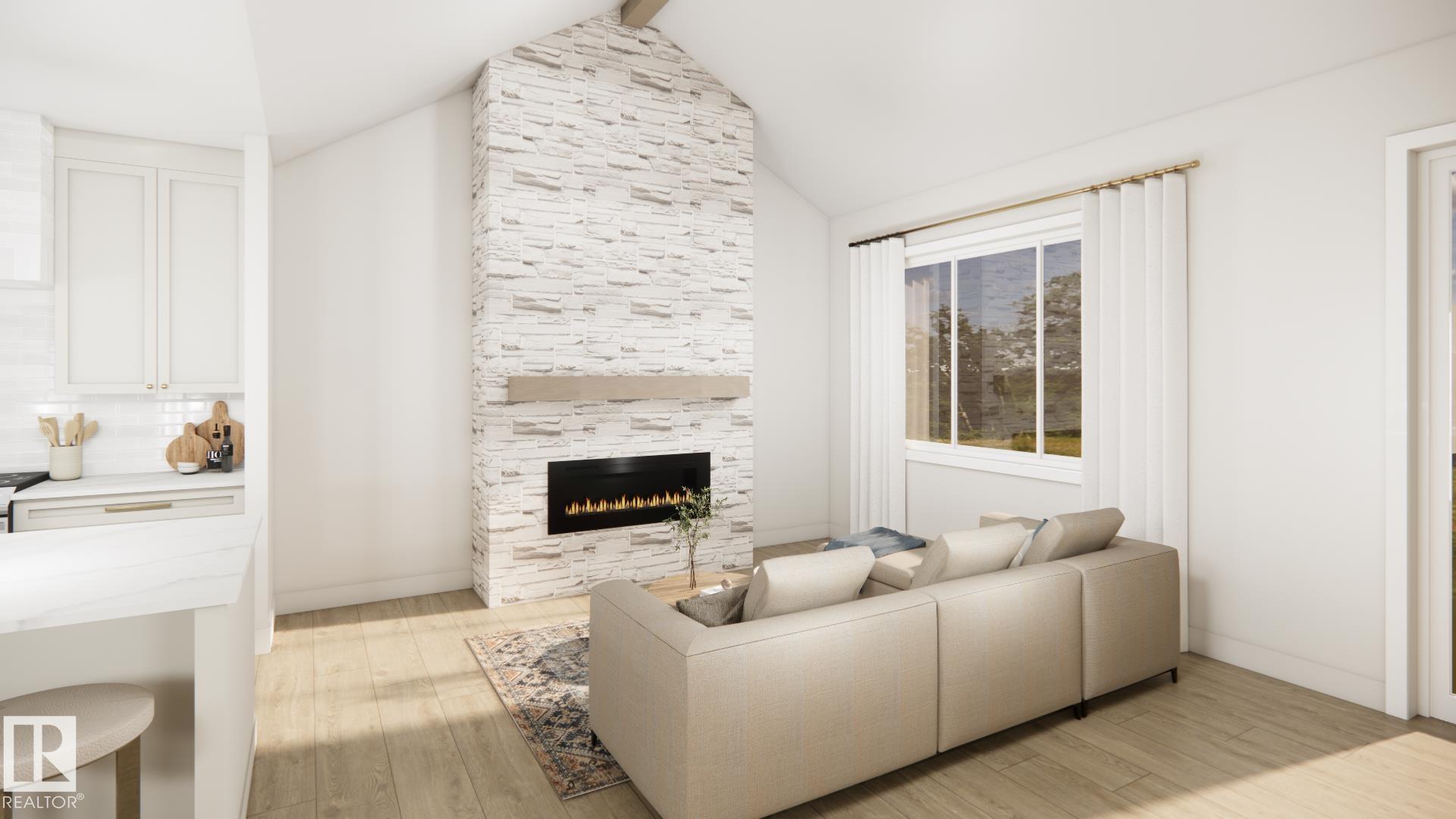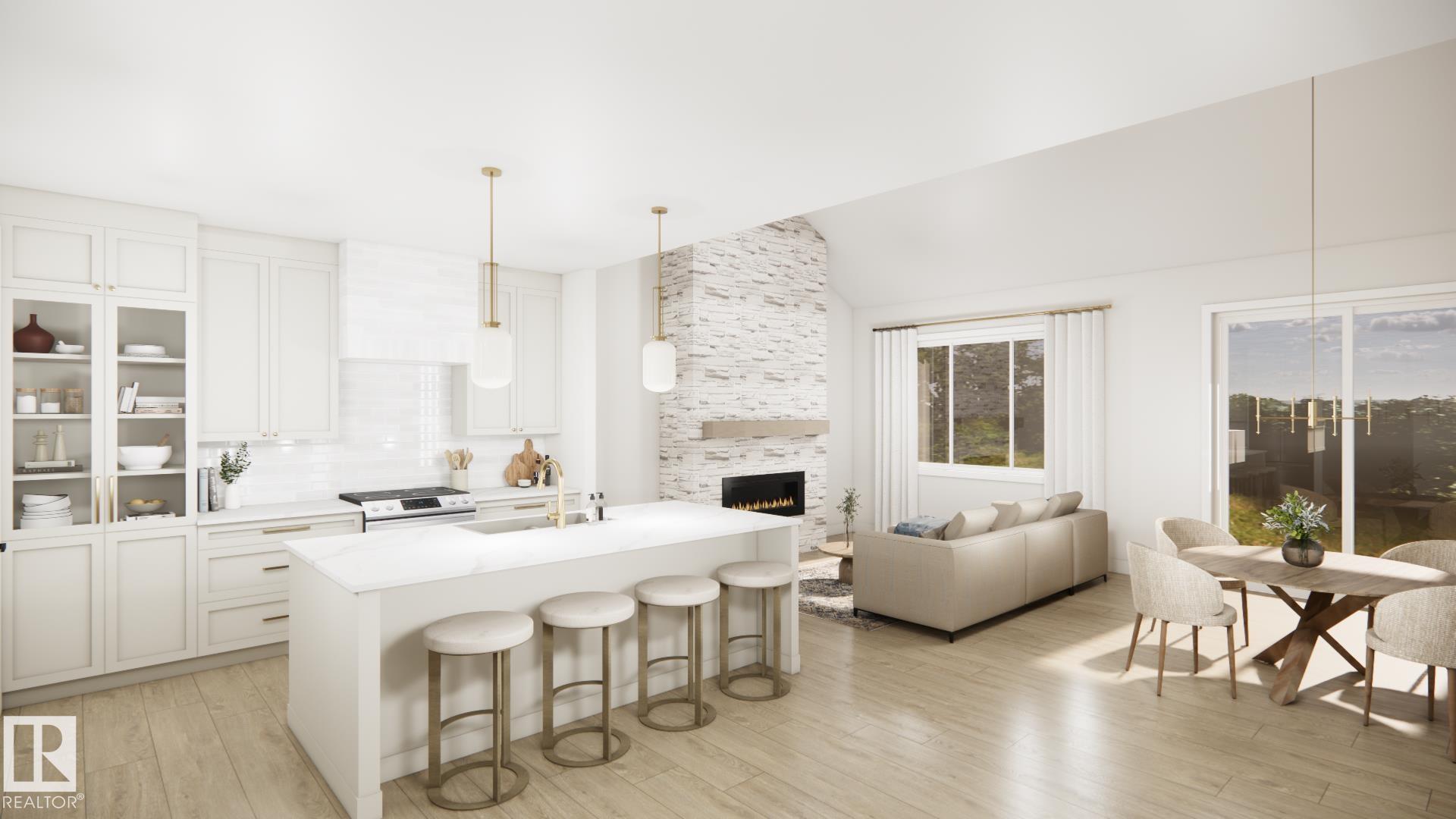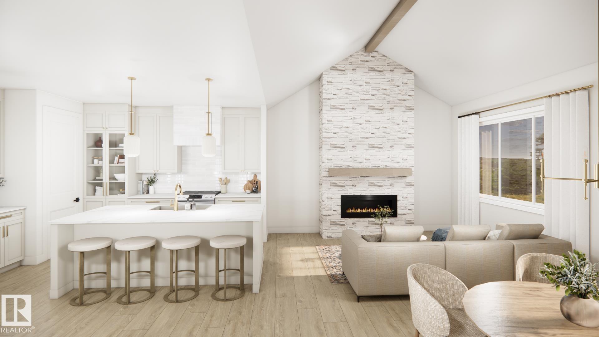 Stunning walkout bungalow backing a pond in Deer Park! HRD Homes presents The Beckett, a unique and RARE floor plan in Spruce Grove feat. over 1,400sqft or living space PLUS a triple heated garage with a 40' RV bay. This home features a bright & airy floor plan incl. vaulted ceilings w/ accented maple beam, an abundance of natural light, large entryway windows and so much more. Premium upgrades incl. vinyl plank flooring, 8ft solid core doors, s/s appliances, glass display doors in the kitchen, beautifully accented champagne bronze fixtures & lighting, gas fireplace w/ full height masonry to the ceiling, vaulted primary bedroom ceiling, his/her sinks w/ custom tiled shower in your 5 pce ensuite, walk-in closet, main floor laundry w/ sink, tankless hot water system, central A/C, hot/cold taps in the garage w/ floor drain, BBQ gas line & custom built ins throughout. This is the perfect place for snowbirds to call their own! *listing photos are design team renderings*