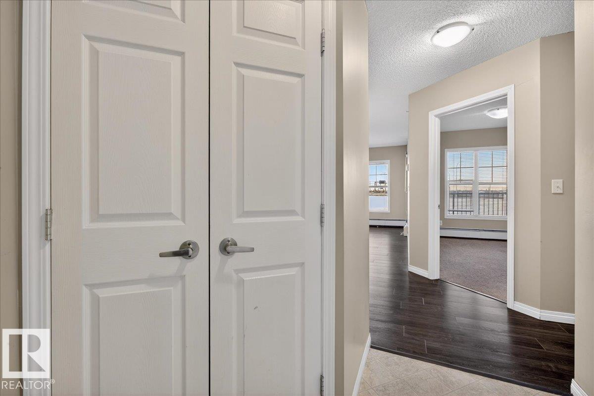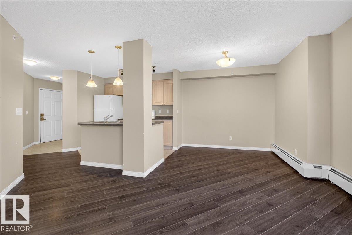 Affordable top-floor 2-bedroom 2-bath condo in MacEwan Village with immediate possession?ideal for investors or first-time buyers. This open-concept unit is conveniently located just steps from the elevator, adding everyday practicality for tenants and owners alike. The kitchen features bright maple cabinetry, ample storage, and an eat-at island overlooking the living and dining areas. The primary bedroom includes a walk-through closet, 4-piece ensuite, and direct access to the private balcony with gas BBQ hookup. Additional features include in-suite laundry and secure heated underground parking. All utilities (heat, water, power) are included in the condo fees, helping keep monthly costs predictable and attractive for rental purposes. This pet-friendly, well-managed building offers visitor parking, public transit access, surveillance, and on-site property management. Quick access to Anthony Henday and minutes to Ellerslie shopping and amenities.