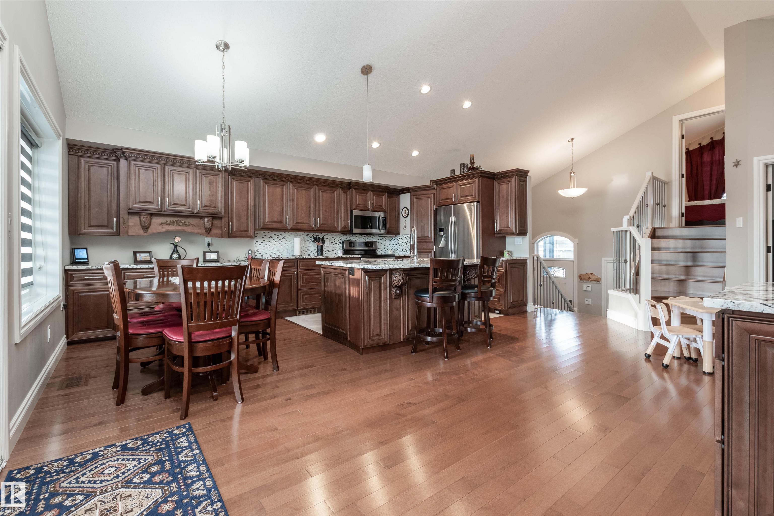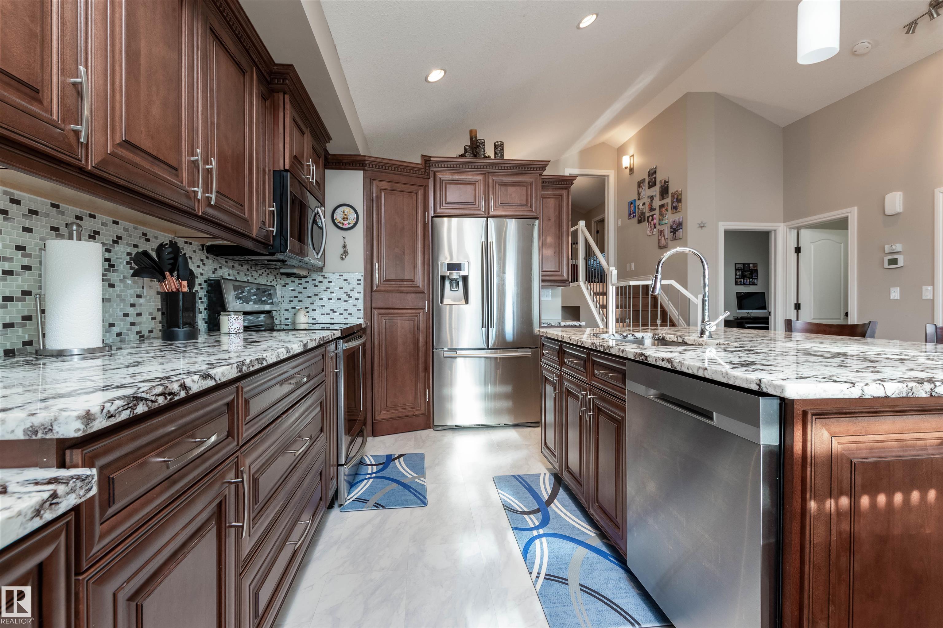 FABULOUS LAKEVIEW LOCATION!!! PARK 4 CARS IN THE GARAGE!!! Wow~This GORGEOUS custom built home is truly a rare find in Sherwood Park. Open design FULLY FINISHED throughout with a WALKOUT BASEMENT! Vaulted ceilings, hardwood floors, central A/C, high efficiency furnace, and hot water on demand. You'll LOVE the RENOVATED AND STUNNING DREAM KITCHEN!! An abundance of gorgeous cabinetry, granite countertops, huge island, built-in buffet & hutch, and high-end appliances. Enjoy the view from the large dining area & spacious living room with gas fireplace. Main floor bedroom, office and 4 piece bathroom. The upper level features the Primary Bedroom with walk-in closet & beautiful 4 piece ensuite. The basement features a large family room with second gas fireplace, flex space, 3rd bedroom, 4 piece bathroom, storage, laundry & utility room. AMAZING SOUTH-FACING BACKYARD! HEATED TRIPLE TANDEM GARAGE! Close to parks, schools, walking trails, transit & shopping. This home is a MUST-SEE and will not last!!