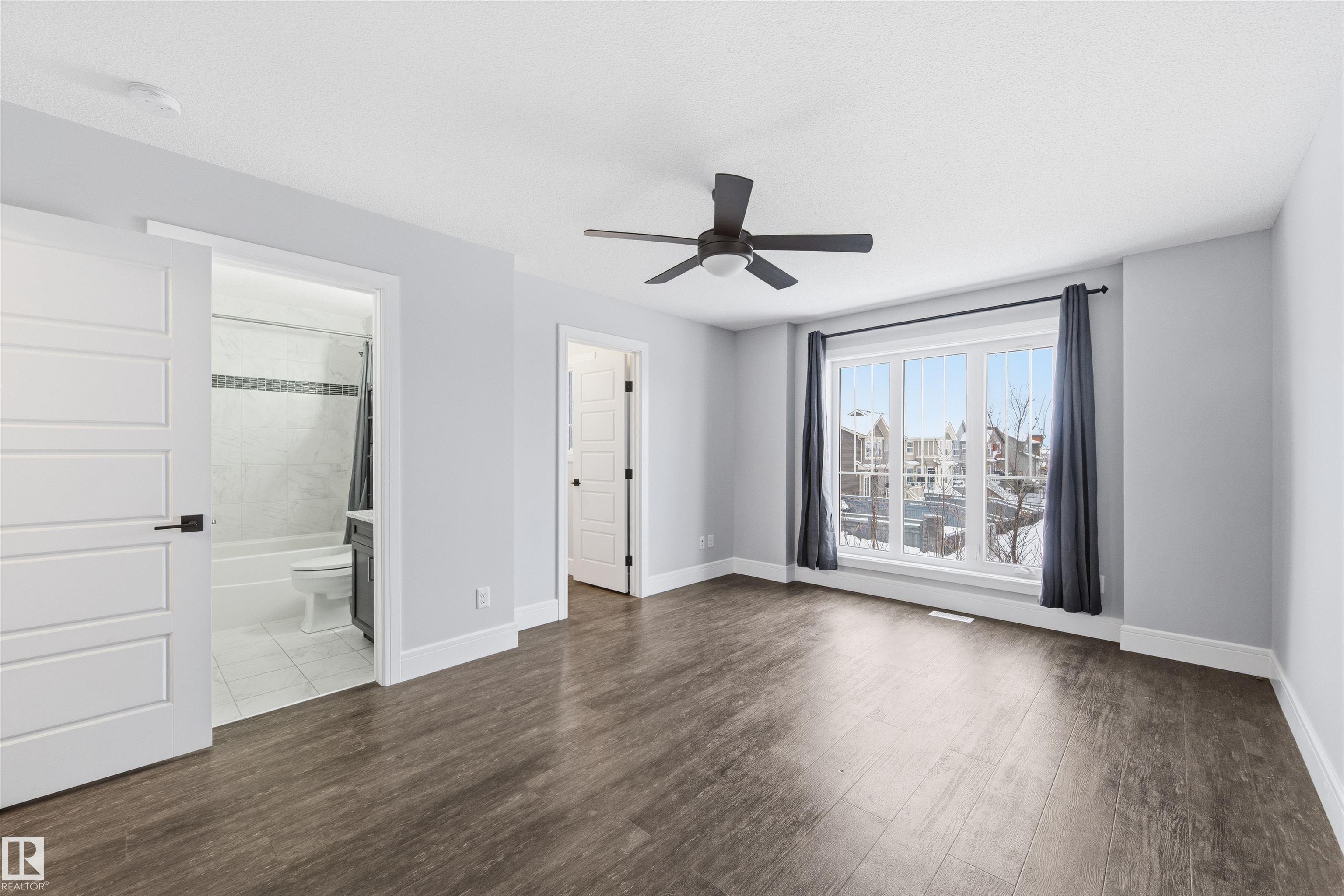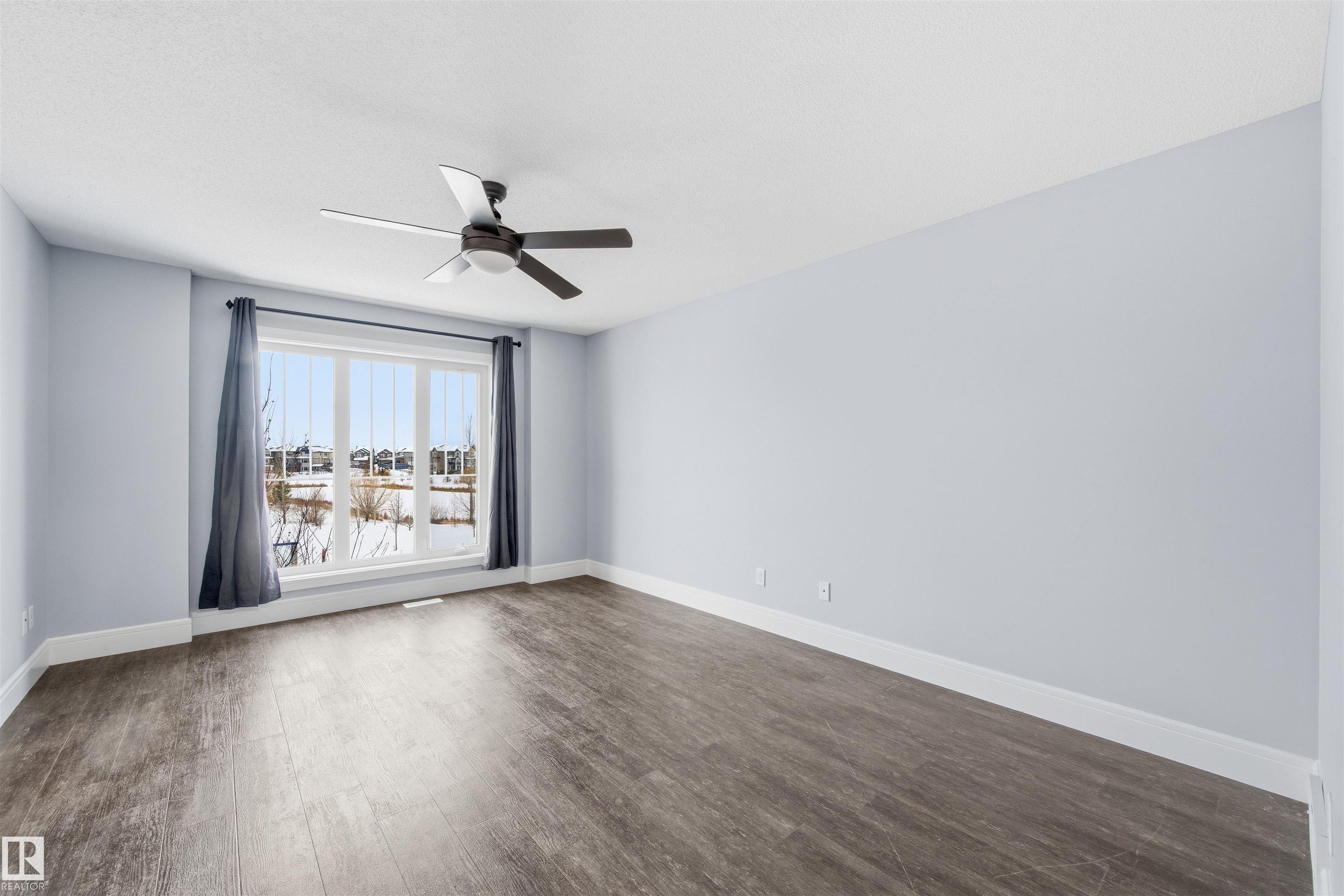 Turnkey, and ready for immediate possession. Perfect for a growing family or an investment portfolio. This over 1,400 sq ft end-unit townhome is filled with natural light and enjoys serene pond and walking trail views from both the living room and the primary bedroom with ensuite. Upstairs features two additional generously sized bedrooms and a 4-piece bath, complemented by tasteful upgrades including stone countertops throughout, high-end trim molding, gas stove and much more. The partially finished basement offers the ideal mix of entertainment space and ample storage, while the backyard boasts prime sun exposure and an oversized deck perfect for hosting. Located in the desirable Desrochers community with quick access to the Henday, CO-OP, Superstore, recreation and all everyday shopping needs - this is a must see.