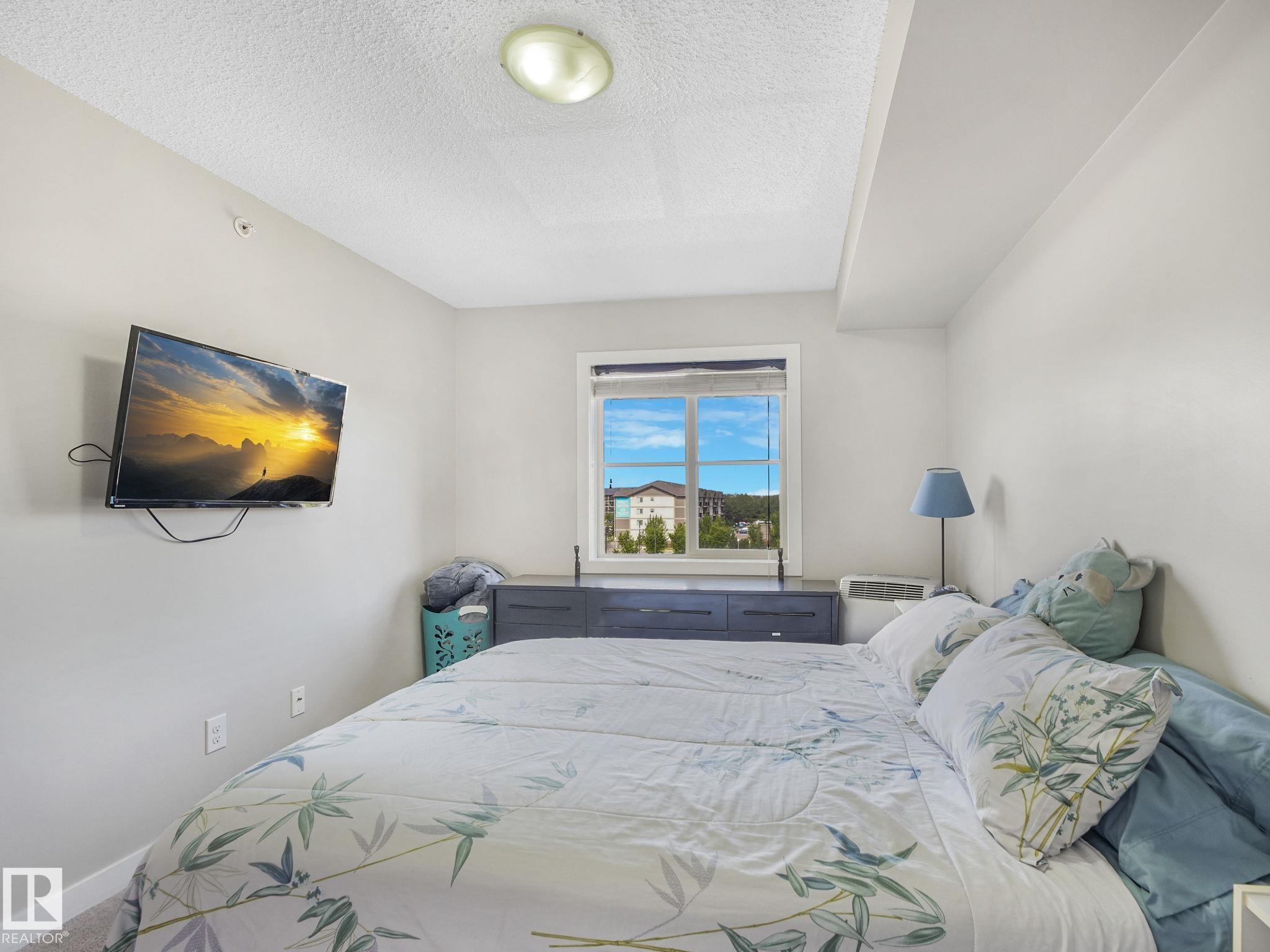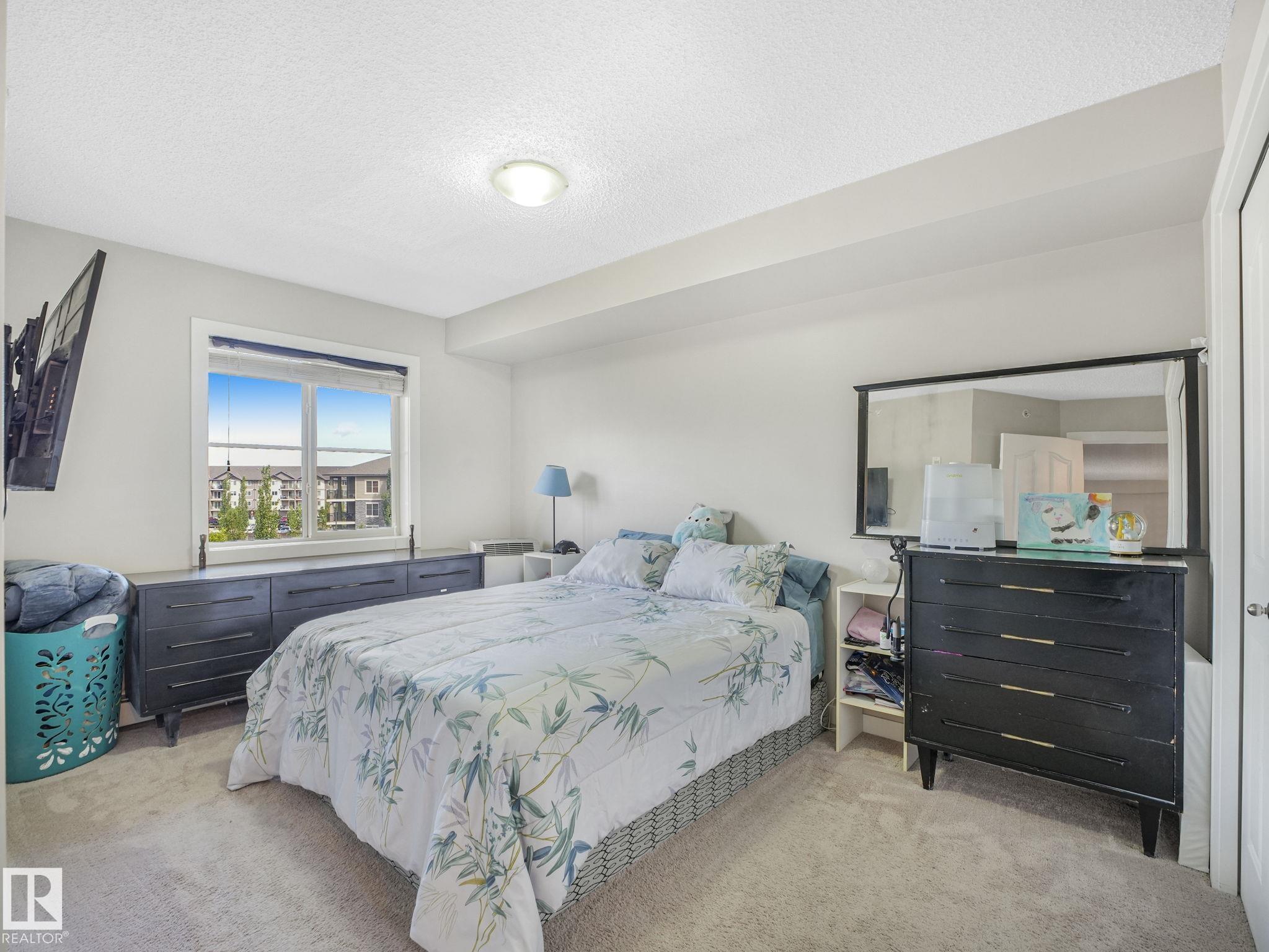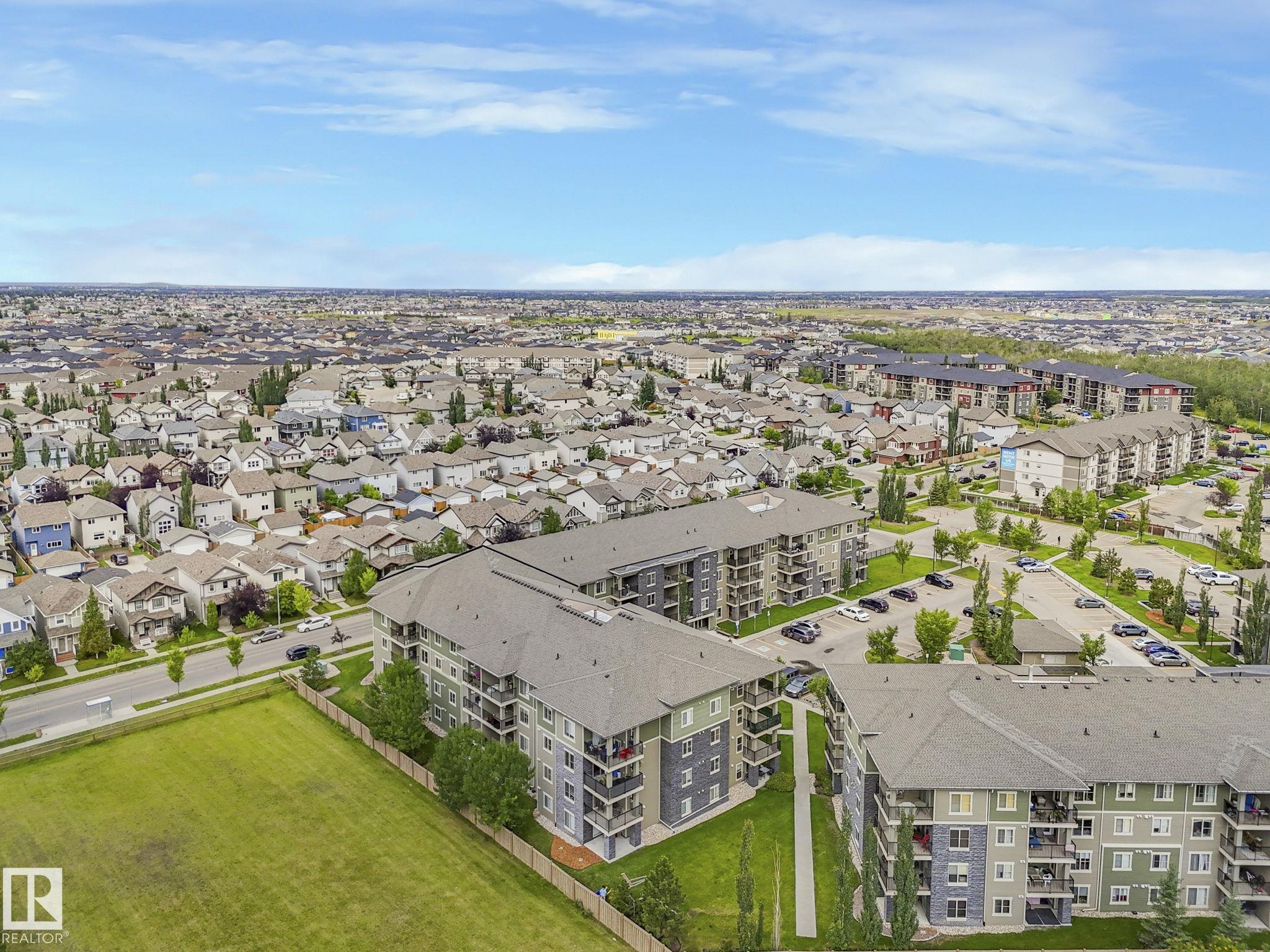 Check out this Quite Top Floor Unit in McConachie! featuring 2 beds, 2baths, A spacious layout with an open concept living room and dining, Upgraded kitchen with granite countertops, stainless steel appliances, laundry room/storage with stackable washer and dryer, 2 titled parking stalls 1 underground and 1 above ground. This unit has been freshly painted, and carpets recently professionally cleaned. You will find that the unit is exceptionally quiet as only one common wall is shared with your neighbor. It is Conveniently situated beside the stairwell exit and underground parking entrance. With easy access to the Anthony Henday, transportation, schools and more. This unit is an ideal choice for those seeking comfort and convenience.
