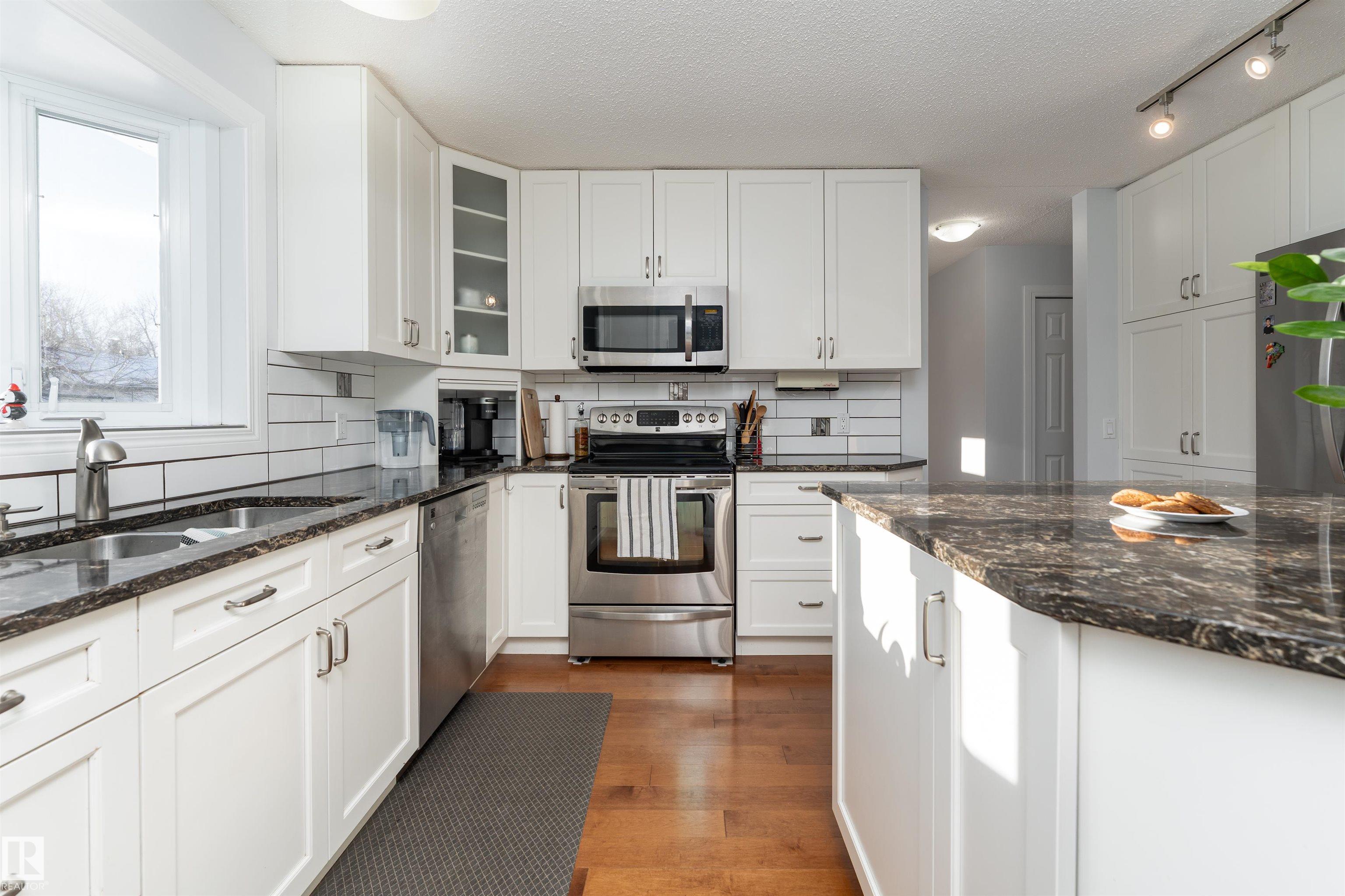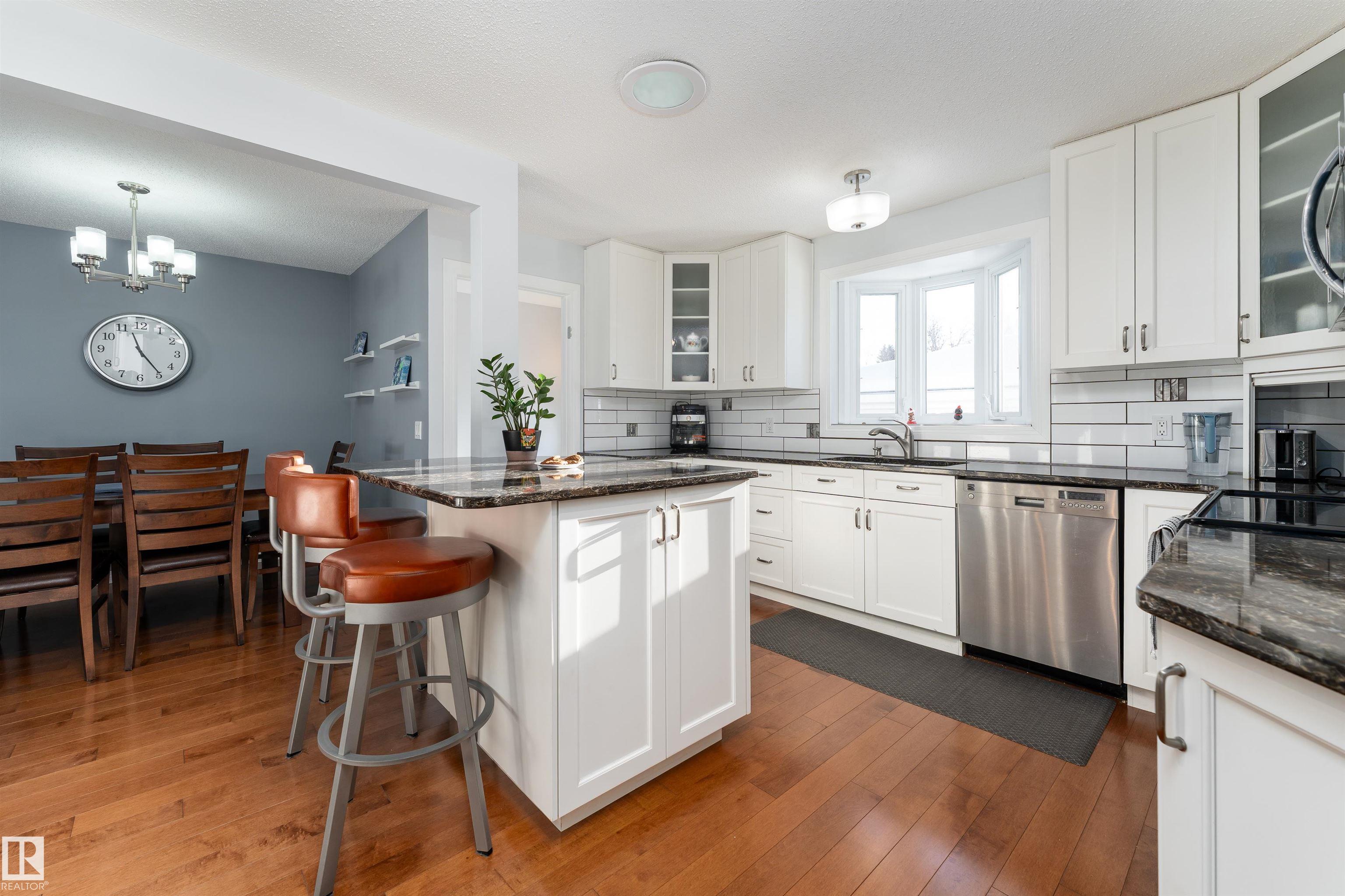 Nicely upgraded 1,316 sqft bungalow located on a quiet, tree-lined street close to schools, walking trails, and green space. The bright kitchen offers ample white cabinetry, quartz countertops, stainless steel appliances, sun tunnel and beautiful hardwood floors throughout the dining and living area. The updated 4-piece main bathroom features a separate tub and shower with convenient access from both the hallway and primary bedroom. Originally a 3-bedroom layout upstairs, two bedrooms were combined to create an expanded primary bedroom and bathroom, the original primary bedroom remains generously sized and includes a 2-piece ensuite. Numerous updates include roof(2019),front door(2019) and panel box(2024). The basement is set up with a potential second kitchen, two additional bedrooms, an updated 3-piece bathroom, and plenty of storage. Outside you?ll find a heated(2022) 24? x 24? detached garage, additional front parking pad, and central A/C(2018) to keep you comfortable all summer long.