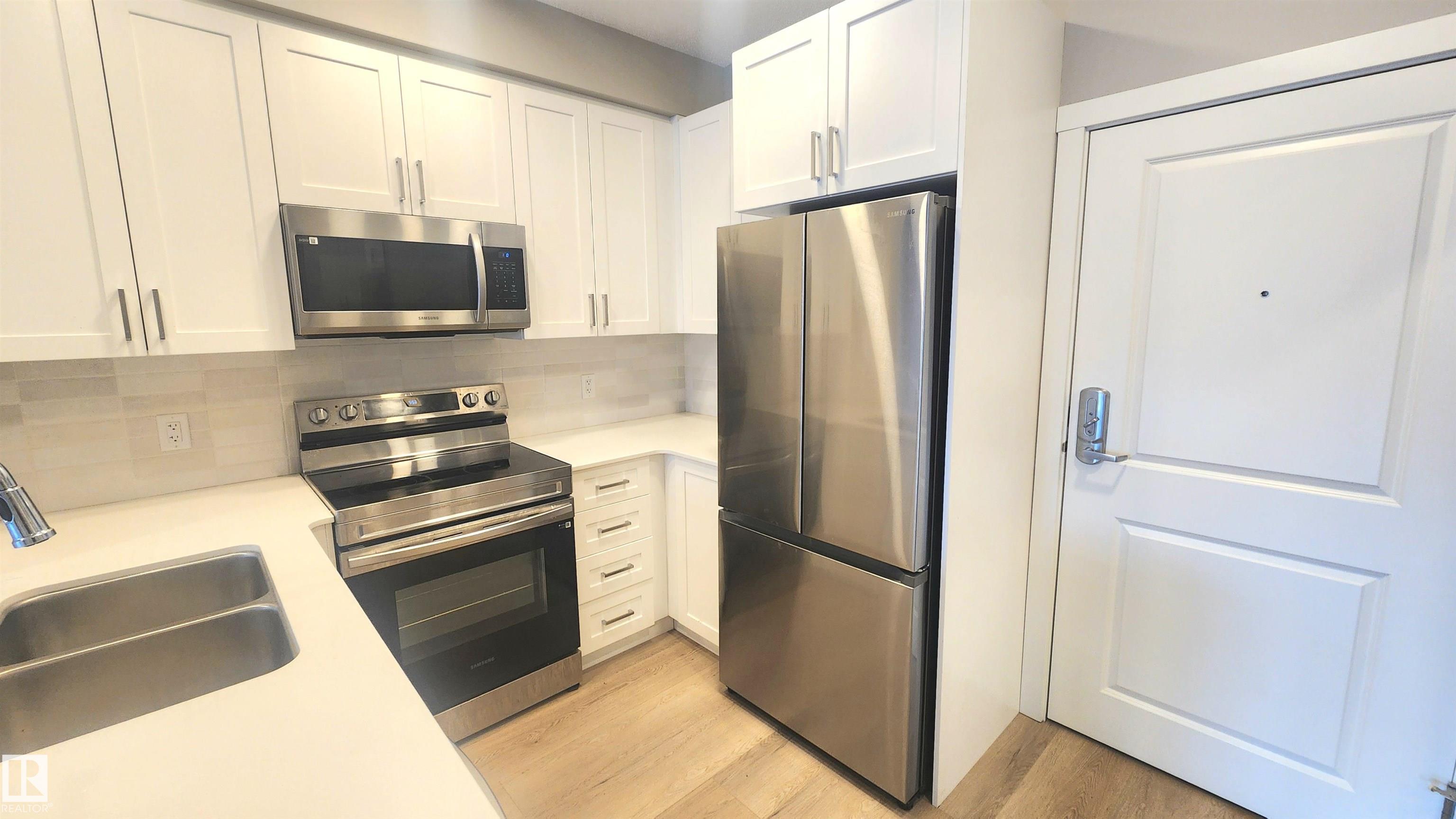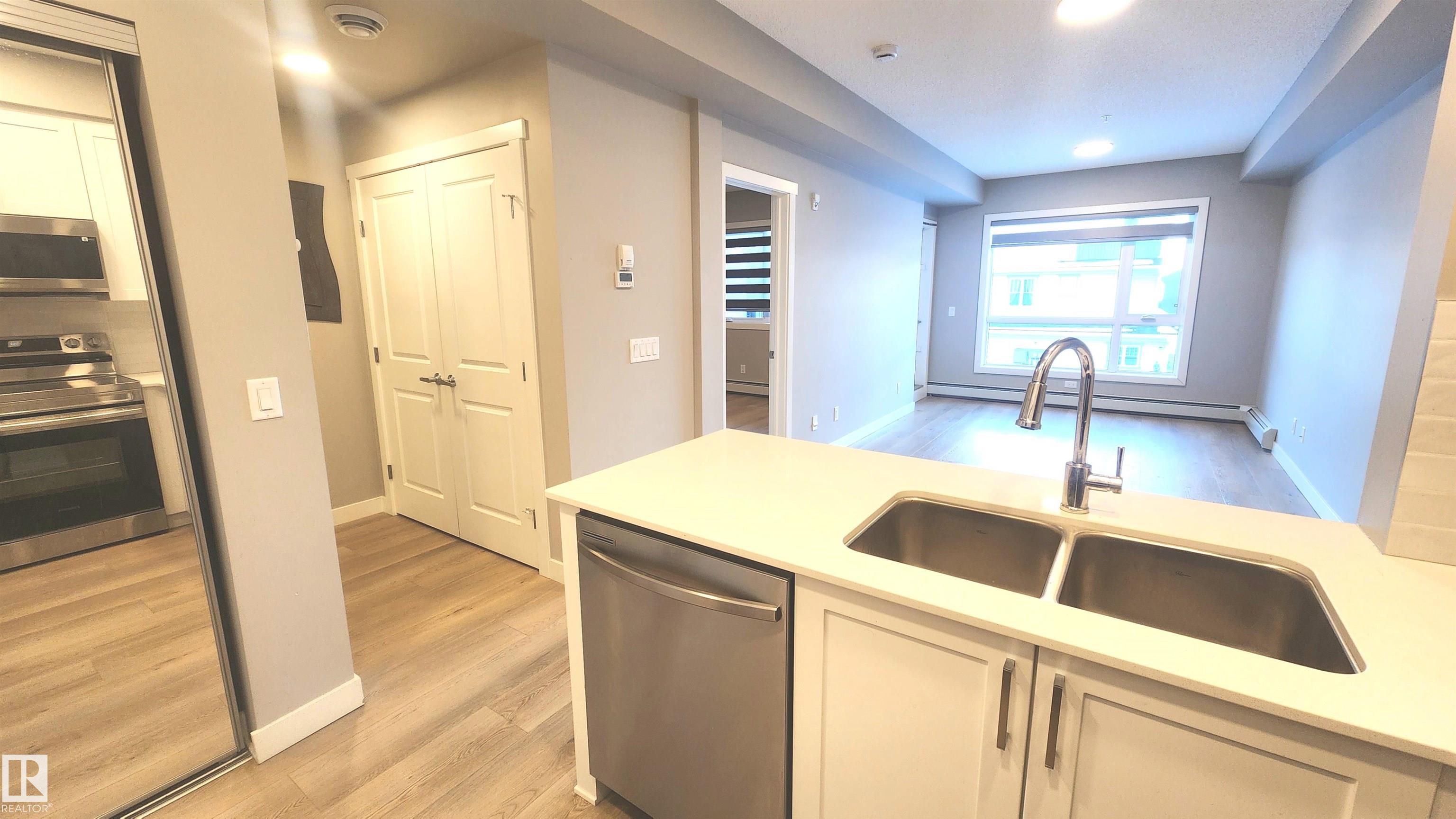 "Aloft Skyview" featuring this PRISTINE & NEARLY BRAND NEW upgraded 1 Bedroom Unit with a PRIVATE & LARGE PATIO 2nd Floor View. VERY NICE UNIT with a Surprisingly spacious floor plan featuring a Large Living Room for Oversized Furniture. Quartz Counter-Tops in the Spacious Kitchen (Matching Washroom Vanity Quartz) which features a LOT of Counter-Top space, Matching Stainless Steel Appliances, and Lots of cabinets for storage with Stylish Matching Modern Colour Scheme. You will LOVE No CARPET and Super Durable stylish wide Vinyl Plank Flooring. This is a Truly Nice END Unit with only one neighbour in a Stylish Modern Building. The Location scores a "77 WALKSCORE" making it a PRIME Location for All Amenities! NOT MANY UNITS come for sale in this building - QUICK POSSESSION AVAILABLE!