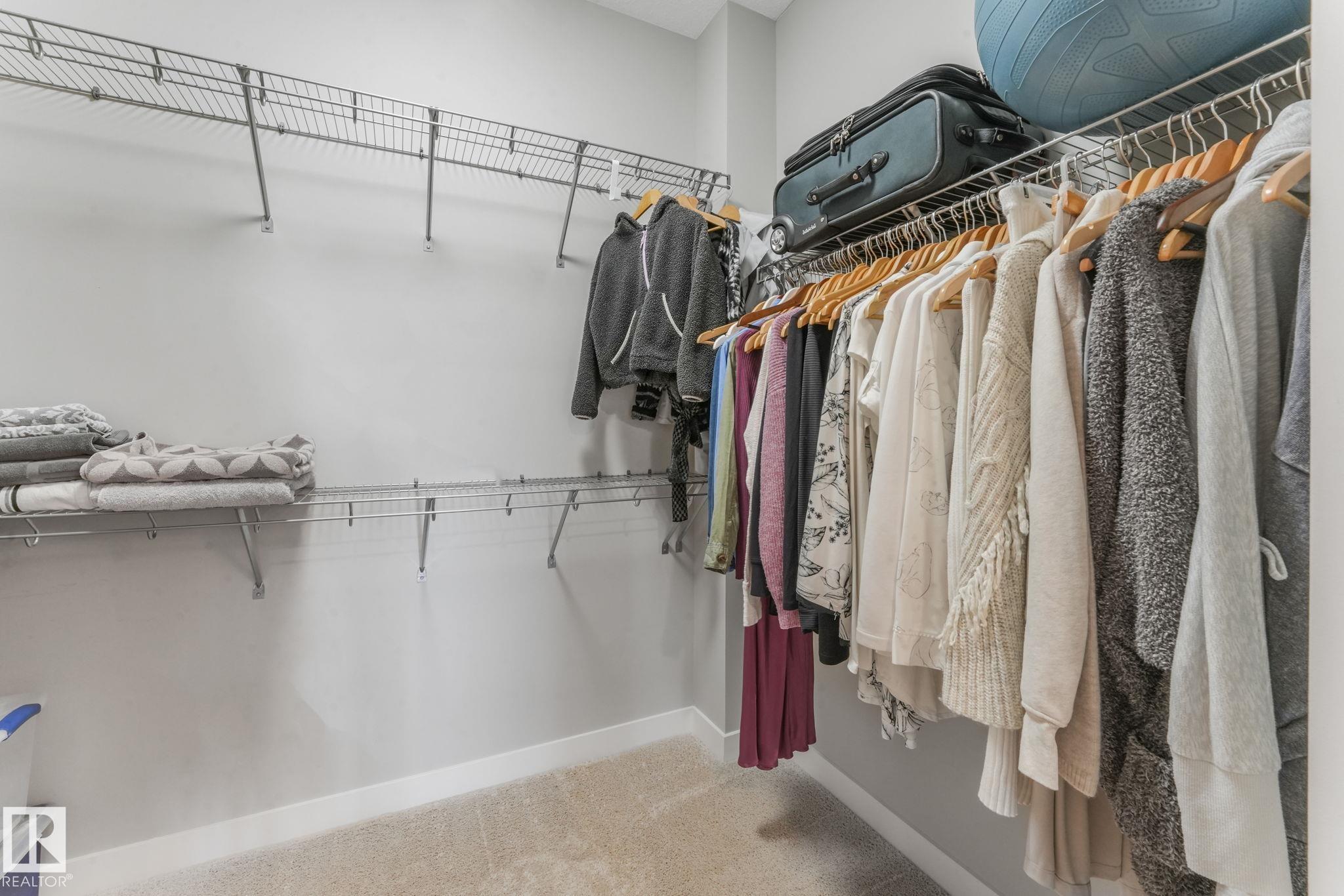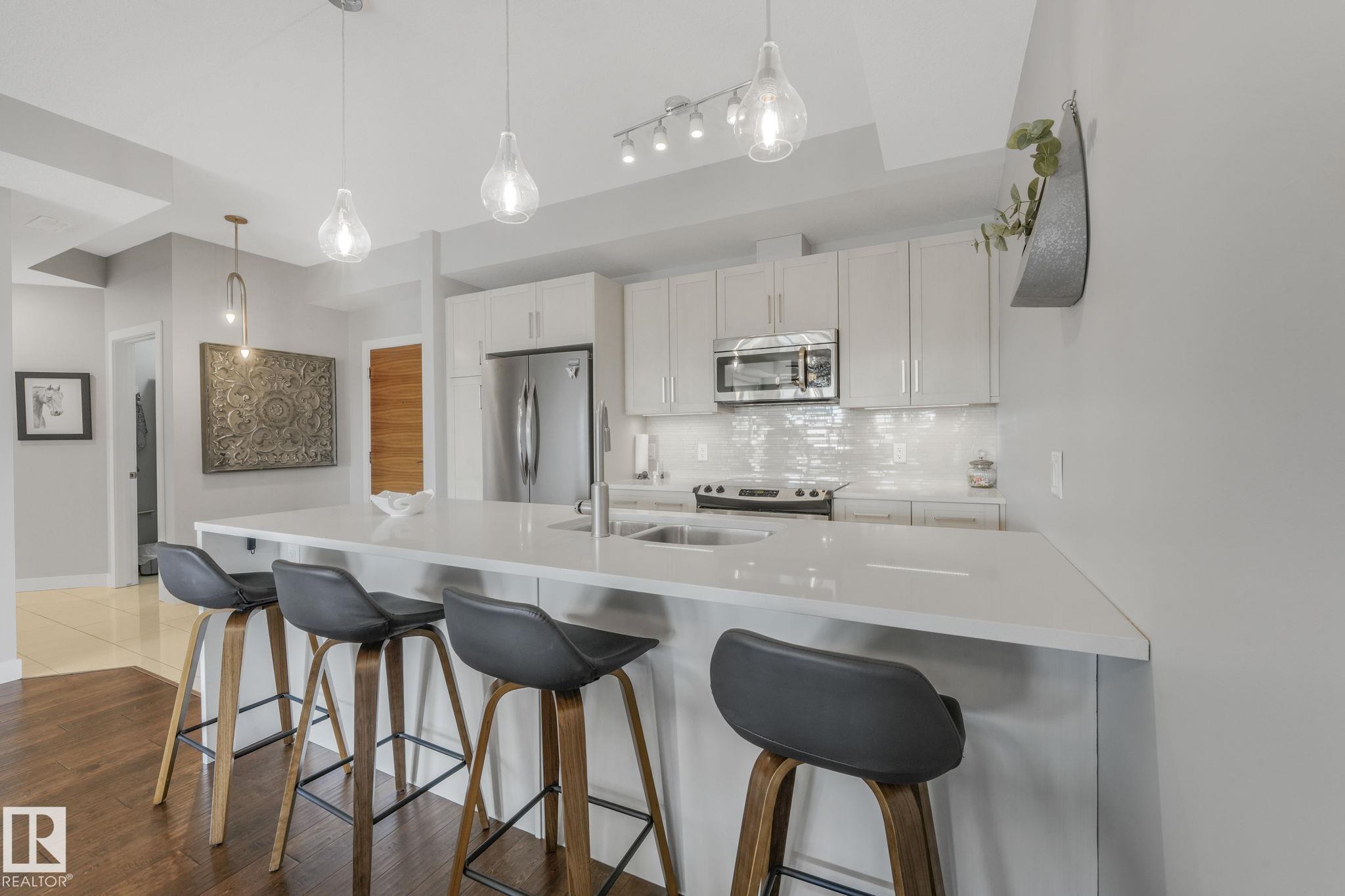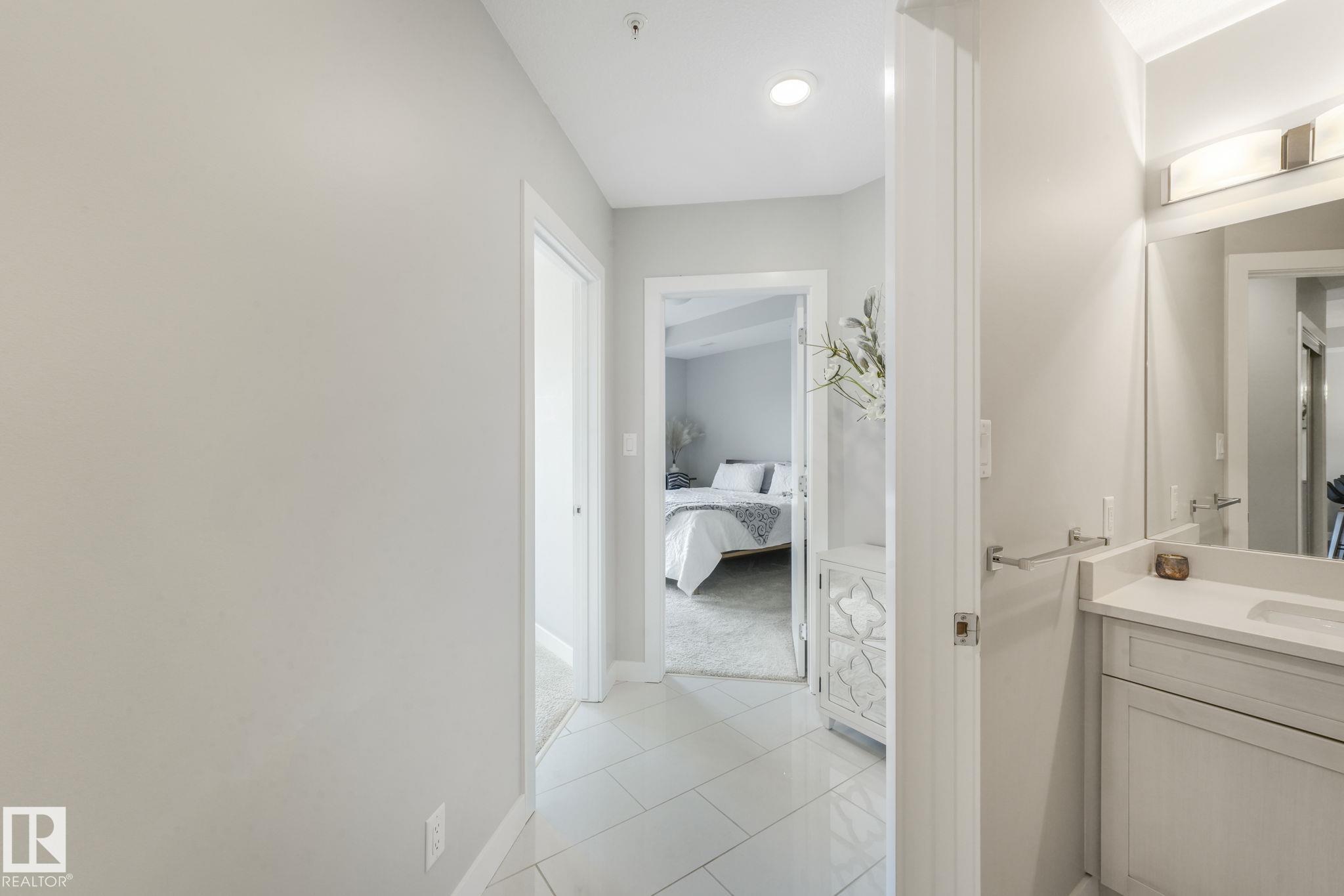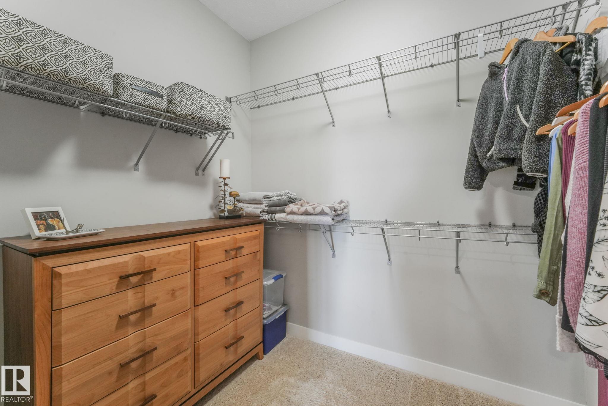 Just move in! Easy peaceful living at its best - it's the "little things" that make it a home. Drive up to the property and be impressed with lots of spacious visitor & handicapped parking. Marvel at the bountiful landscaping (this spring!), the quality sidewalks, foyer & elevators. This top floor beauty welcomes lots of sun all year long! Wow! Space & spaciousness and a fairly recent full paint! A classy great room is complemented by a feature divider to define without separating. Your plants will thrive. Sunny SW balcony is like 2 rooms - space for dining & sitting. Primary suite boasts space, privacy & an enviable ensuite with walk-in closet. 2nd bedroom is well placed and sized & a separate laundry room. U/G parking has a storage cage integrated w/parking spot-easy access. Short walk to Transit Centre,& Rec Centre. Great access to both Henday & Whitemud. Shopping is minutes away. Excellent Condo management, small pets w/approval. Your new best friends live there! Don't keep them waiting!