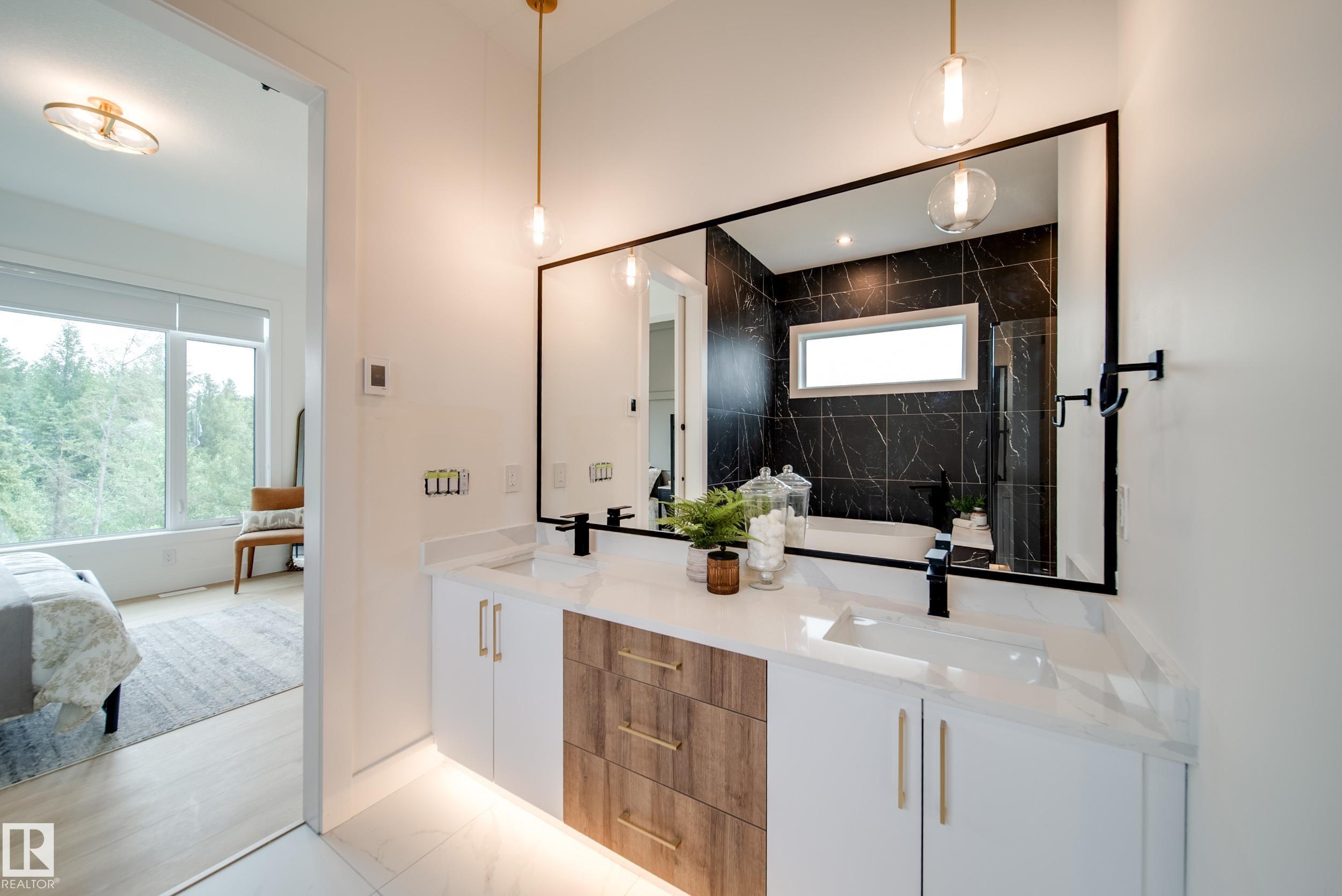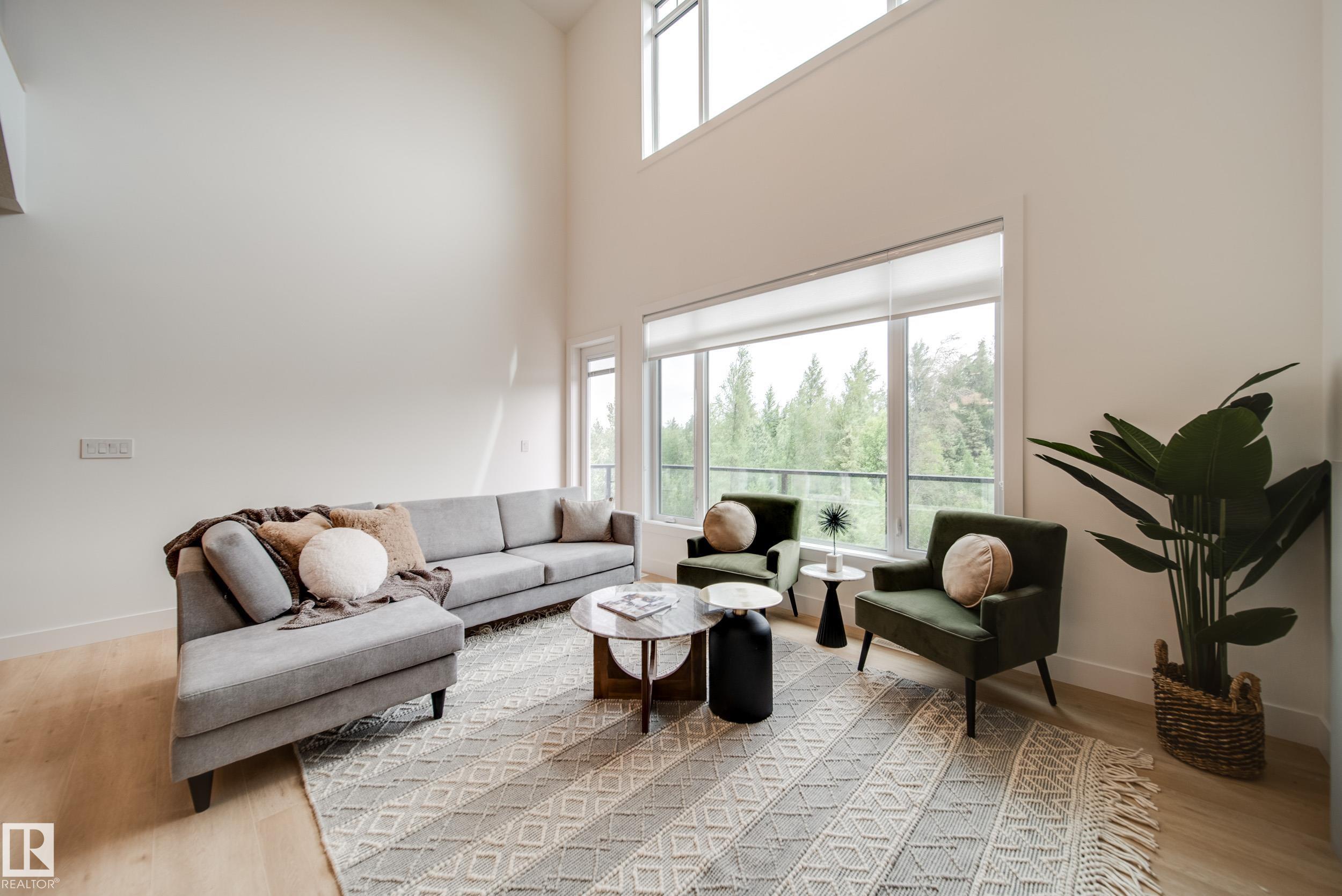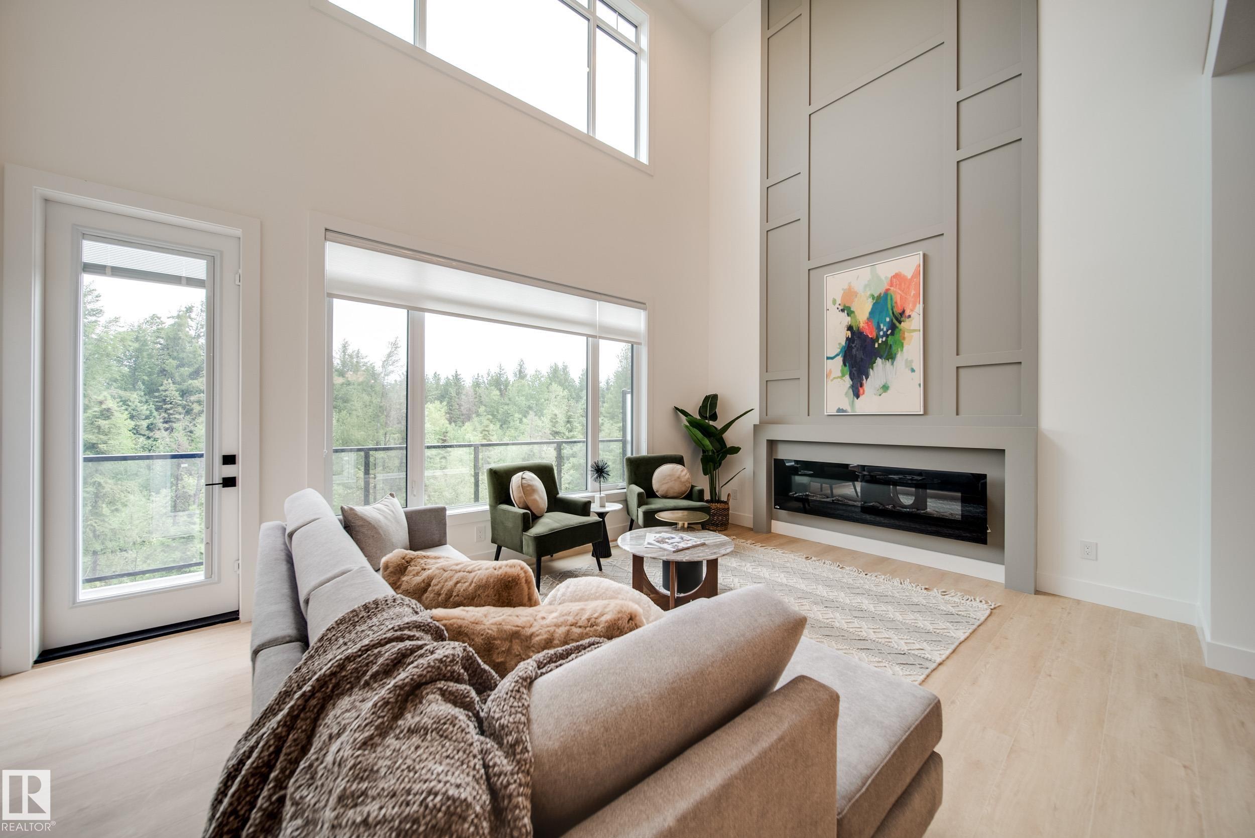 ?Luxury Greens? by Spectrum Homes ? a premium, Executive-style WALKOUT half-duplex BUNGALOW in sought-after Webber Greens! BACKING THE RAVINE, this custom built home designed by CM Interior Designs showcases resort-style living with 10' ceilings, OPEN TO BELOW, 8' doors, and an open concept layout. The main floor offers 2 bedrooms, 2 full baths, laundry, and a dream kitchen with waterfall island, walk-through pantry, spice racks, garbage pullout, and upgraded appliances. Enjoy the bright living room with massive windows, fireplace, window coverings, and soaring open-to-below ceilings. The primary suite is a retreat with spa-inspired ensuite featuring a freestanding tub, tiled shower, dual sinks & walk-in closet. Upper loft includes built-in wet bar and 2nd fireplace. Fully finished walkout basement features a large rec room, 3rd fireplace, 2 bedrooms, full bath & wet bar. Finished garage w/ 220V EV charger, zoned A/C, WiFi LED gem lights, & exposed aggregate driveway complete this incredible home!