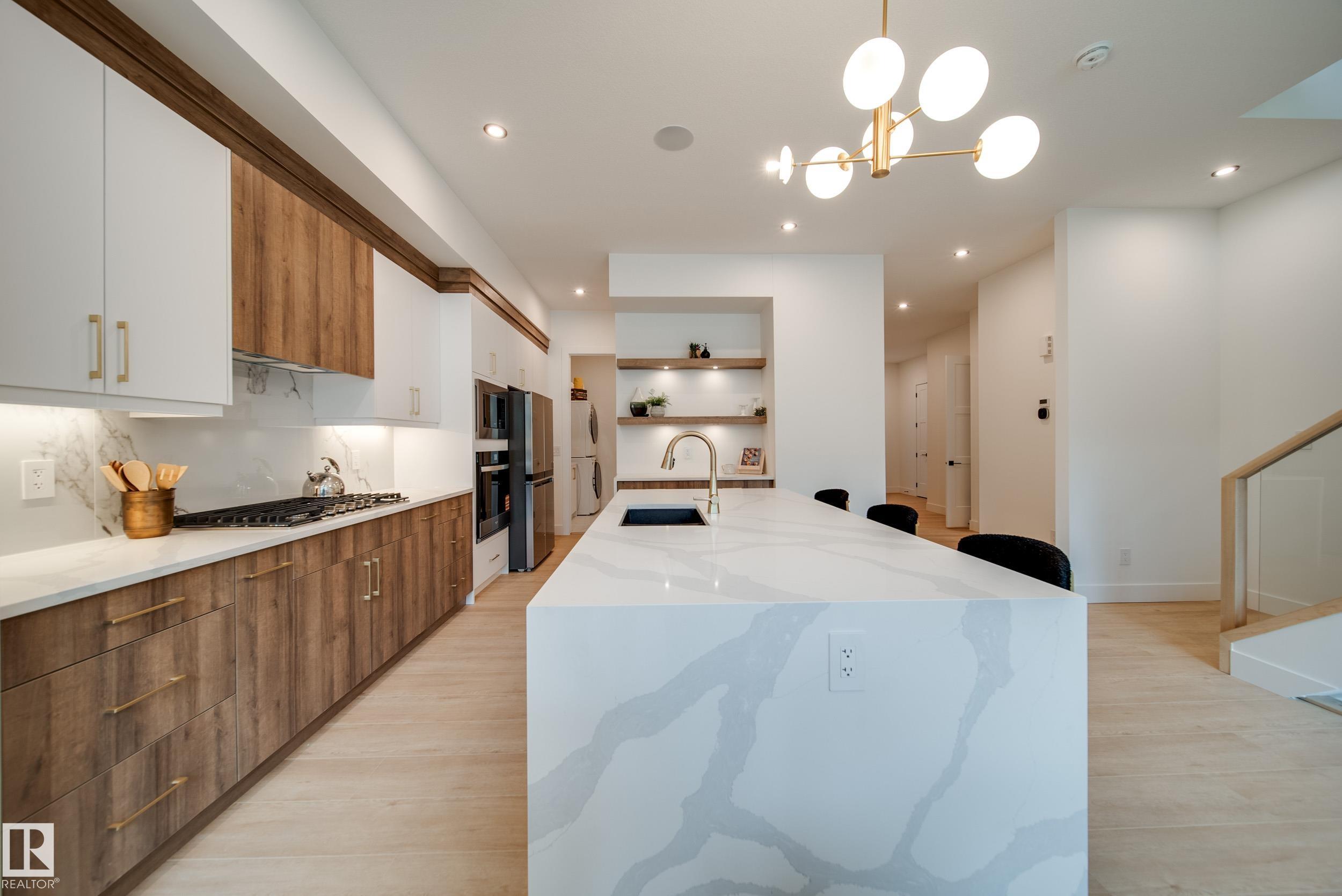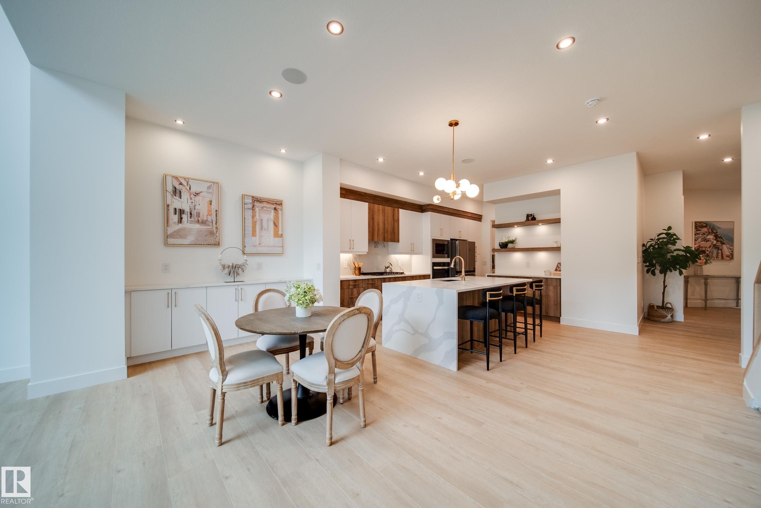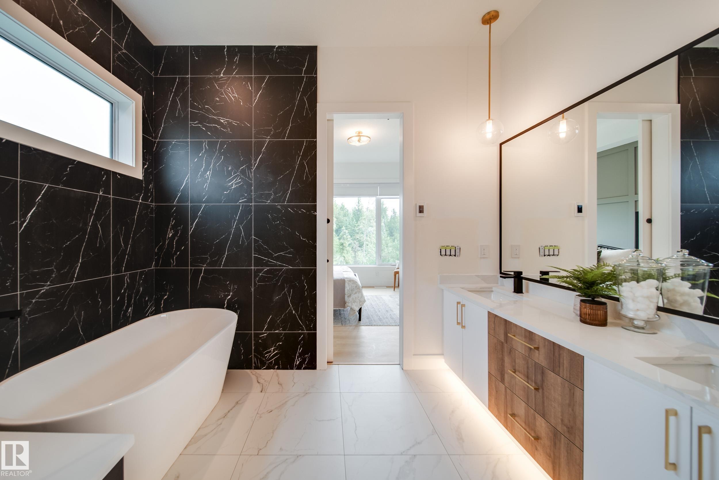 ?Luxury Greens? by Spectrum Homes ? a premium, Executive-style WALKOUT half-duplex BUNGALOW in sought-after Webber Greens! BACKING THE RAVINE, this custom built home designed by CM Interior Designs showcases resort-style living with 10' ceilings, OPEN TO BELOW, 8' doors, and an open concept layout. The main floor offers 2 bedrooms, 2 full baths, laundry, and a dream kitchen with waterfall island, walk-through pantry, spice racks, garbage pullout, and upgraded appliances. Enjoy the bright living room with massive windows, fireplace, window coverings, and soaring open-to-below ceilings. The primary suite is a retreat with spa-inspired ensuite featuring a freestanding tub, tiled shower, dual sinks & walk-in closet. Upper loft includes built-in wet bar and 2nd fireplace. Fully finished walkout basement features a large rec room, 3rd fireplace, 2 bedrooms, full bath & wet bar. Finished garage w/ 220V EV charger, zoned A/C, WiFi LED gem lights, & exposed aggregate driveway complete this incredible home!