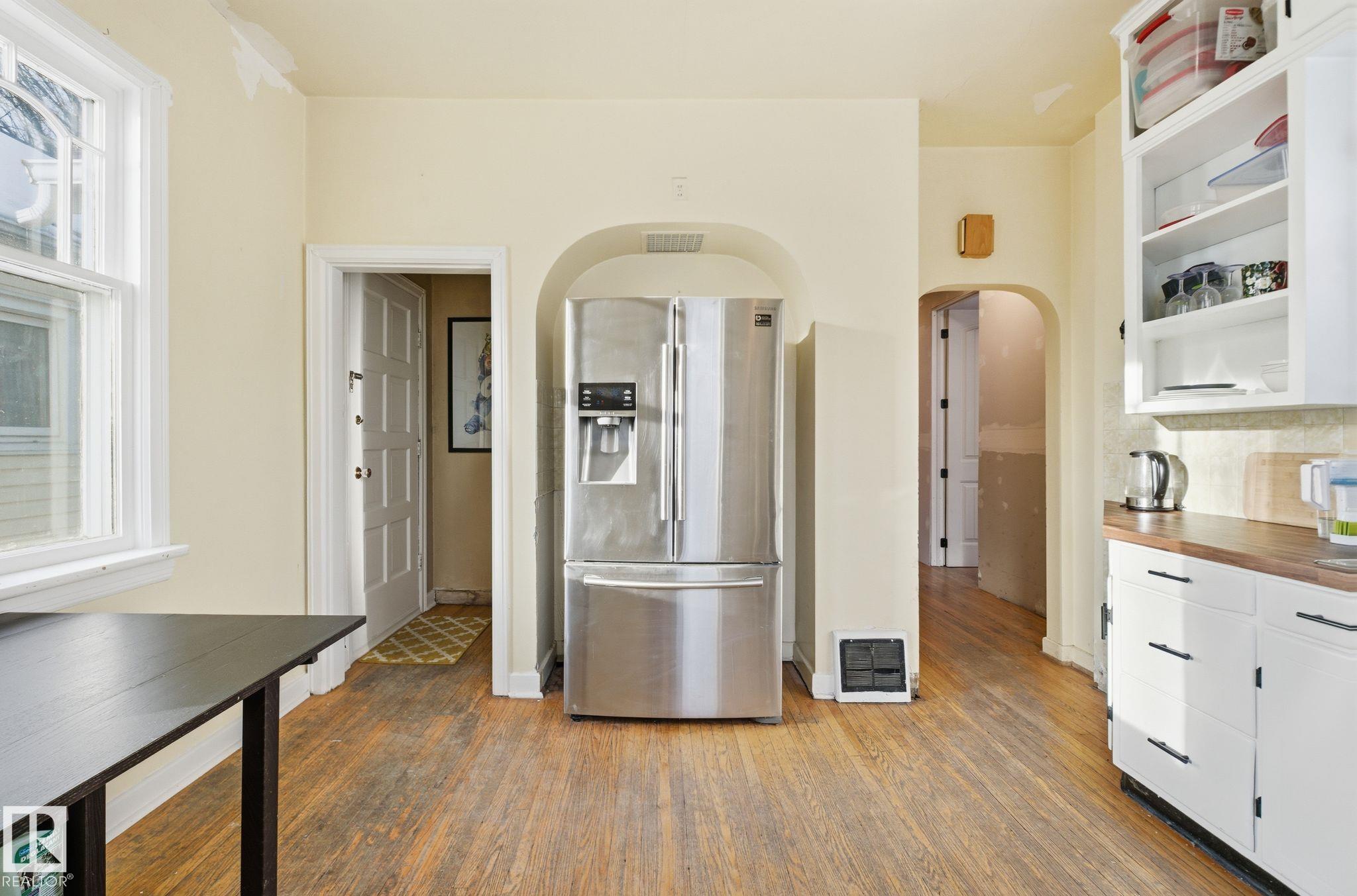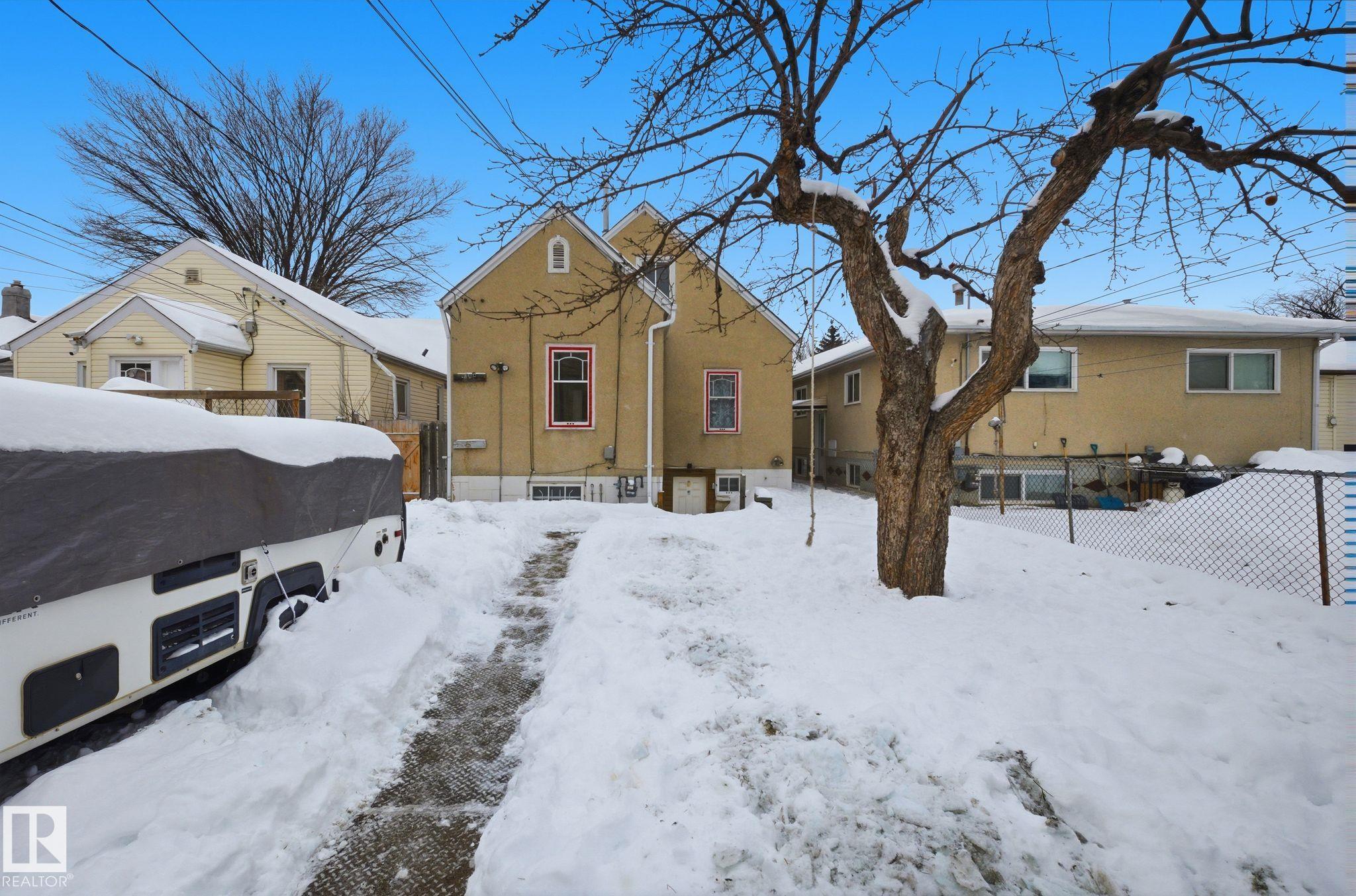 Discover a prime opportunity in the heart of Spruce Avenue with this charming 3-bedroom, 1.5-story home. Perfectly situated just minutes from NAIT, Kingsway Mall, and Royal Alexandra Hospital, the location alone makes the property stand out. Sitting on a generous 4,865 sq. ft. RF3-zoned lot, the options are endless-renovate, redevelop or design a brand-new infill to suit your vision. Recent upgrades include a top -of-the-line Trane Furnace (value $8000) providing modern comfort and efficiency. While the basement provides excellent potential for a two-bedroom suite with bathroom and unfinished kitchen. Whether you're an investor seeking a redevelopment project or a homeowner looking to join a vibrant community, this property is bursting with potential. Don't miss your chance to invest in Spruce Avenue's future! This property is full of possibilities!