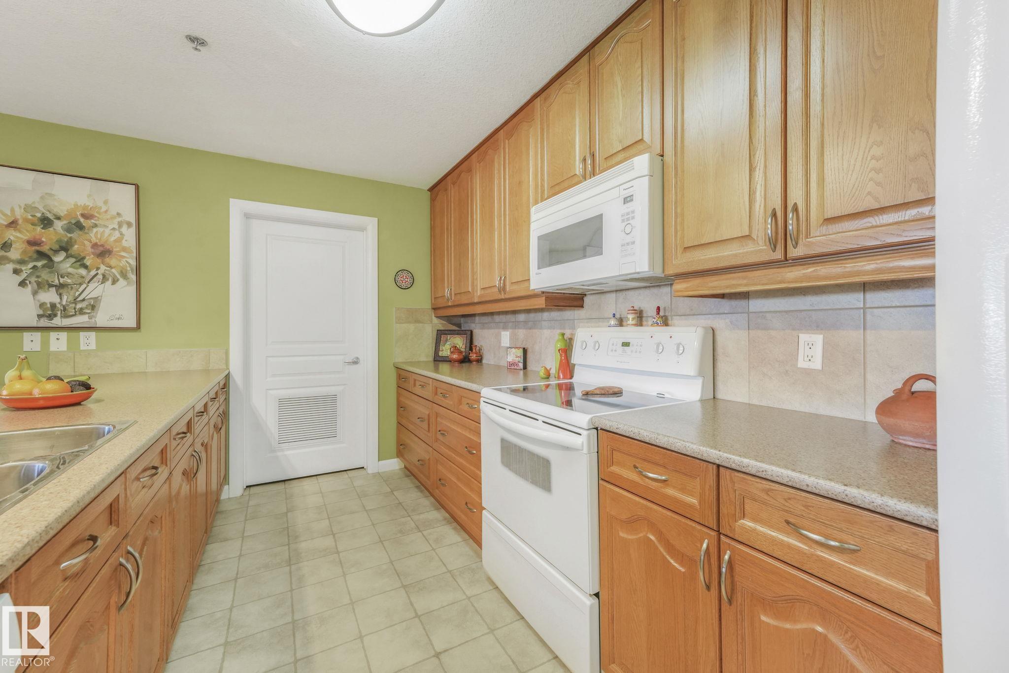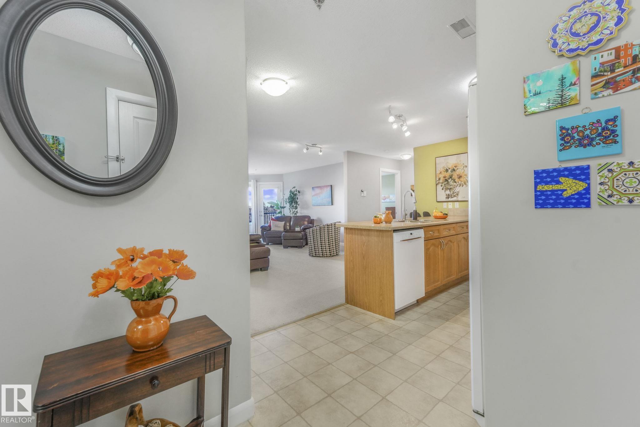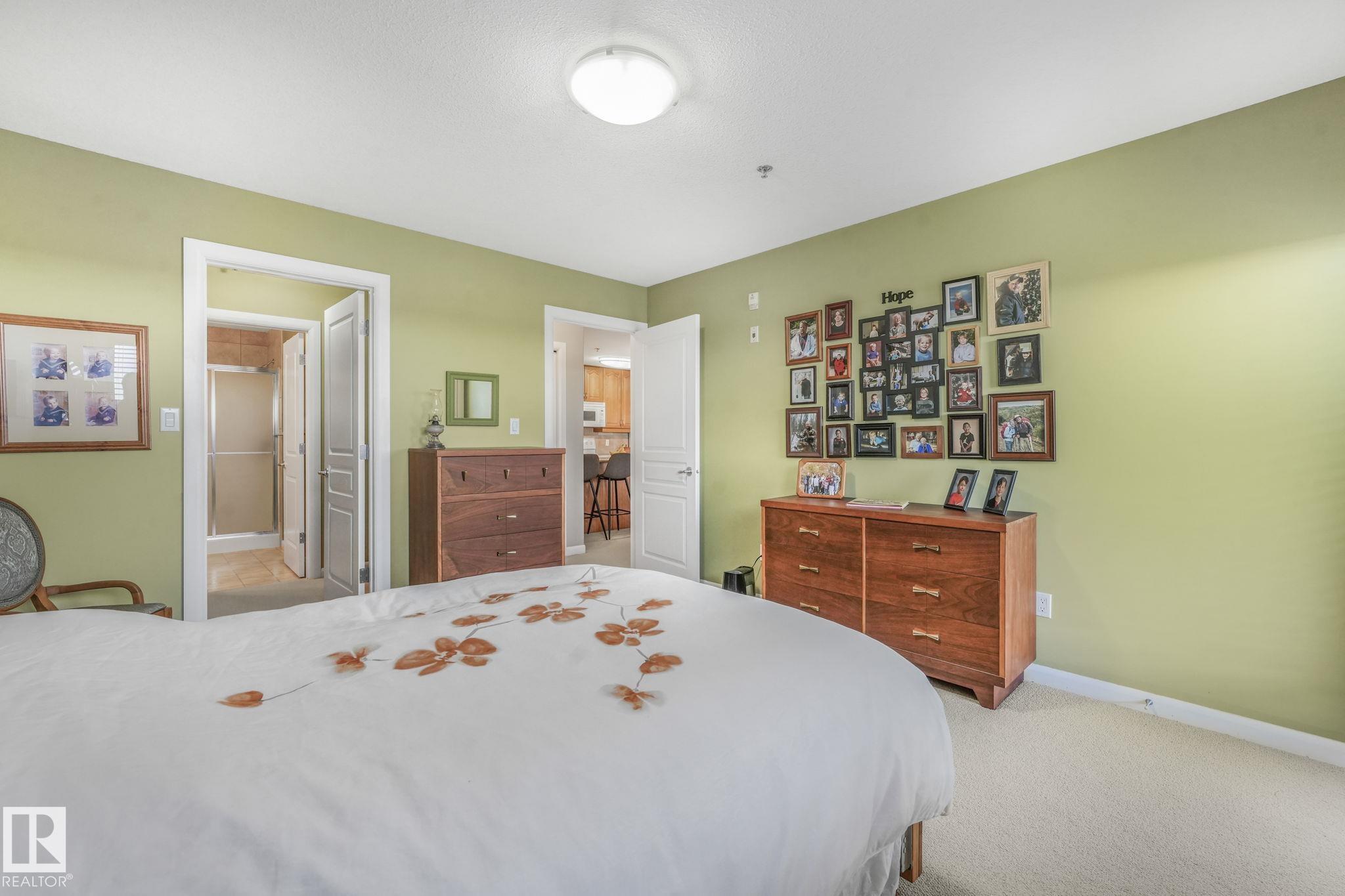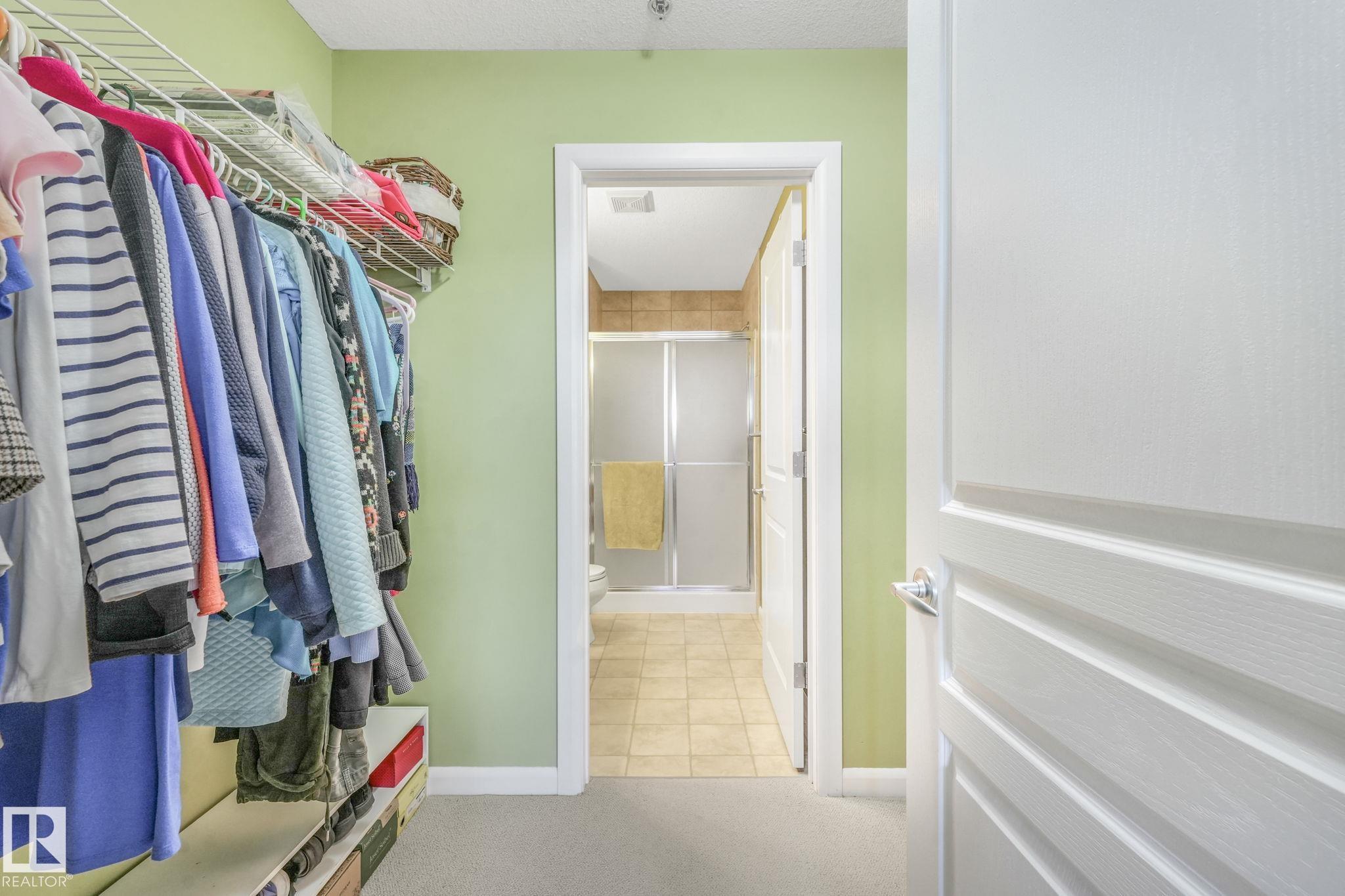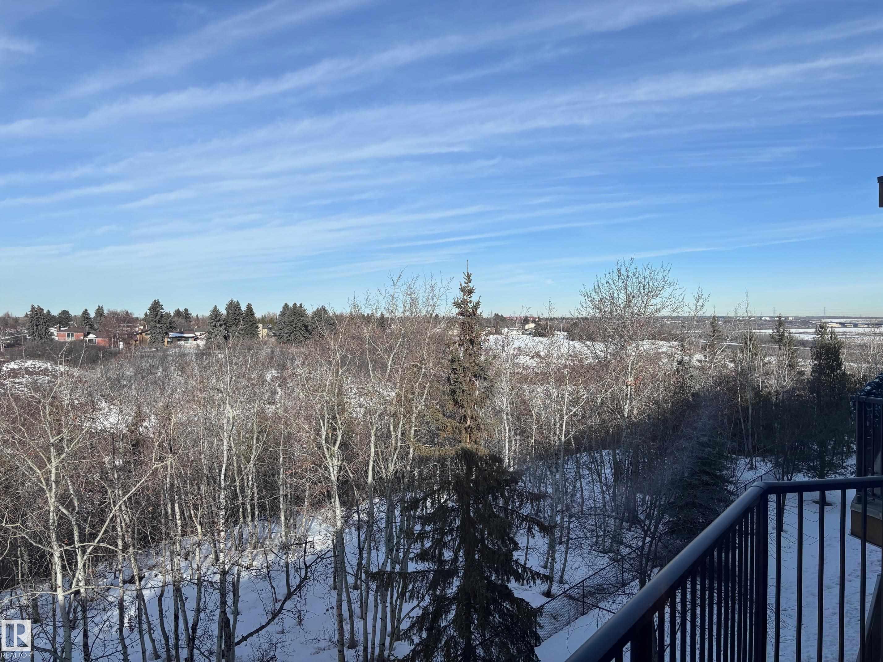 OVERLOOKING THE RAVINE! IMMACULATE TOP FLOOR UNIT. This modern 2 bedroom and 2 full bath, 18+ unit in the "Ridge At Hermitage" is immaculate! Features include: modern open concept kitchen with expansive breakfast bar, bright and warm ceiling height cabinets, spacious living room, large balcony, insuite laundry/storage, central elevators and underground parking stall with storage cage and an additional extra large storage unit (1.96x3.29), main bedroom has a walk-through closet and a 4pc ensuite. 2nd bedroom is next to a 4pc bath and has a custom murphy bed that converts to a desk and filing cabinet(5000. value). Bedrooms are on opposite ends of unit perfect for company/room mate. Parking is close to elevator. Extra features: A/C, visitor parking, car wash, Social and Exercise rooms. All utilities are included in the condo fees, except power PET FREINDLY with board approval close to off leash area. Extensive walking/biking trails, skiing and golf nearby. Quick access to all amenities and major routes!