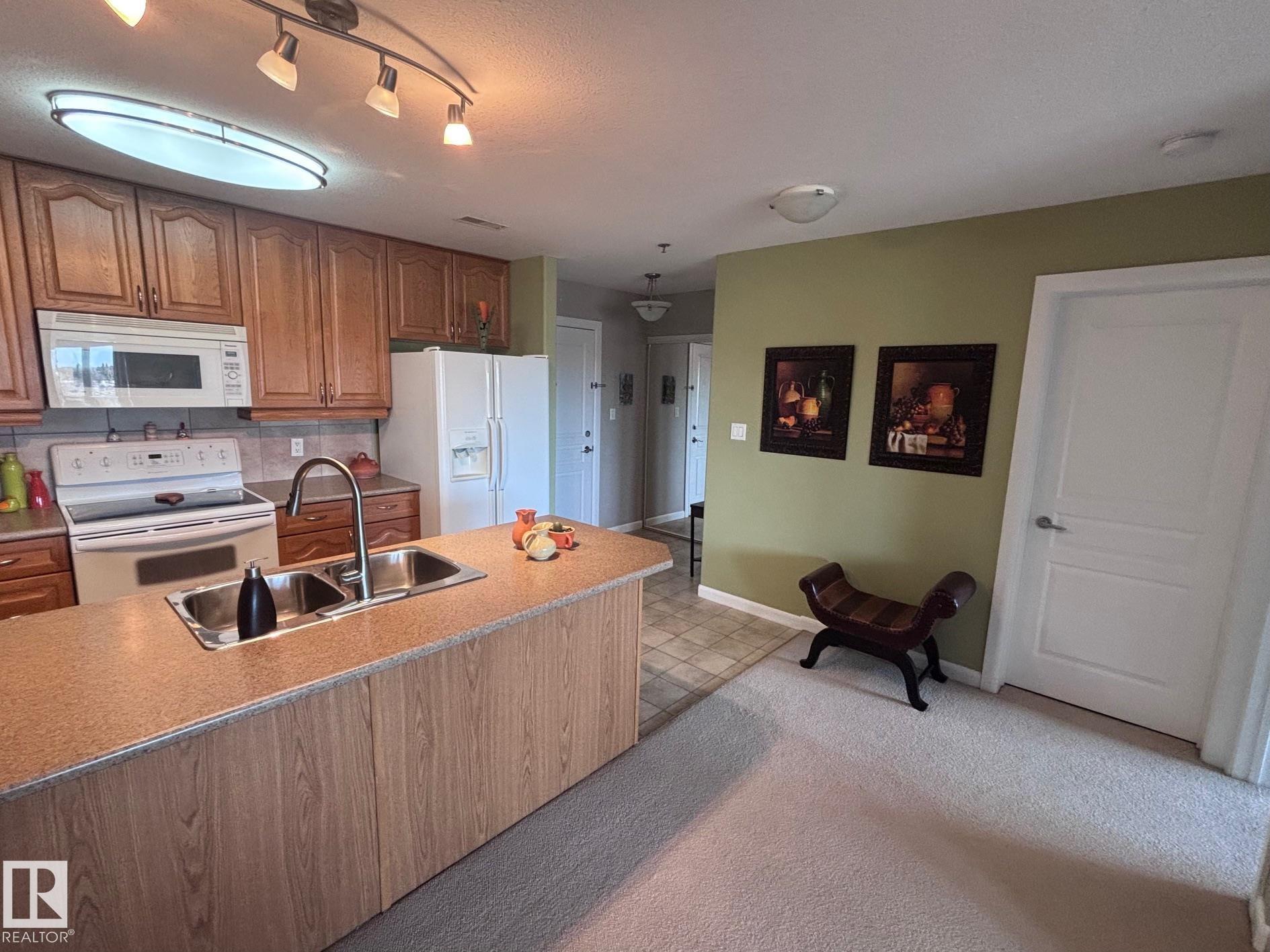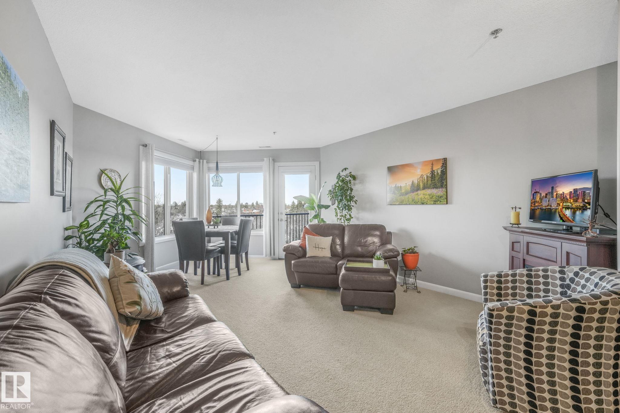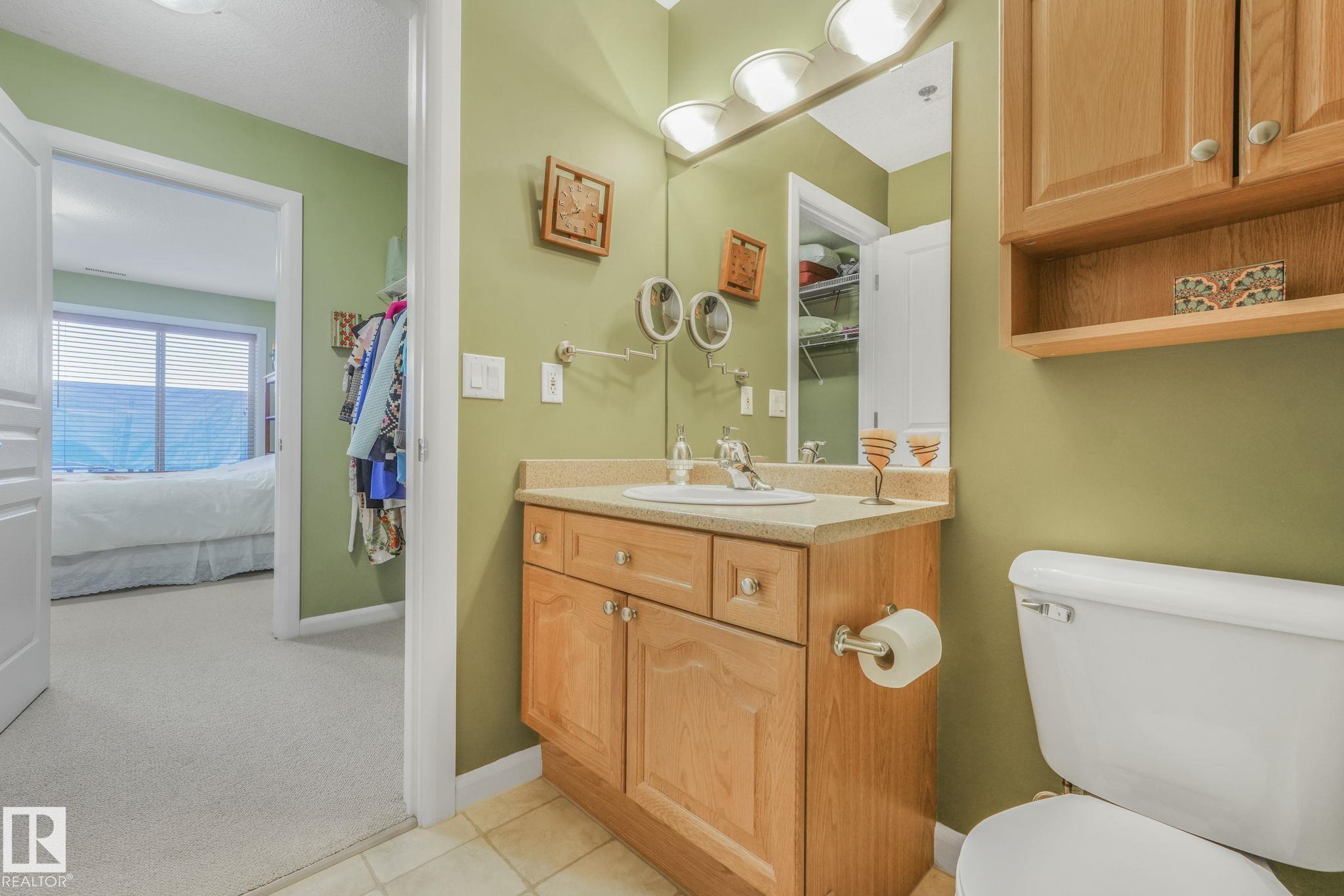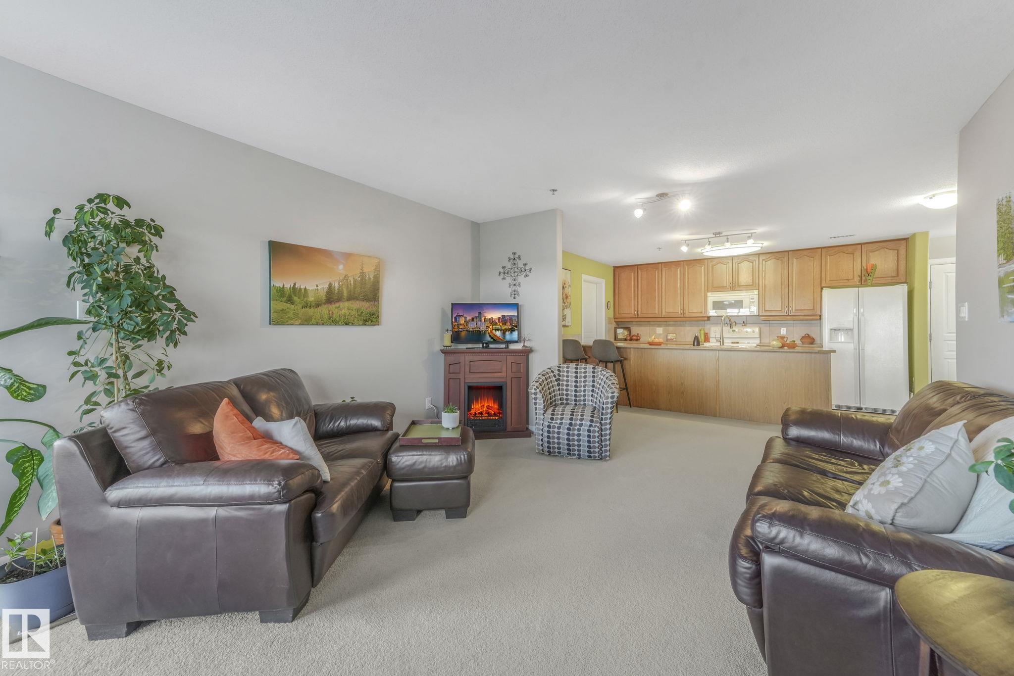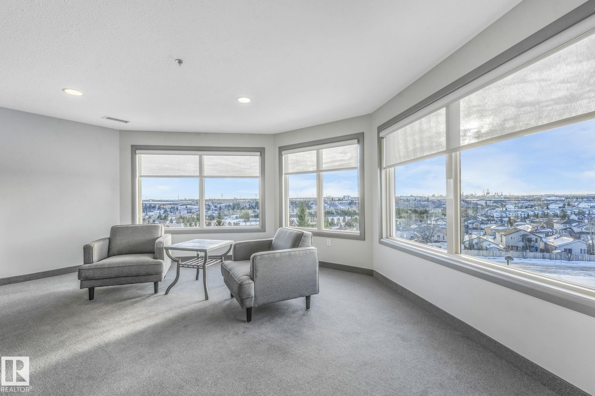 OVERLOOKING THE RAVINE! IMMACULATE TOP FLOOR UNIT. This modern 2 bedroom and 2 full bath, 18+ unit in the "Ridge At Hermitage" is immaculate! Features include: modern open concept kitchen with expansive breakfast bar, bright and warm ceiling height cabinets, spacious living room, large balcony, insuite laundry/storage, central elevators and underground parking stall with storage cage and an additional extra large storage unit (1.96x3.29), main bedroom has a walk-through closet and a 4pc ensuite. 2nd bedroom is next to a 4pc bath and has a custom murphy bed that converts to a desk and filing cabinet(5000. value). Bedrooms are on opposite ends of unit perfect for company/room mate. Parking is close to elevator. Extra features: A/C, visitor parking, car wash, Social and Exercise rooms. All utilities are included in the condo fees, except power PET FREINDLY with board approval close to off leash area. Extensive walking/biking trails, skiing and golf nearby. Quick access to all amenities and major routes!