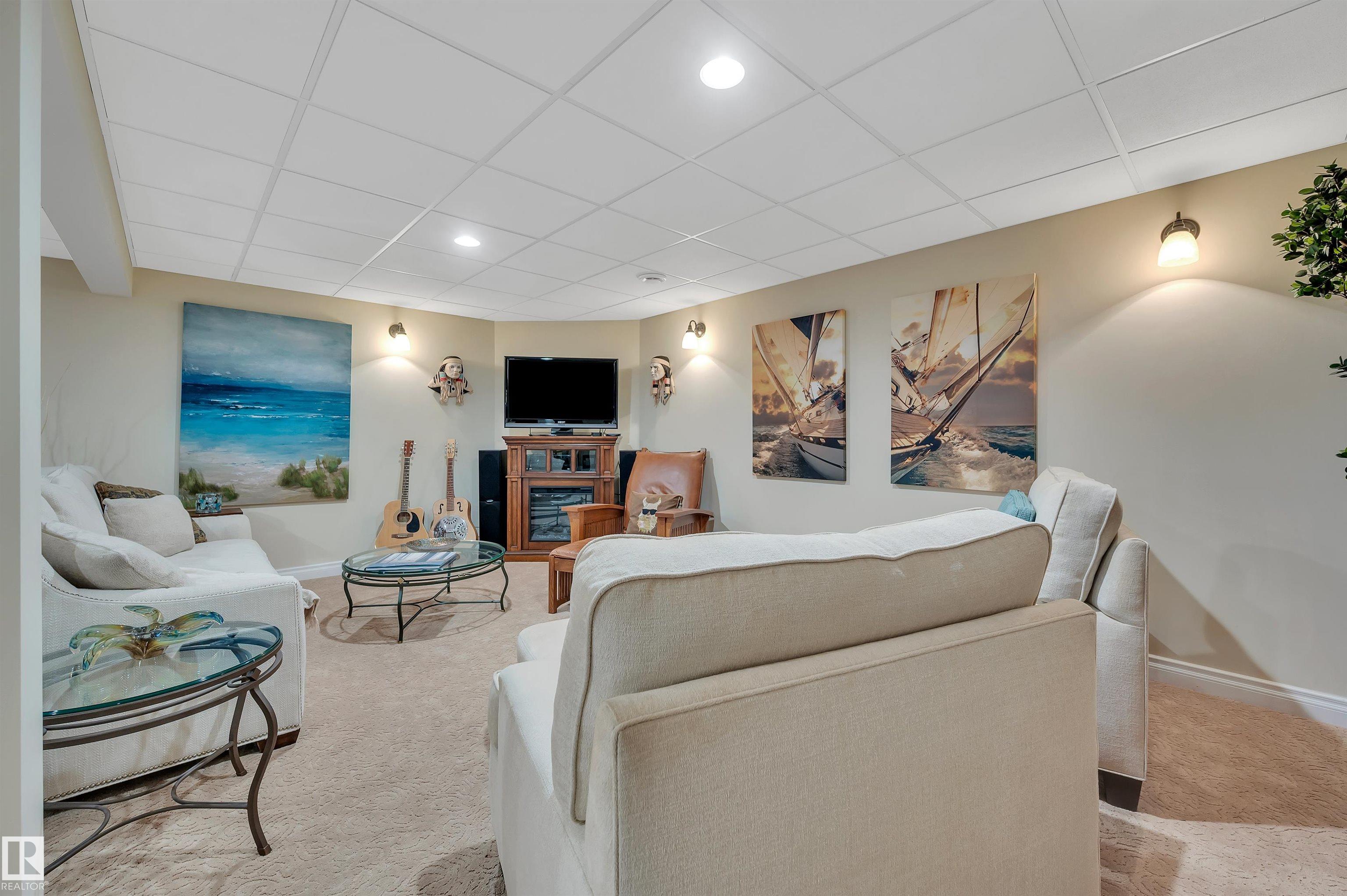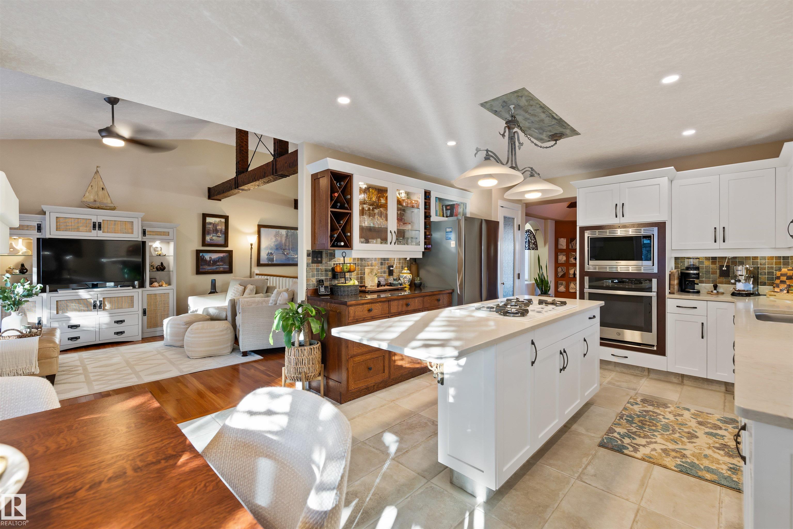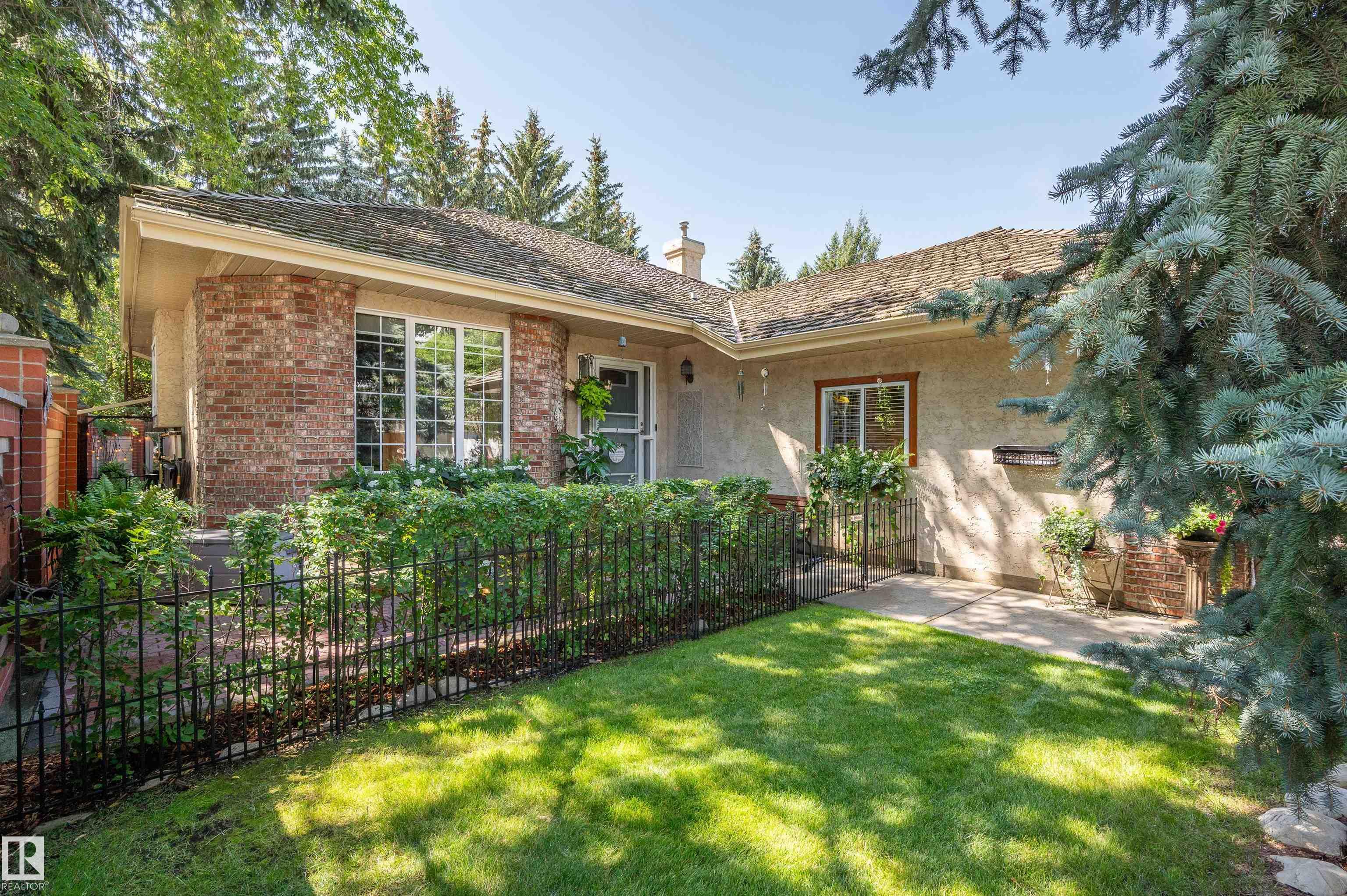 Nestled onto the desirable street of Berrymore Drive, discover this custom built ORIGINAL OWNER EXECUTIVE BUNGALOW. An impressive front courtyard welcomes guests w/ beautiful landscaping & morning sun exposure. The foyer has newer oversized tiles & opens into SOARING VAULTED CEILINGS. The dining room has a coffered ceiling w/ beams & Canadian cherry HARDWOOD FLOORING. The renovated kitchen has white cabinetry w/ some warm toned wood features, QUARTZ counters, gas cooktop w/ a built in fan, pantry, eating bar island, pot lighting, under cabinet lighting, wine bar & the fridge was replaced in 2025. There is a dining nook w/access out to the extremely PRIVATE BACK DECK. The great room has a 3 sided gas f/p. There are 2 main floor bedrooms, 4pce bath, a 4pce ensuite w/ a HEATED FLOOR, & laundry room. The FULLY FINISHED BASEMENT has a spacious 3rd bedroom, 4pce bath & a huge rec room. There is a double attached heated garage (19'1" x 22'4") & RV PARKING. This beautiful home is full of charachter & has it all!