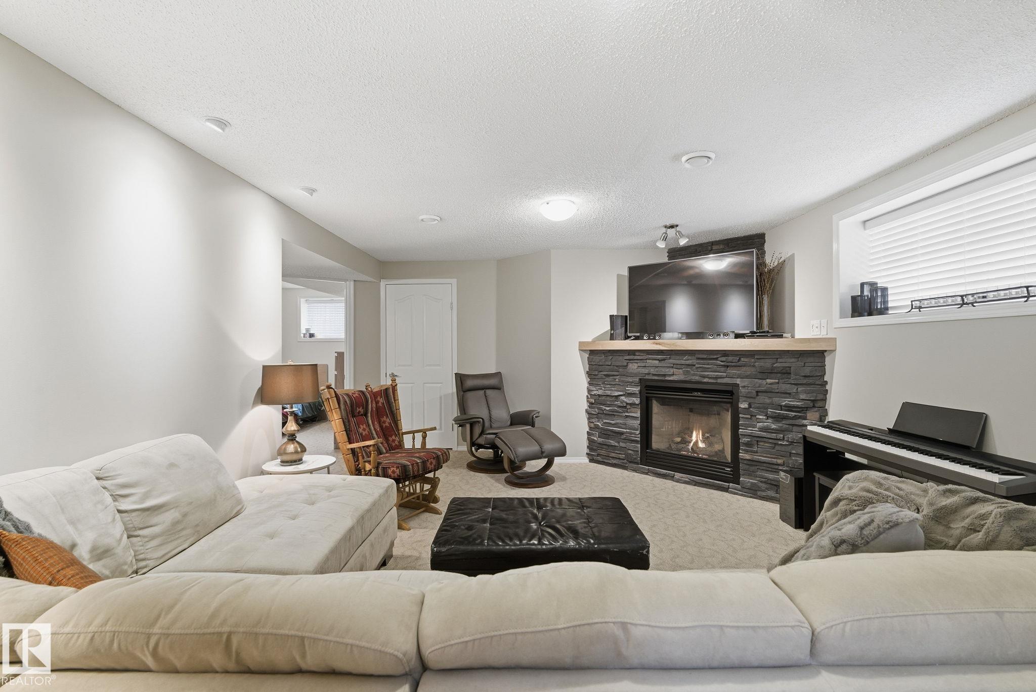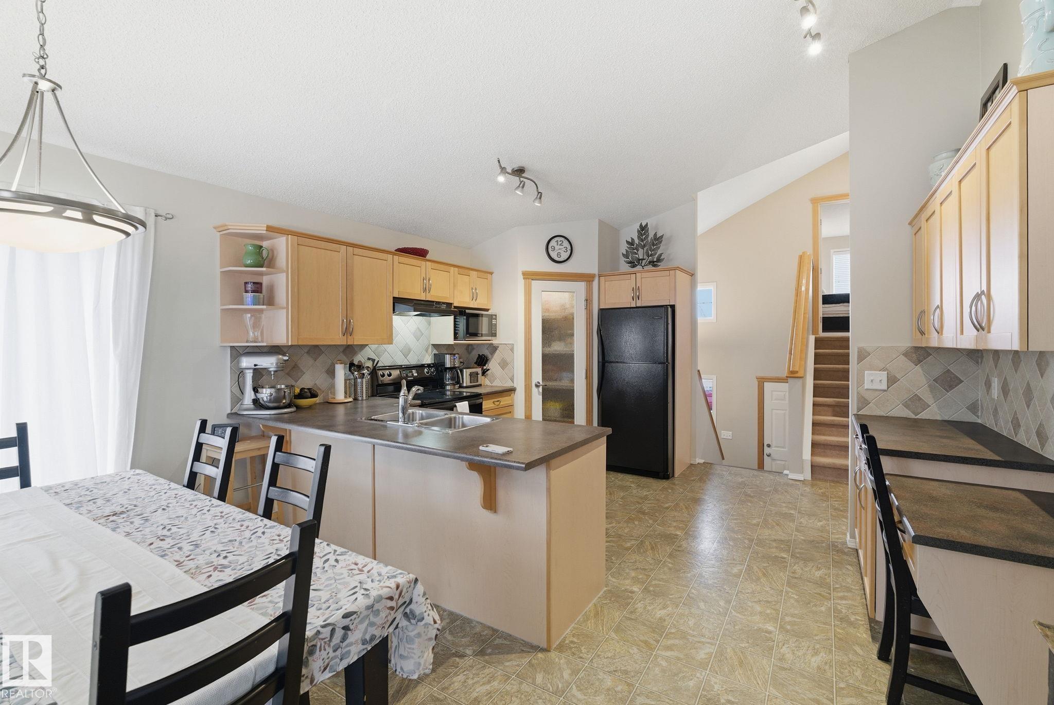 Move-in ready, fully finished 5-bedroom bi-level home. A spacious foyer welcomes you with an extra-wide staircase leading to the lower level. The main floor features an open-concept kitchen, dining, and living area, along with two bedrooms and a full bathroom. The private primary suite, located over the garage, offers a walk-in closet and a full ensuite. The lower level boasts a large open family room with a corner gas fireplace, two additional bedrooms, and another full bathroom & added storage under the stairs. The utility/mechanical room includes the laundry area. The heated double attached garage is equipped with 240V wiring. Outside, the beautifully landscaped yard is fully fenced and includes a two-tiered deck, rock patio with firepit area, garden and raised garden beds, plus added under-deck storage?perfect for outdoor living and entertaining.