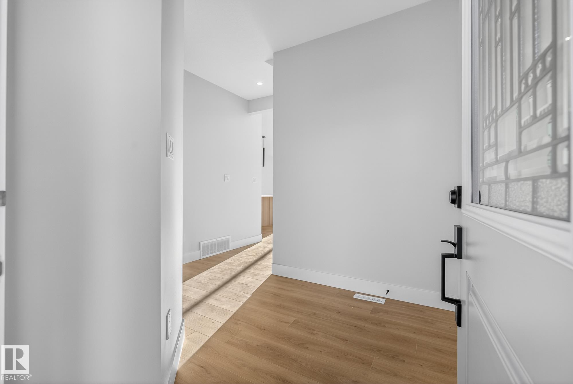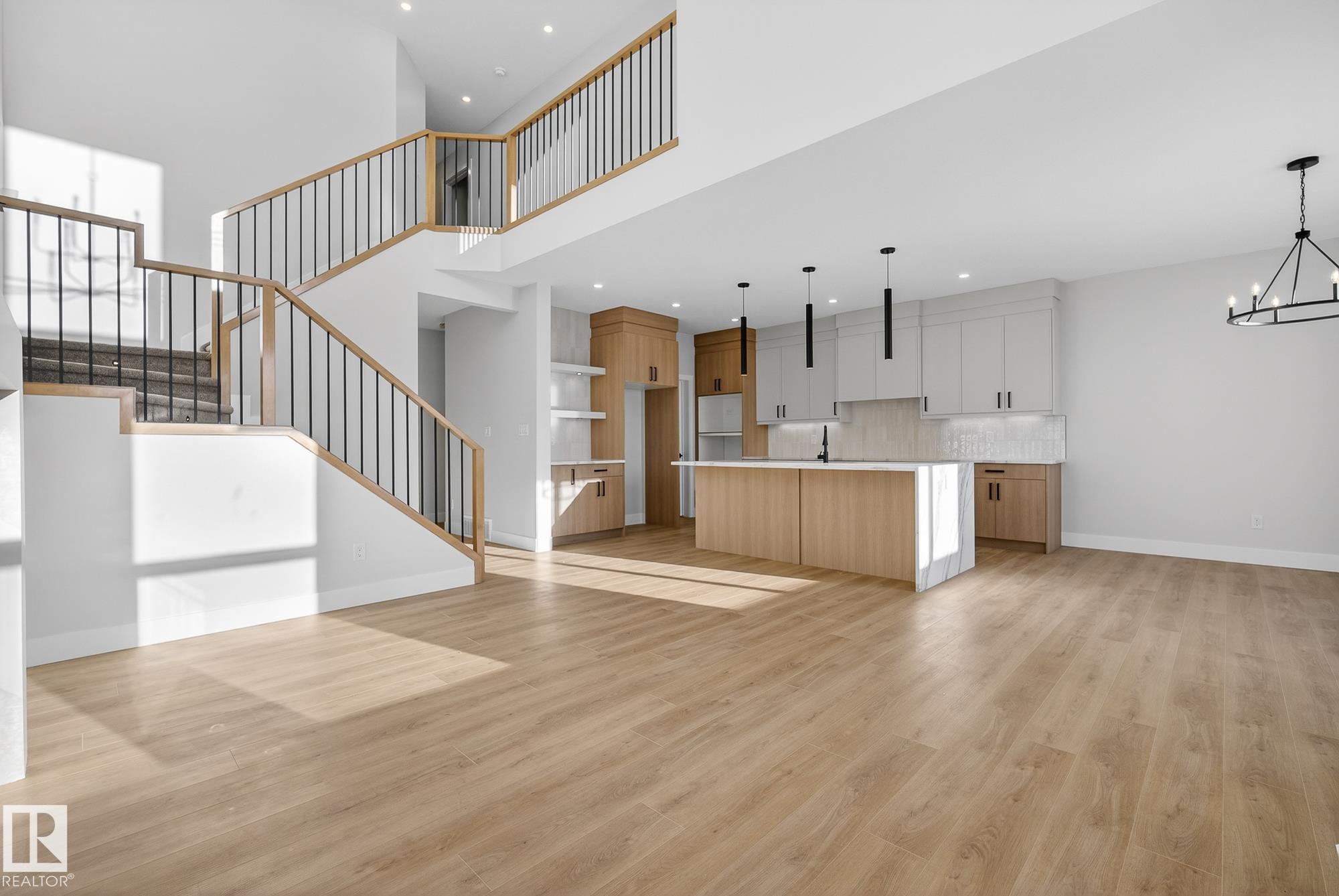 Experience this stunning New Era home with no rear neighbours, offering exceptional privacy and modern design. Thoughtfully crafted with an open-concept layout, the home features 9' ceilings on the main and basement levels and a dramatic open-to-above great room complete with an electric fireplace and custom feature wall. The main floor offers a versatile den or optional fourth bedroom, a convenient half bath, and a chef-inspired kitchen showcasing quartz countertops and full-height cabinetry. Upstairs, enjoy a spacious bonus room with a tray ceiling, three well-appointed bedrooms, and a laundry room that connects directly to the primary ensuite for added convenience. The primary retreat features dual sinks, a freestanding soaker tub, and a tiled shower, creating a true spa-like experience. Additional highlights include a separate side entrance, tankless gas hot water system, MDF shelving, and an unfinished basement ready for your personal touch. MOVE-IN READY.