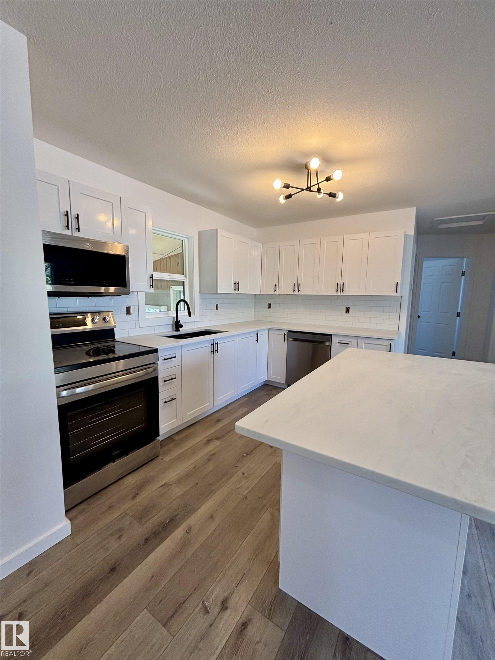 Renovated! This 3 bedroom, 1 bathroom raised bungalow has been renovated from top to bottom! The home has undergone a major transformation with new drywall, paint, flooring, interiors and exterior doors, baseboards and trim throughout the house! The kitchen features white shaker-style soft-close cabinetry with matte black hardware, and a quartz countertop to complete it! downstairs is complete with a bedroom, rec room, and large laundry/mechanical room. Lots of storage with the single attached and single detached garages! Off the back of the house is a sun room and screened in porch that leads to your large fenced back yard!