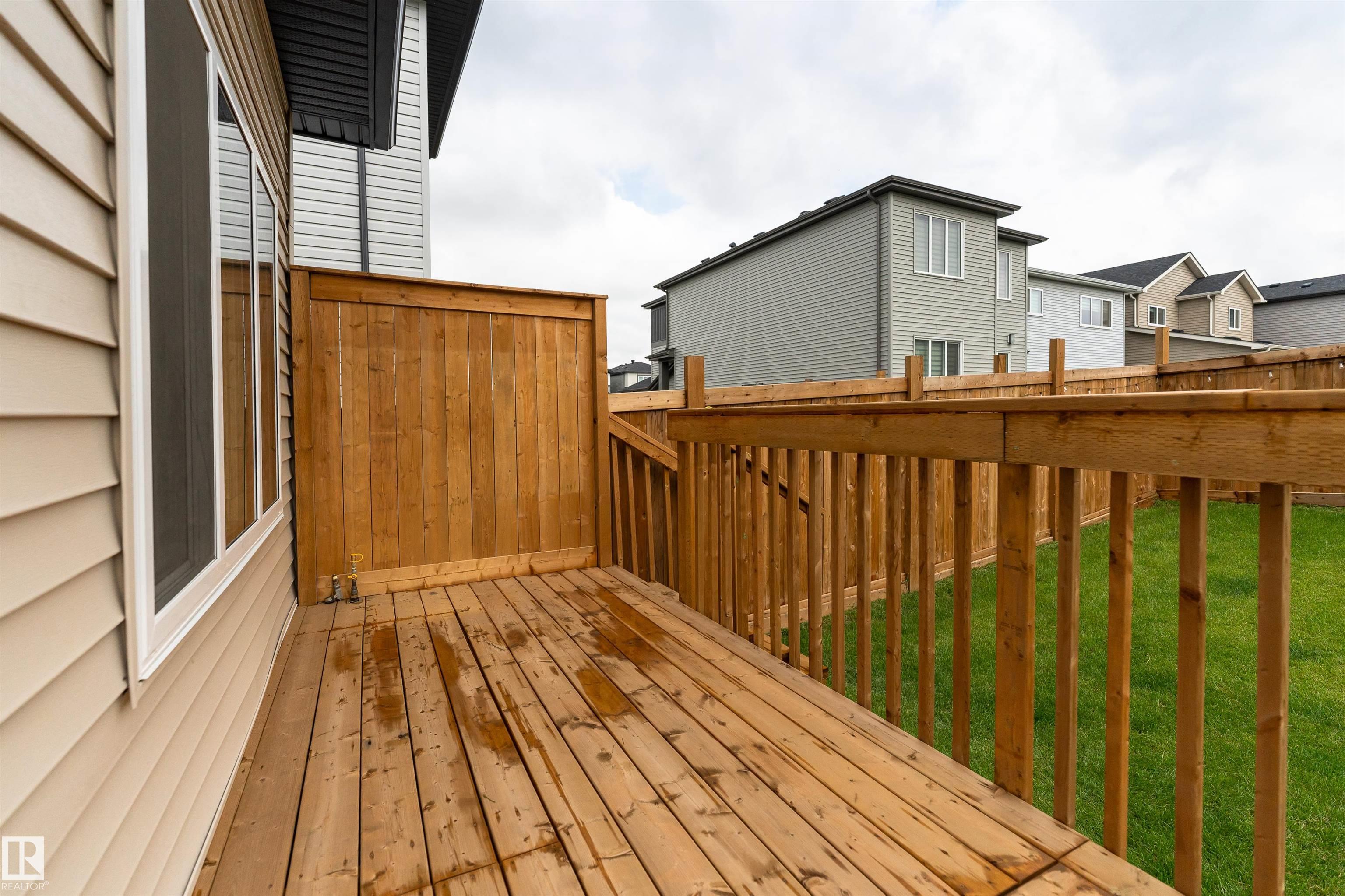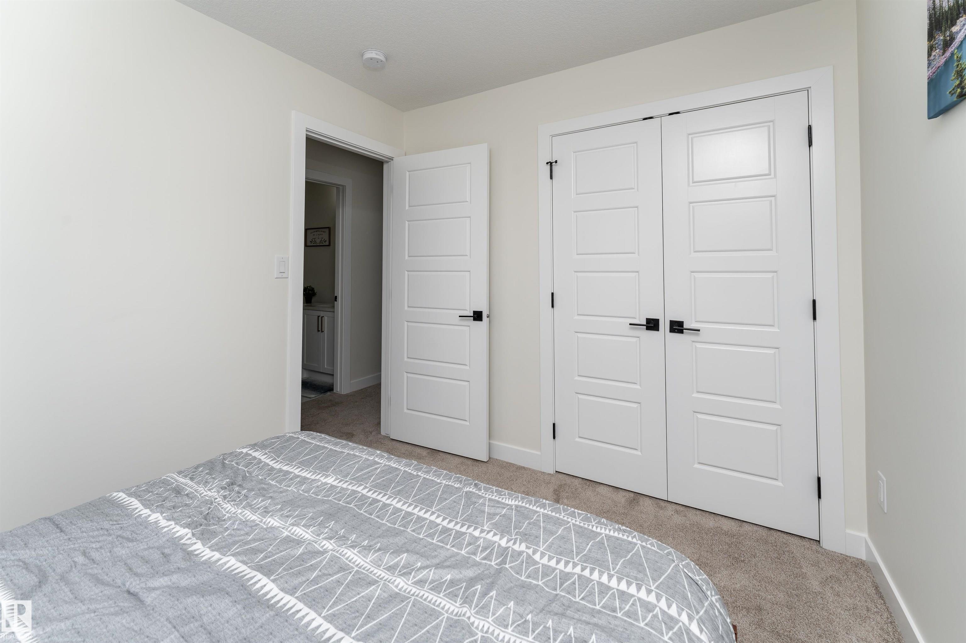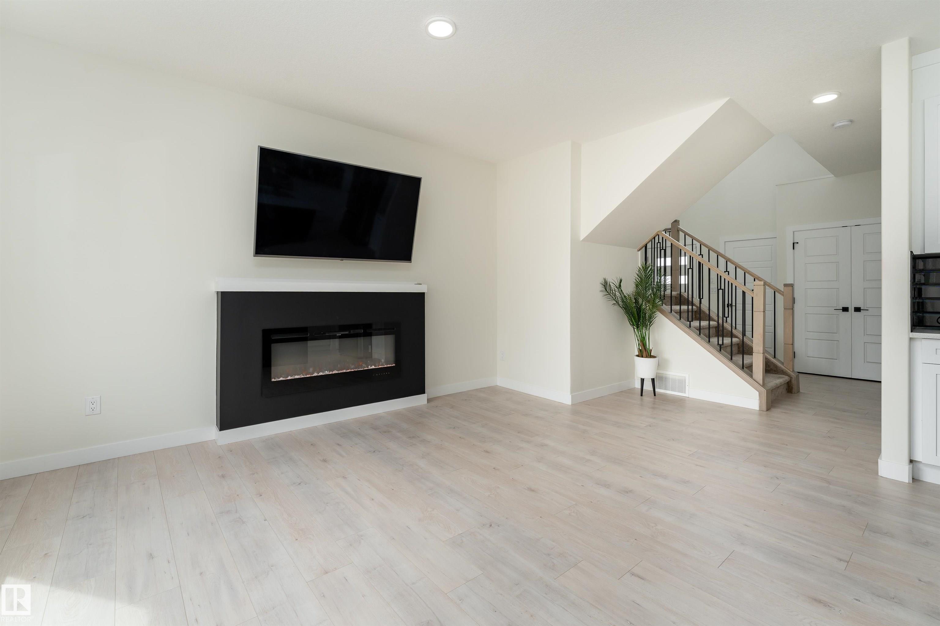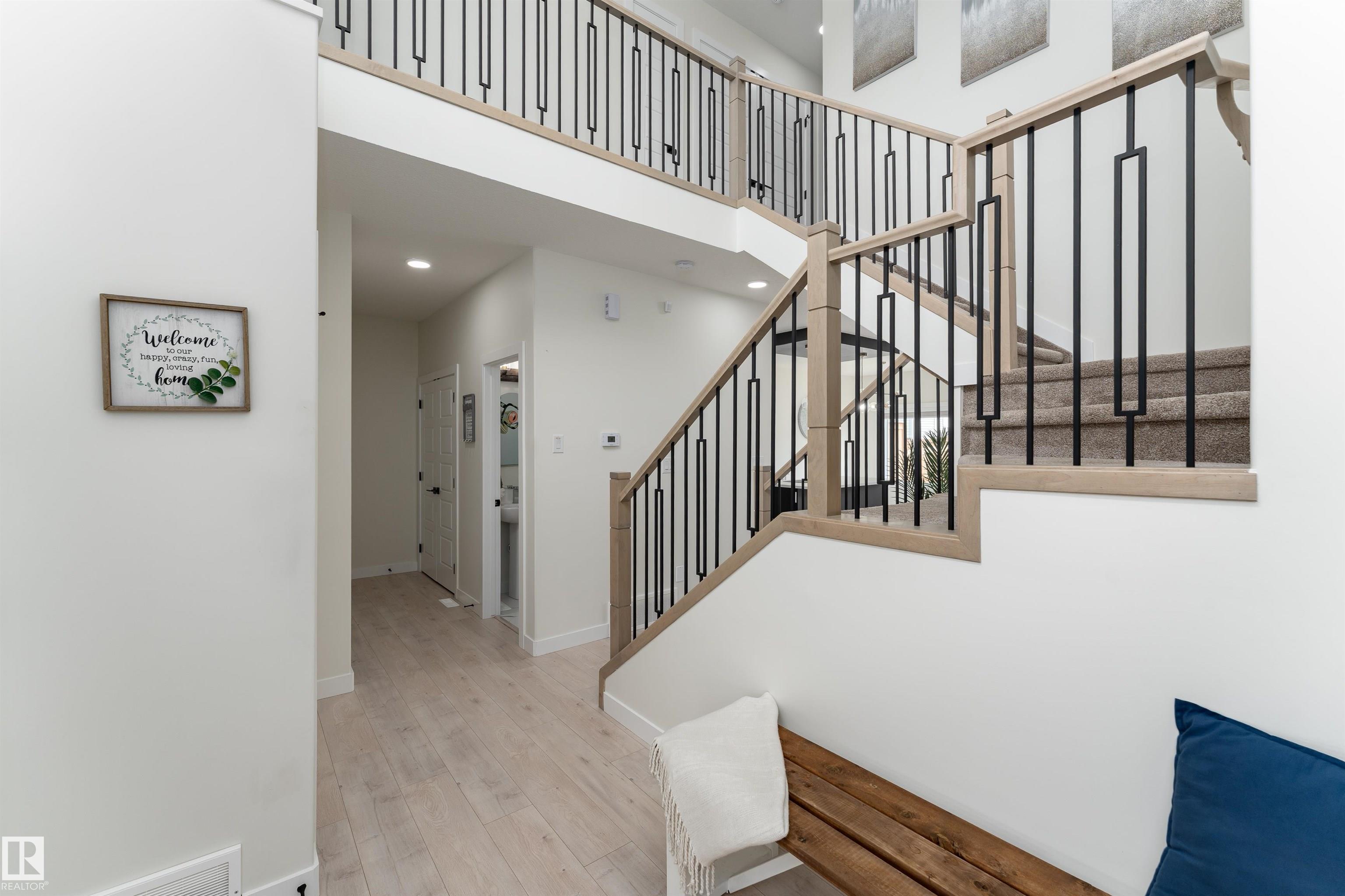 From the moment you walk in, this modern two storey home offers the space, layout, and features that truly stand out in Leduc. Offering 3 bedrooms and 3.5 bathrooms across 1,460 sq ft, the open main floor features 9 ft ceilings, large windows, and a modern kitchen with central island that flows into a cozy living area with an electric fireplace, ideal for everyday living and entertaining. Upstairs, the primary bedroom includes a walk in closet and 4 piece ensuite, along with 2 additional bedrooms, a full bath, and convenient upper level laundry. The well maintained yard is perfect for outdoor gatherings, complete with a gas line and space for a BBQ or fire table. An unfinished basement with a separate side entrance and full bathroom offers excellent potential for a future suite. Central A C, custom blinds, and a double attached garage complete the home. Conveniently located near major routes, schools, Century Mile Racetrack, Leduc Common shopping, and Pigeon Lake Park.
