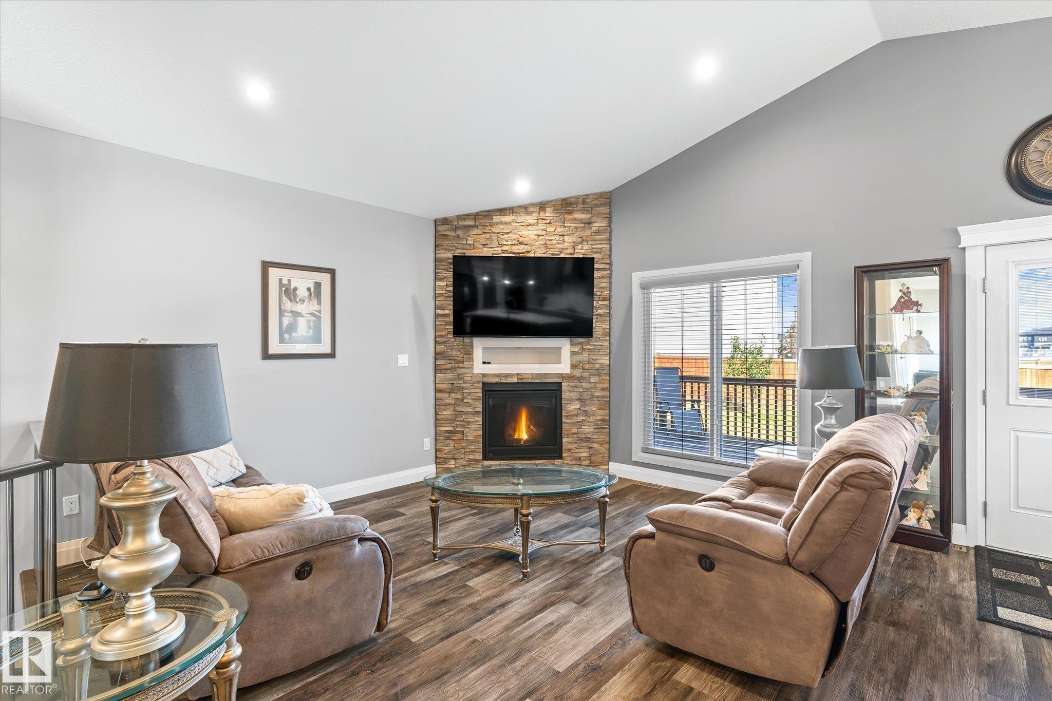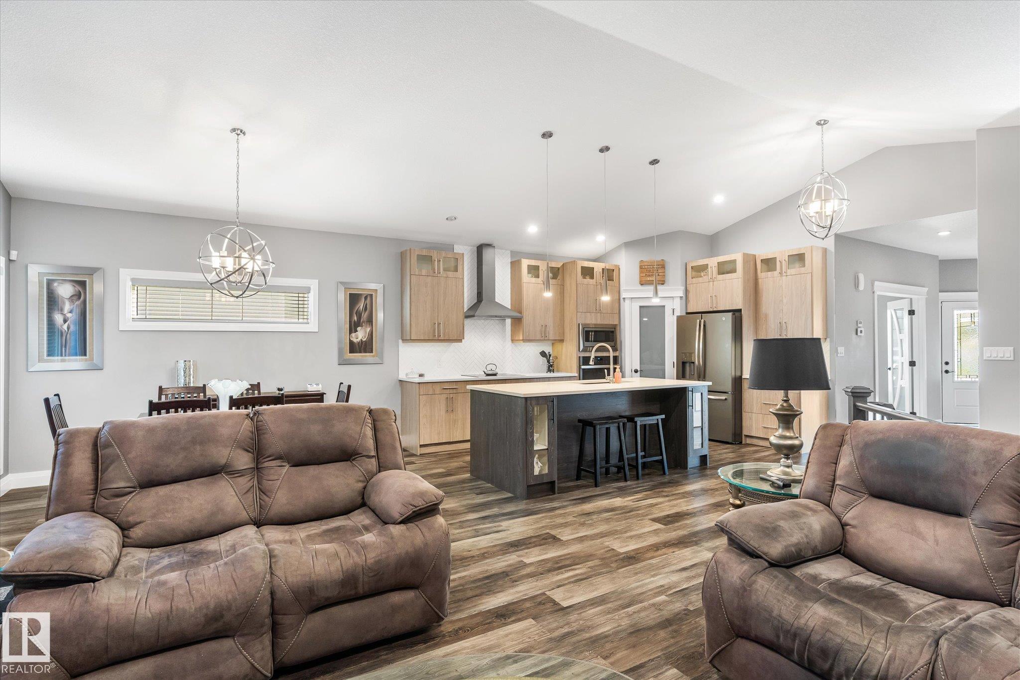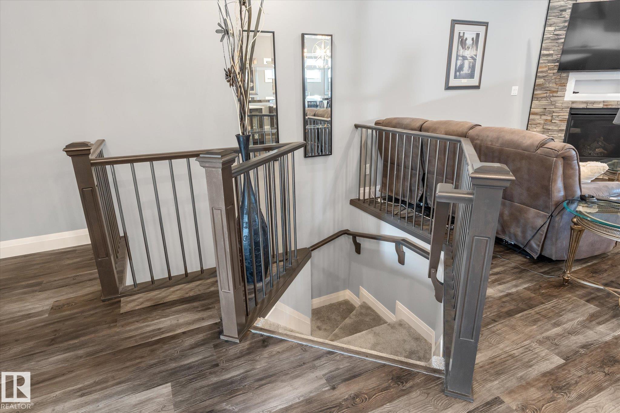 Exquisite custom-built bungalow with all the bells and whistles! Rare find in Fort Saskatchewan on a quiet cul-de-sac, partially backing a park for privacy. At 1,577 sq ft with fully finished basement, it offers high-end finishes and plenty of space for downsizers seeking single-floor living while keeping a functional basement. Stunning curb appeal includes a triple car garage and front veranda. Main floor features a bright den, warm fireplace in the living room, dining area, chef?s kitchen with stainless appliances, granite counters, island, and pantry. Mudroom with laundry, 4-pc main bath, and spacious primary bedroom with TWO walk-in closets and 5-pc ensuite with heated floors. Basement boasts high ceilings, large windows, 3 bedrooms, and massive rec space. Enjoy the back deck, landscaping, central A/C, and pristine condition ? a true 10/10!