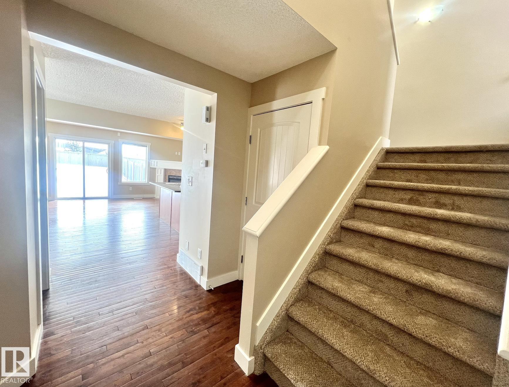 Discover this 3-bedroom home tucked away in a quiet Tamarack area, perfectly situated on a rare pie-shaped lot that offers unparalleled privacy with no rear neighbours. From the moment you arrive, you?ll appreciate the large fully landscaped yard. The expansive backyard is a dream ideal for gardening, play, or hosting gatherings. Inside, the main floor welcomes you with a bright, open-concept layout featuring a stylish kitchen, spacious dining area, and a cozy living room with a gas fireplace.. perfect for relaxing or entertaining. A convenient half bath completes the main level. Upstairs, you'll find a large bonus room ideal for family movie nights, a primary suite with a 4-piece ensuite, plus two additional well-sized bedrooms and a 4-piece main bath. Generous windows throughout flood the home with natural light. Whether you're a growing family or savvy investor, this rare offering combines location, lot size, and layout for exceptional value. New Carpet Installed Feb 7 2026!!!