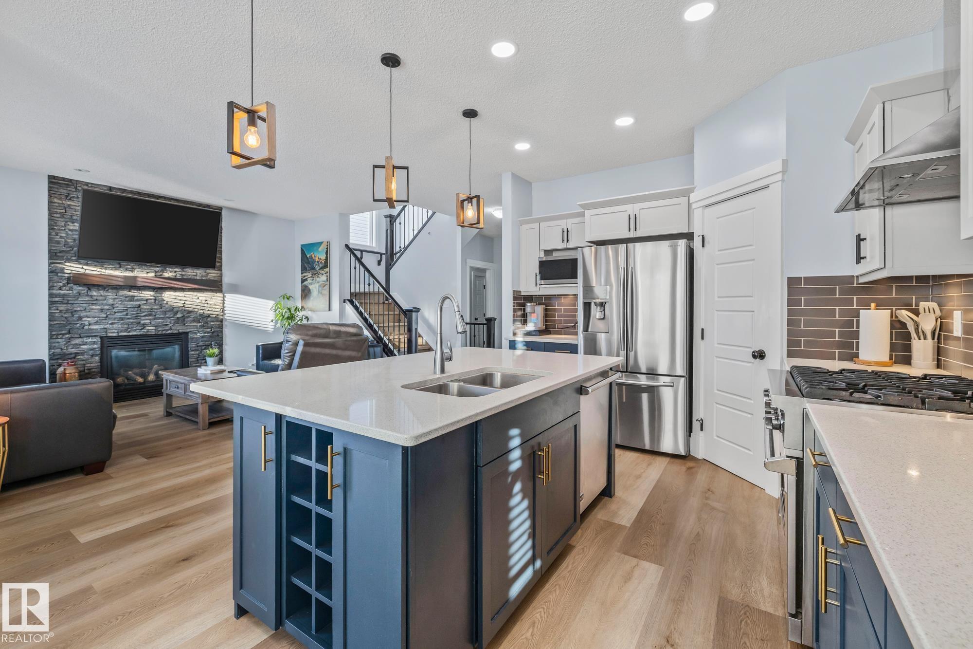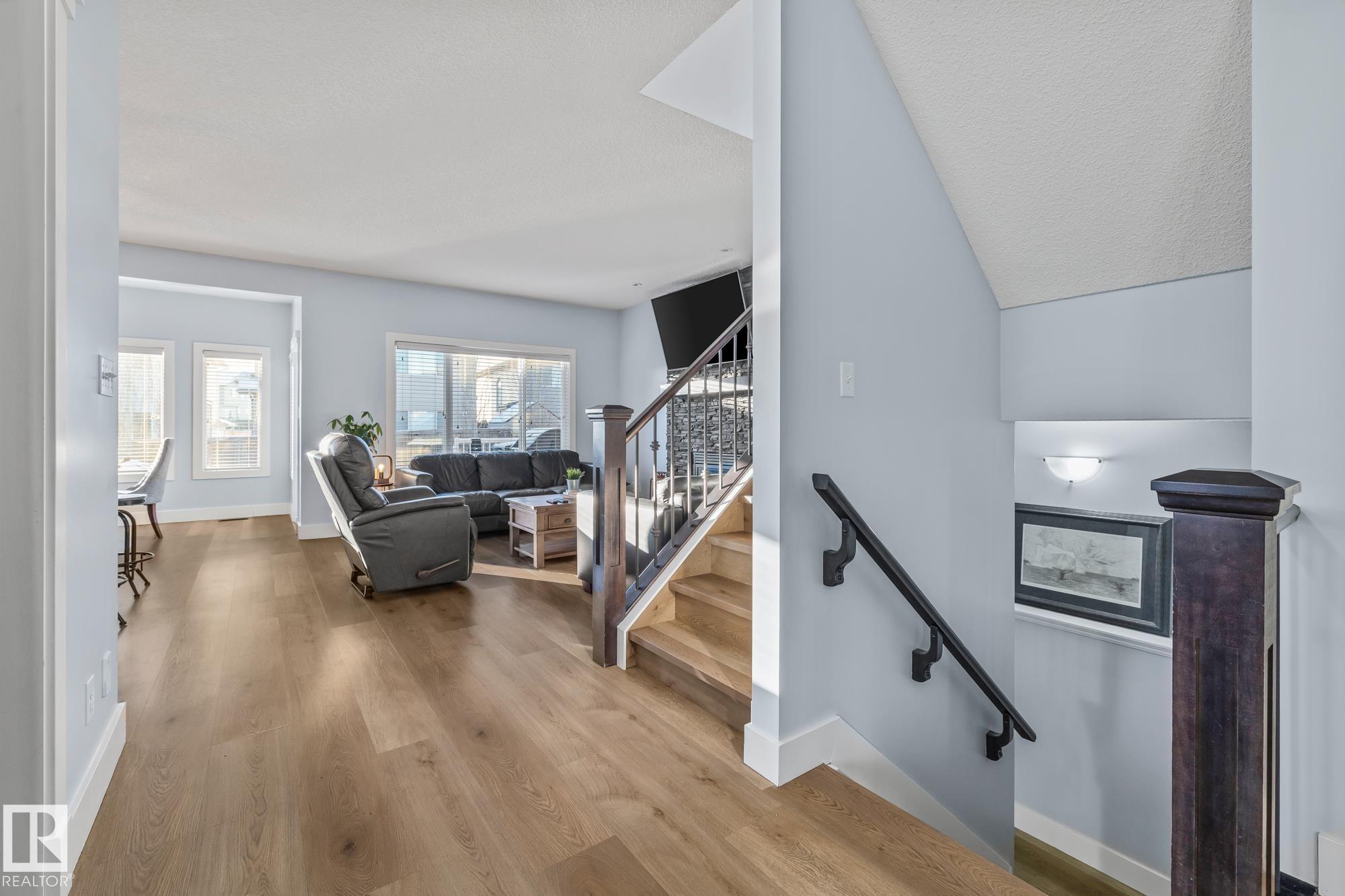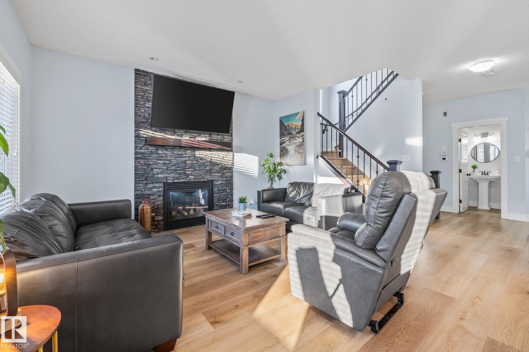 Welcome home to this beautifully upgraded two storey in West Park, offering 2,020 sq. ft. of living space on a fenced, south facing oversized corner lot. This 4 bedroom home features vinyl plank flooring throughout, central A/C, a heated and insulated double attached garage, and large windows that fill the home with natural light. The bright main living area includes a stunning kitchen with two tone cabinetry, granite countertops, stainless steel appliances, gas stove, oversized island, and a tiled backsplash with modern hood. The living room has a stone faced gas fireplace, and the dining area opens to the fenced deck and sunny backyard with stone patio and fire pit. A spacious main floor office and mudroom with laundry add convenience. Upstairs, three bedrooms include a primary retreat with electric fireplace, shiplap wall, and spa inspired ensuite. The fully developed basement offers a large rec room, fourth bedroom, and bathroom, perfect for family living and entertaining.