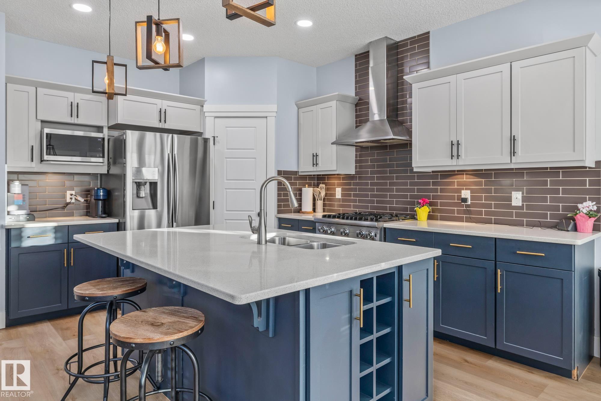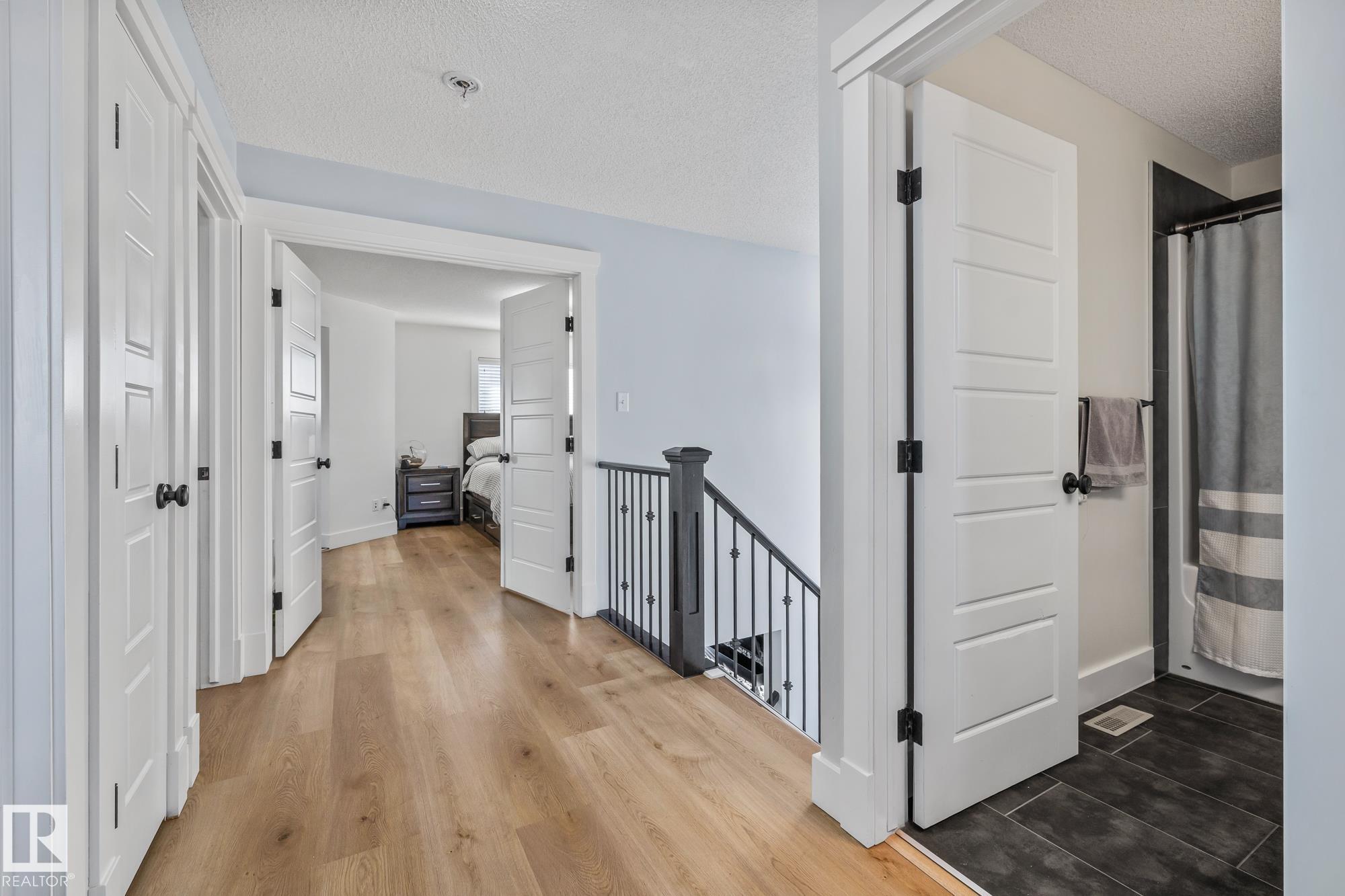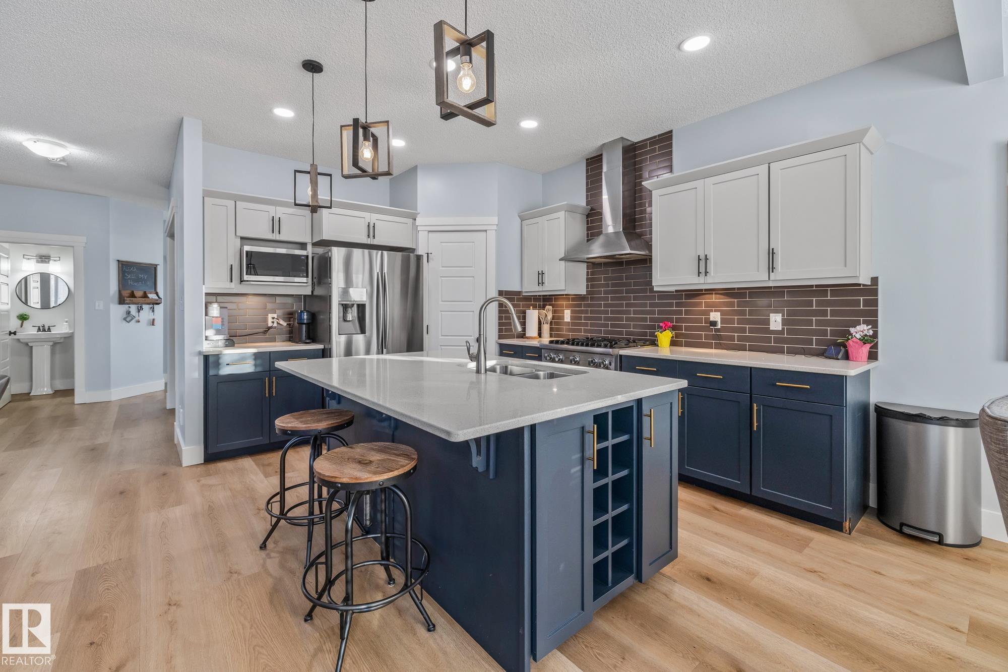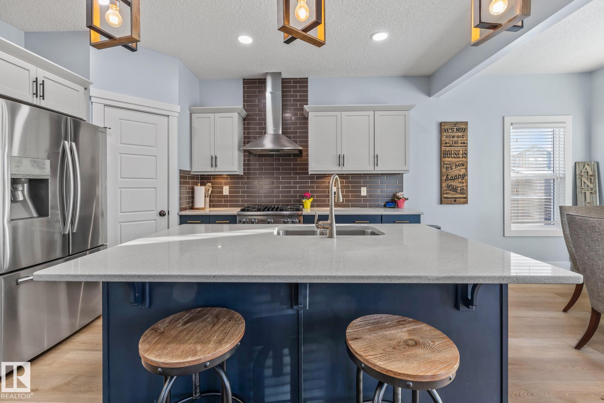 Welcome home to this beautifully upgraded two storey in West Park, offering 2,020 sq. ft. of living space on a fenced, south facing oversized corner lot. This 4 bedroom home features vinyl plank flooring throughout, central A/C, a heated and insulated double attached garage, and large windows that fill the home with natural light. The bright main living area includes a stunning kitchen with two tone cabinetry, granite countertops, stainless steel appliances, gas stove, oversized island, and a tiled backsplash with modern hood. The living room has a stone faced gas fireplace, and the dining area opens to the fenced deck and sunny backyard with stone patio and fire pit. A spacious main floor office and mudroom with laundry add convenience. Upstairs, three bedrooms include a primary retreat with electric fireplace, shiplap wall, and spa inspired ensuite. The fully developed basement offers a large rec room, fourth bedroom, and bathroom, perfect for family living and entertaining.