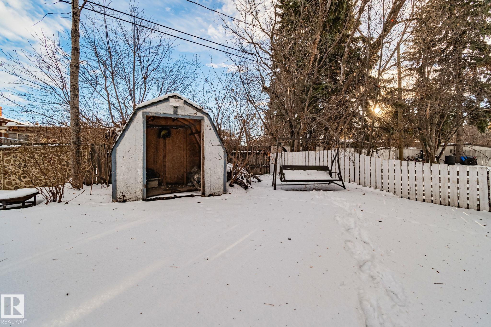 Well-located bungalow with a huge yard and endless potential in Sherwood Heights! This 1,300 sq.ft bungalow sits on an impressive 60? x 120? lot, just one block from Sherwood Heights Park. You?ll love the unbeatable location?close to multiple schools, rinks, ball diamonds, pickleball courts, and childcare facilities. The exterior features low-maintenance vinyl siding and large windows that fill the home with natural light. Step outside to the southeast-facing backyard, perfect for relaxing or entertaining on the back deck. Inside, the main level offers three bedrooms and a full bathroom, along with two inviting living areas? providing extra space for family or guests. The bright white kitchen overlooks the expansive yard, and the dining area is perfect for guests and open to the lving room. A shared basement landing leads to the lower level just past the dining area.The basement includes a large utility/laundry area, an open recreation space, and a former bedroom area ready for your finishing touches.